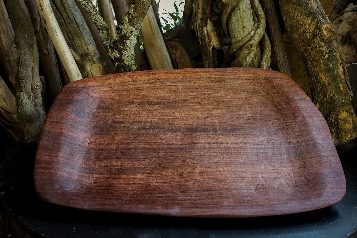 Batea rústica de Algarrobo calada a mano desde una sola pieza de madera.