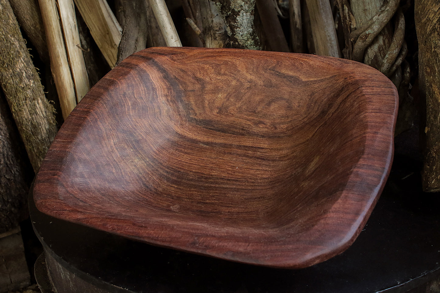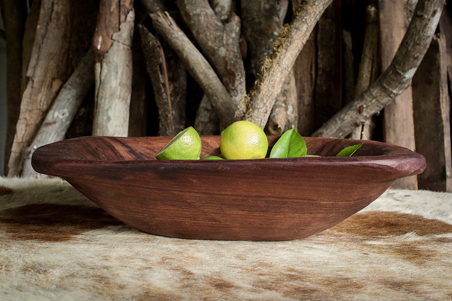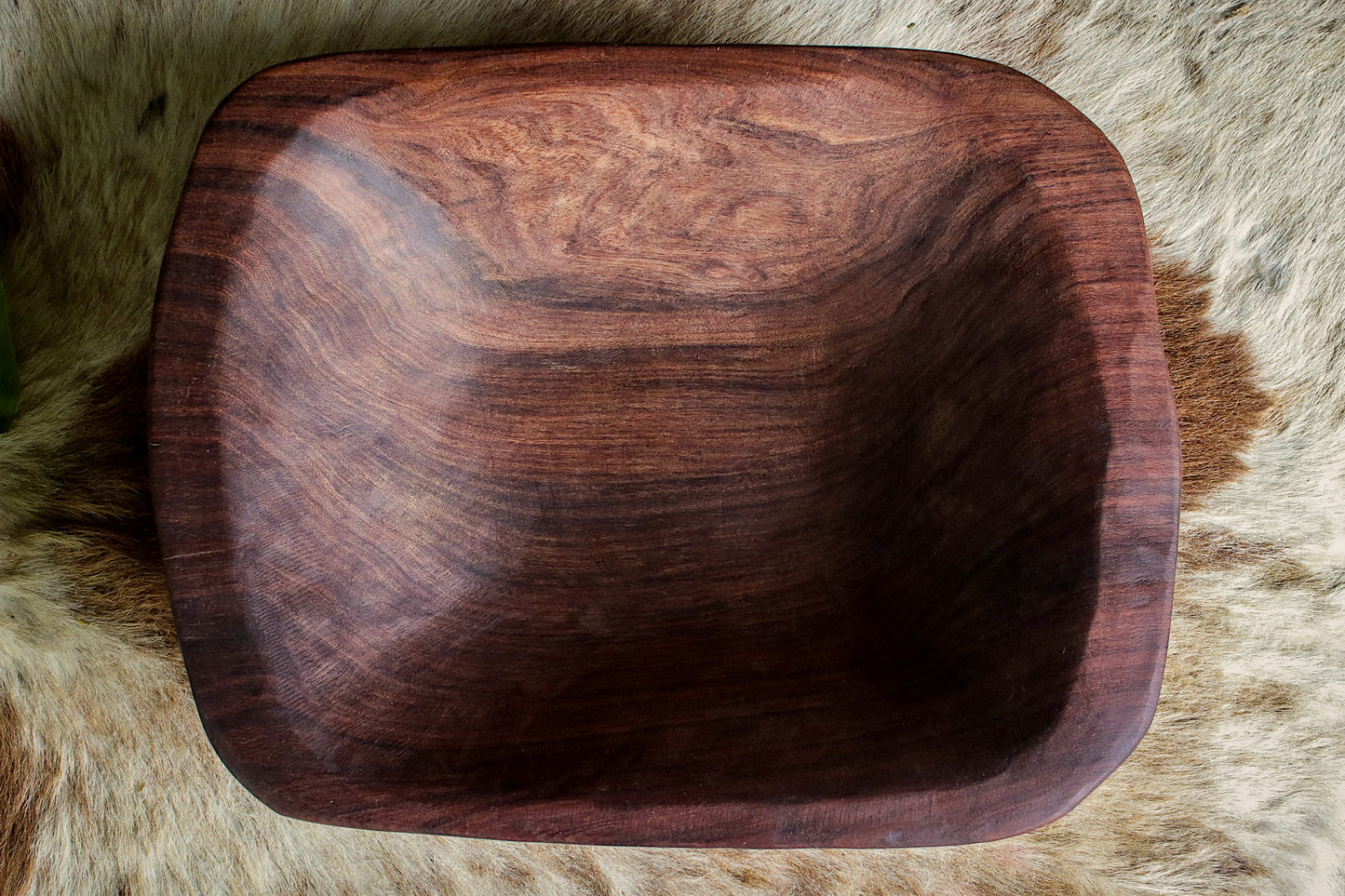 Batea rústica de Algarrobo calada a mano desde una sola pieza de madera.