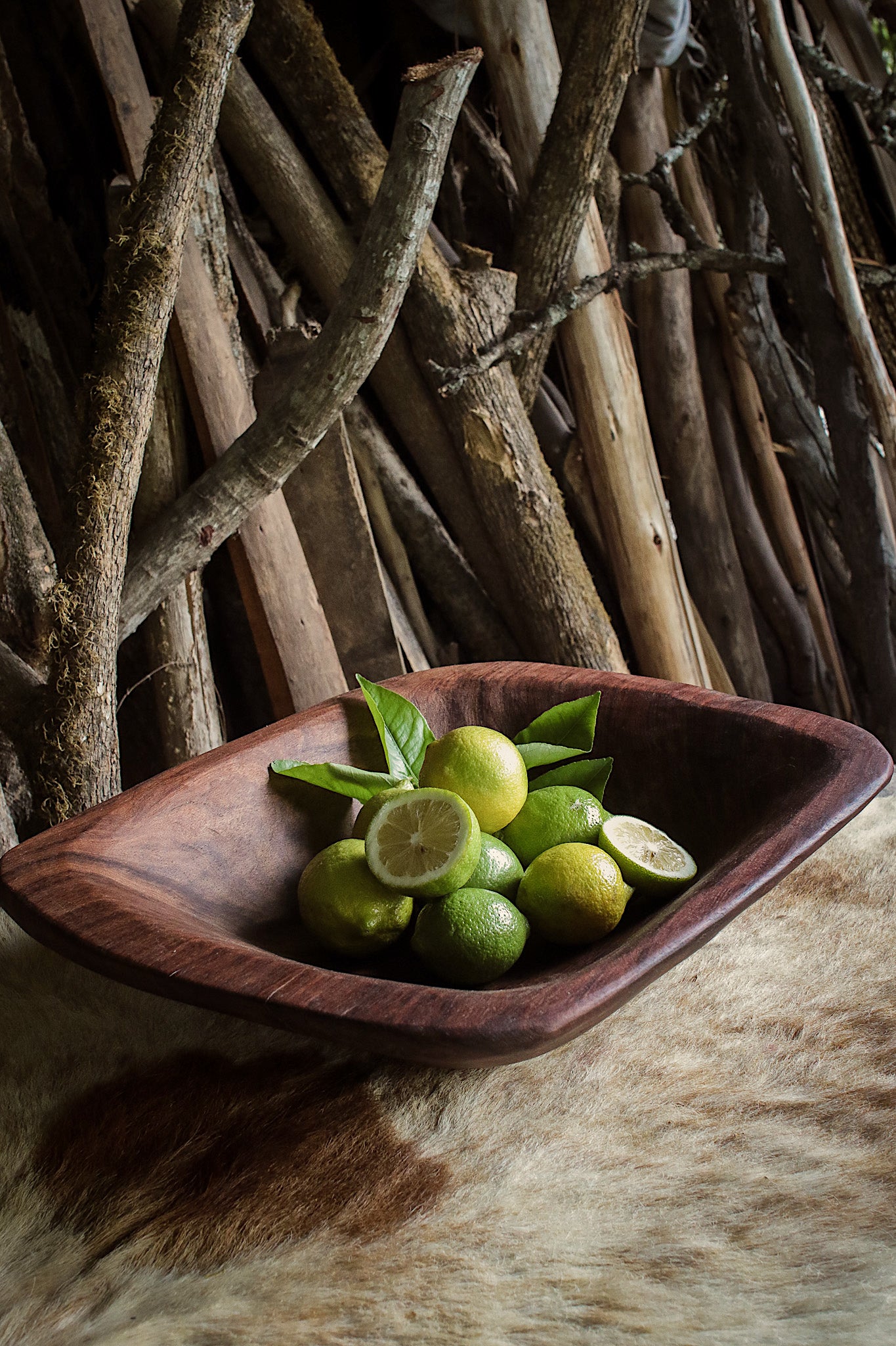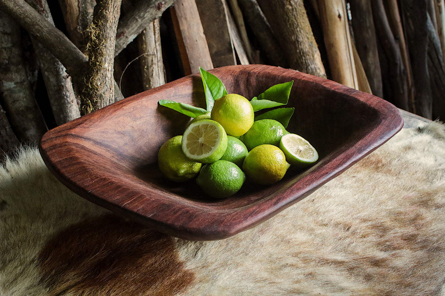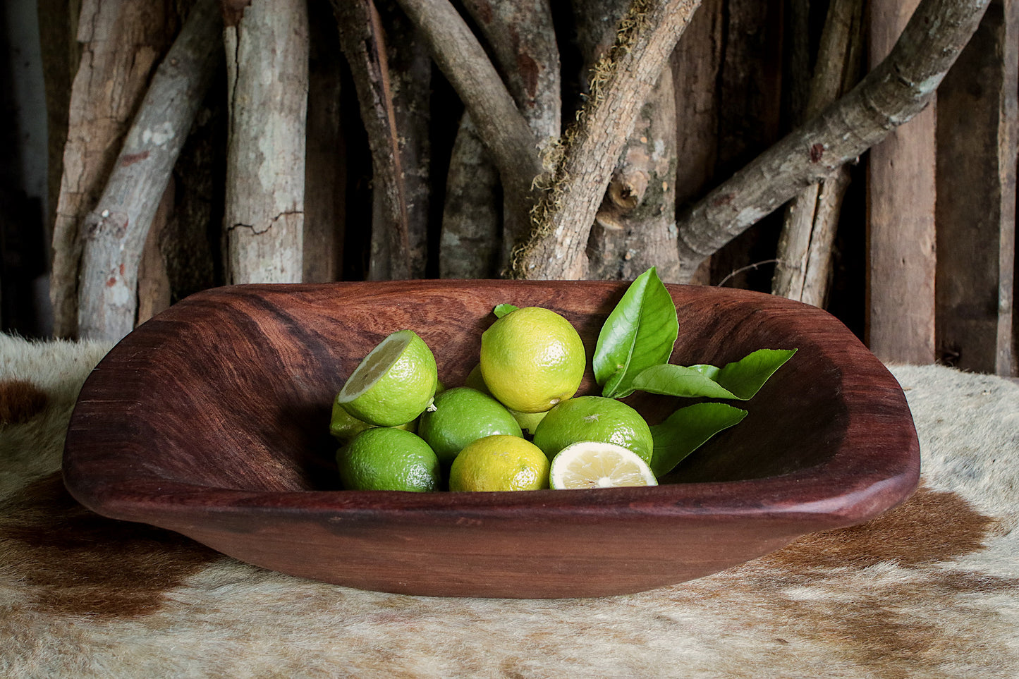 Batea rústica de Algarrobo calada a mano desde una sola pieza de madera.