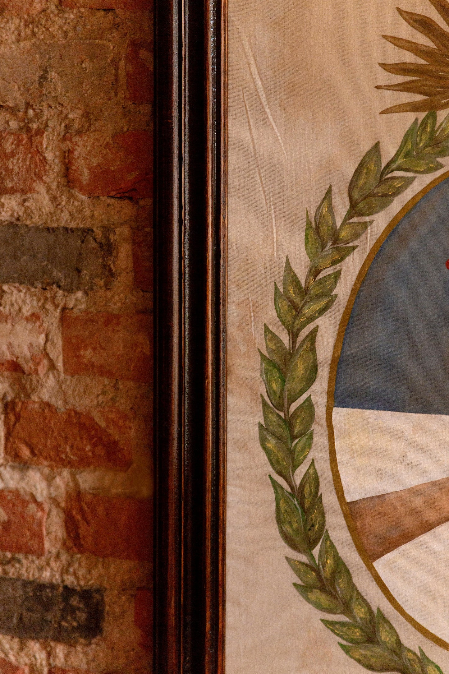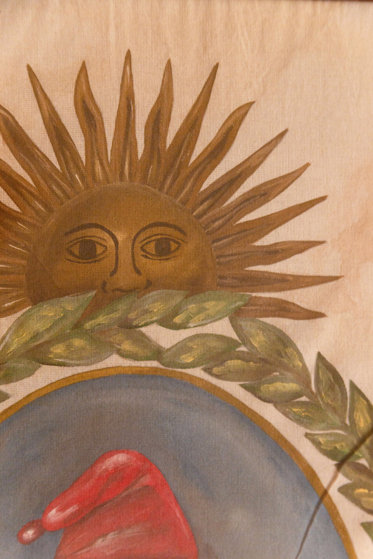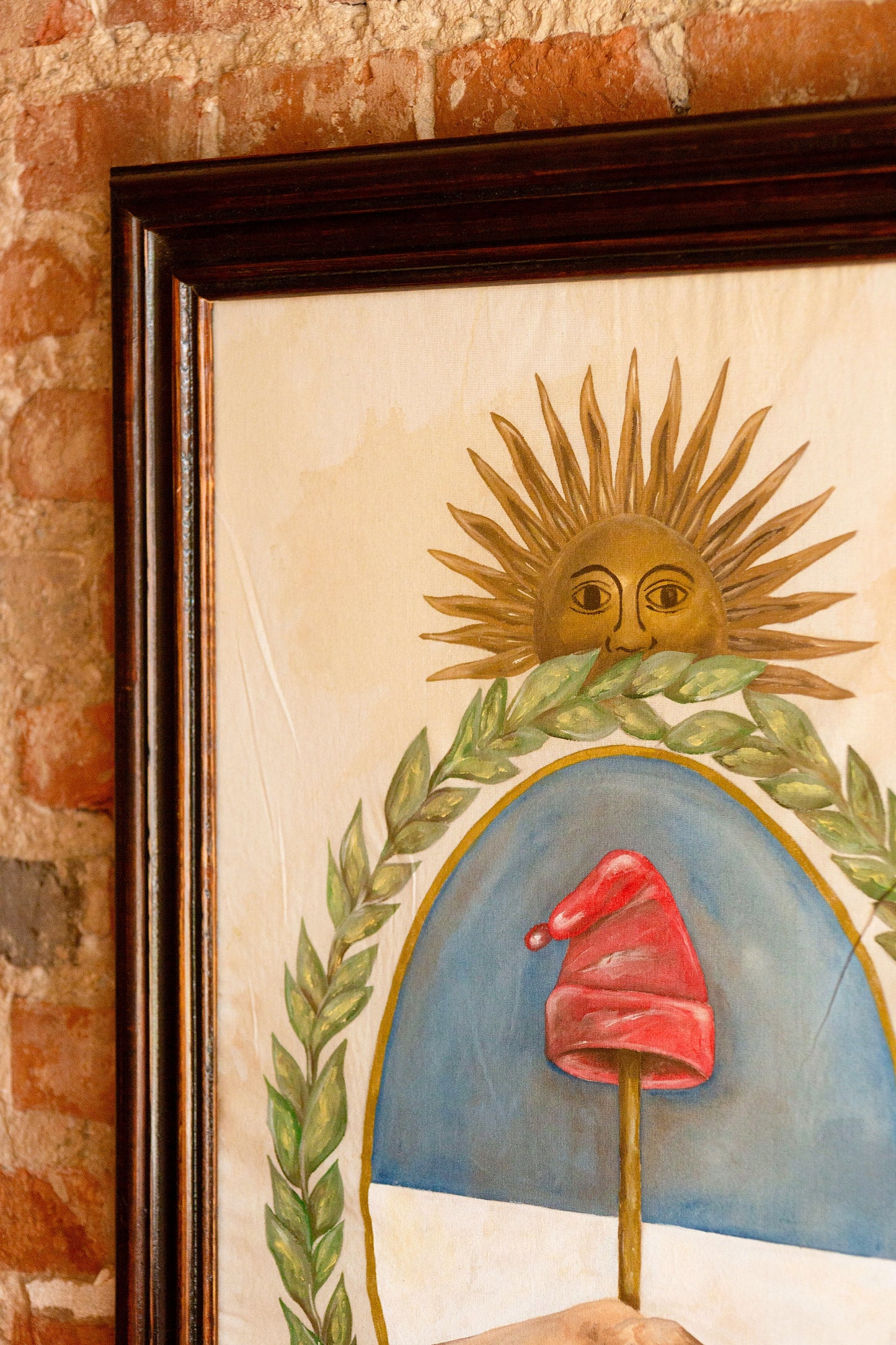 El Escudo Nacional Argentino es obra de una gran artista jujeña que sobre lienzo medio, pintura acrílica e impronta de simbolismo patrio antiguo crea durante muchos meses de inspiración, solamente 10 obras únicas y cada una con distintos matices tomados de nuestra historia argentina.