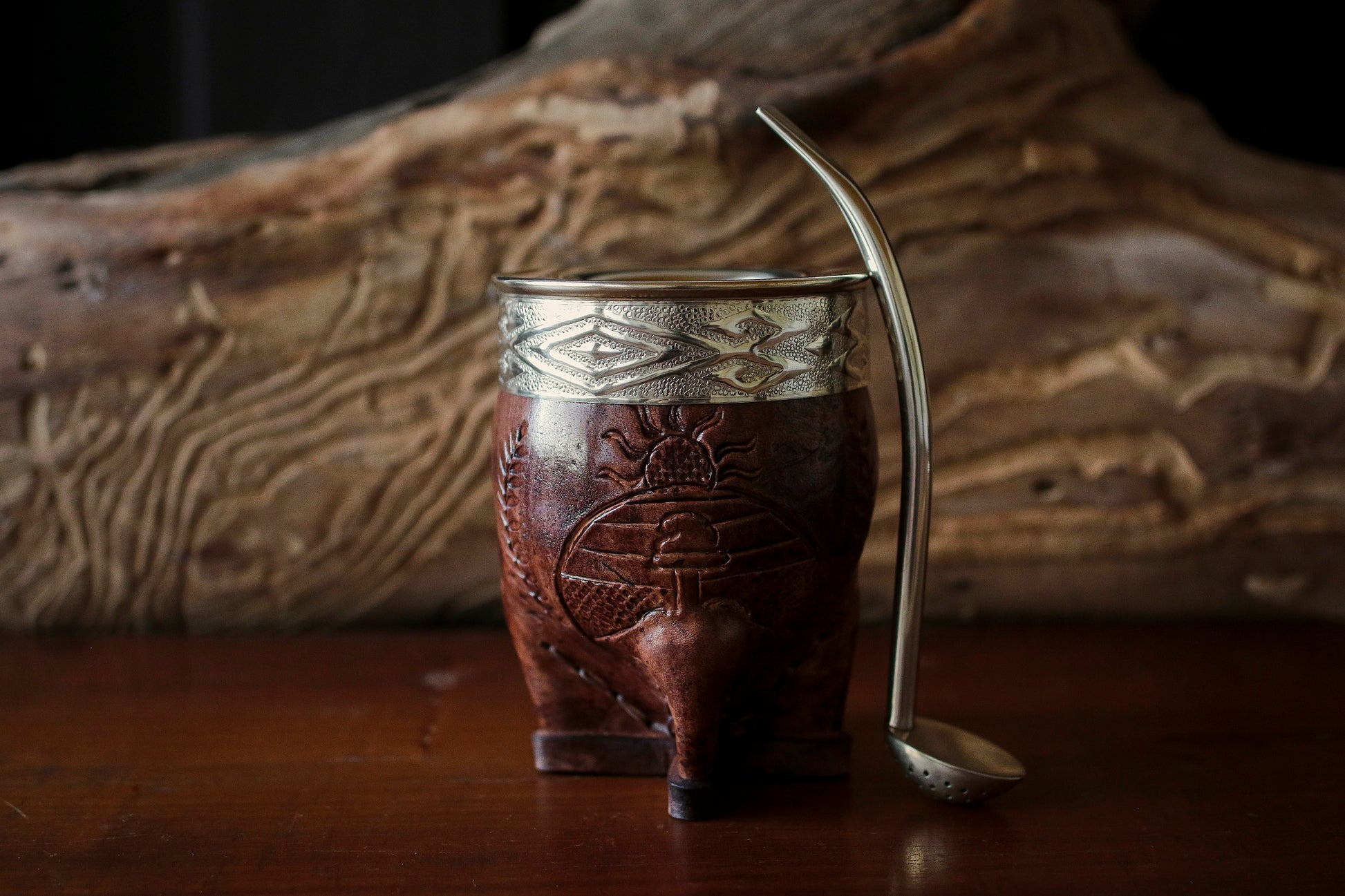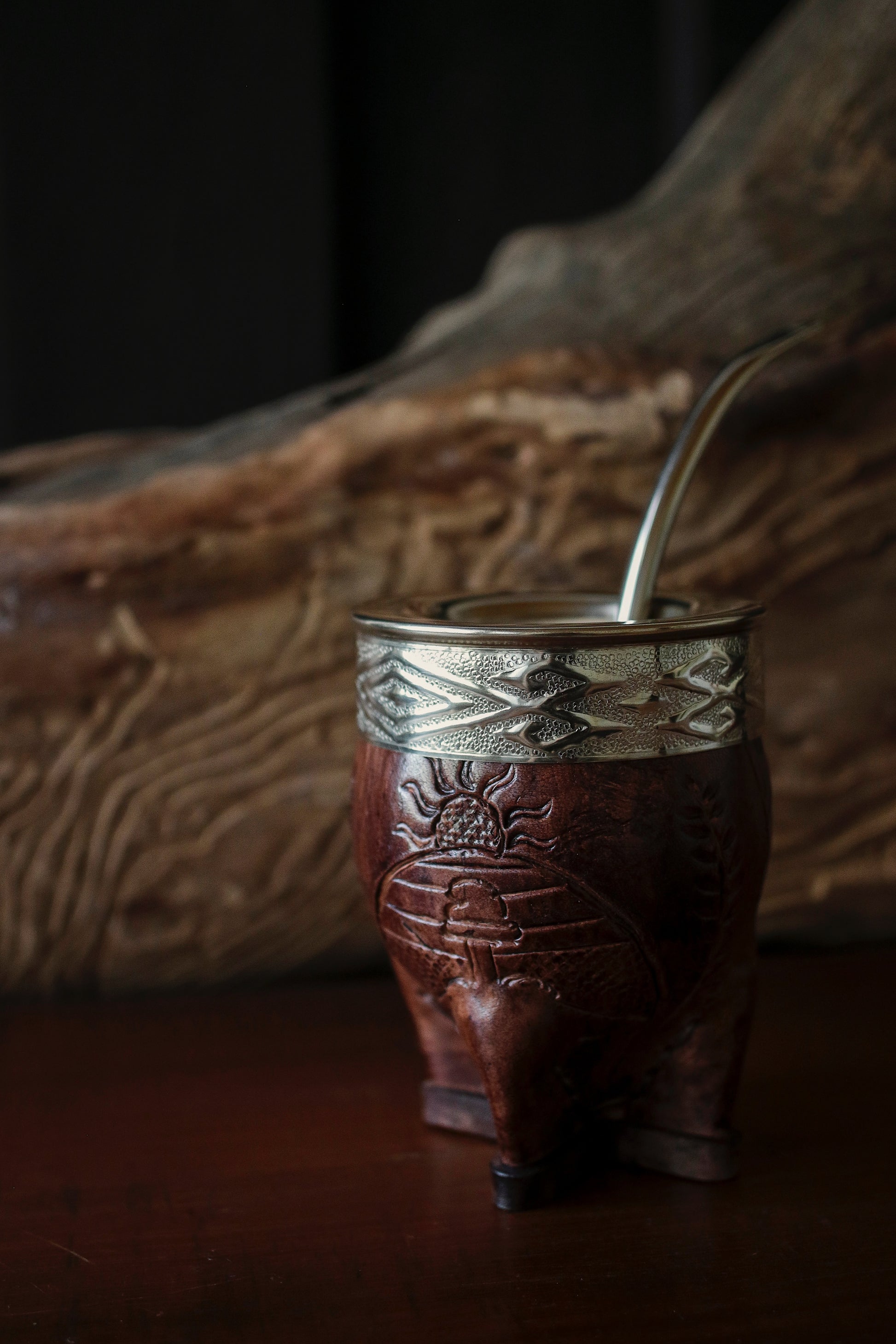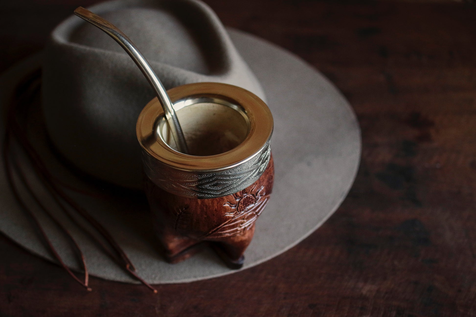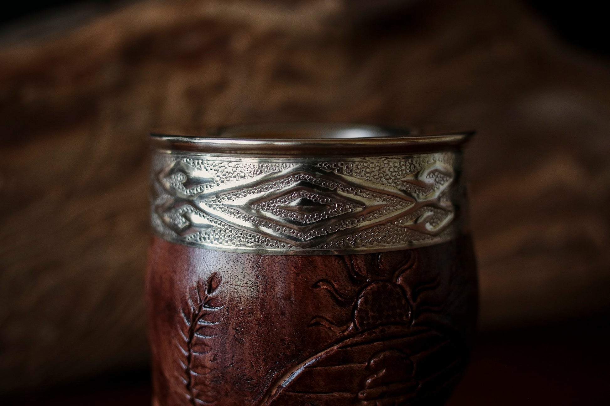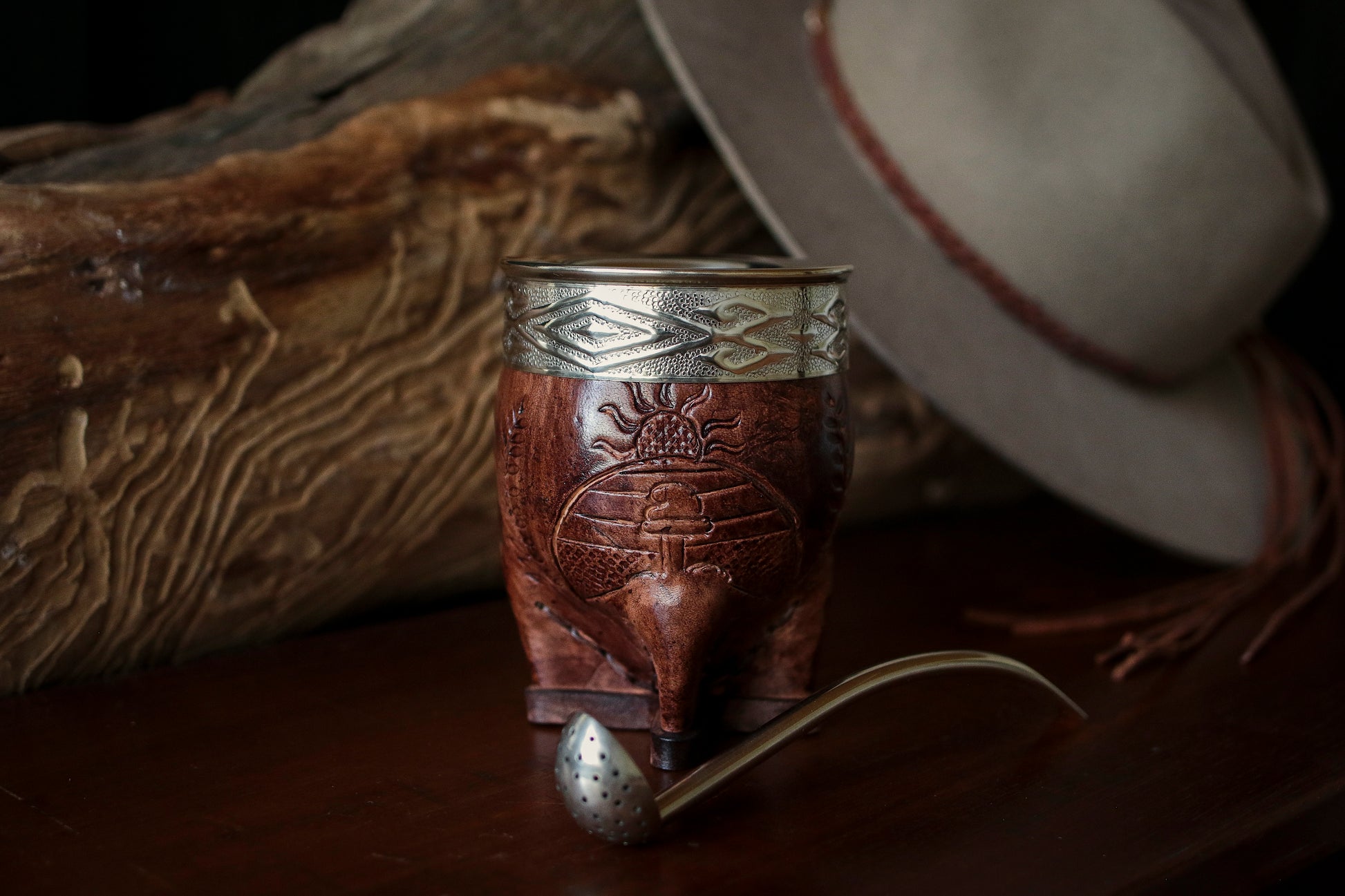 Mate imperial de porongo forrado artesanalmente en cuero natural