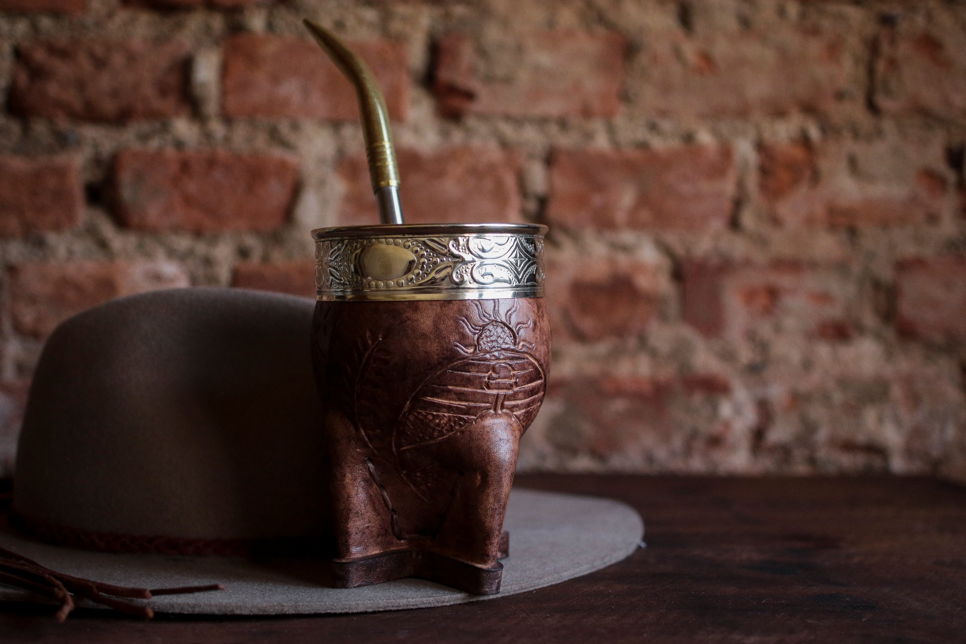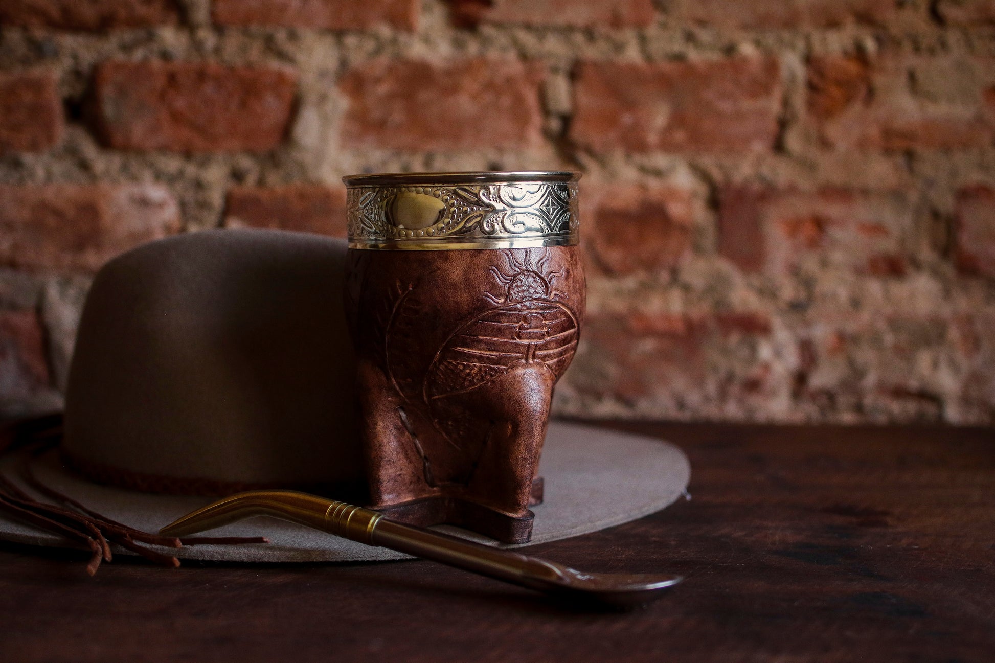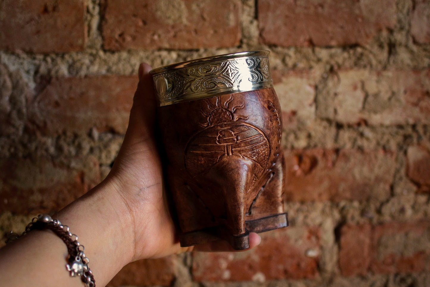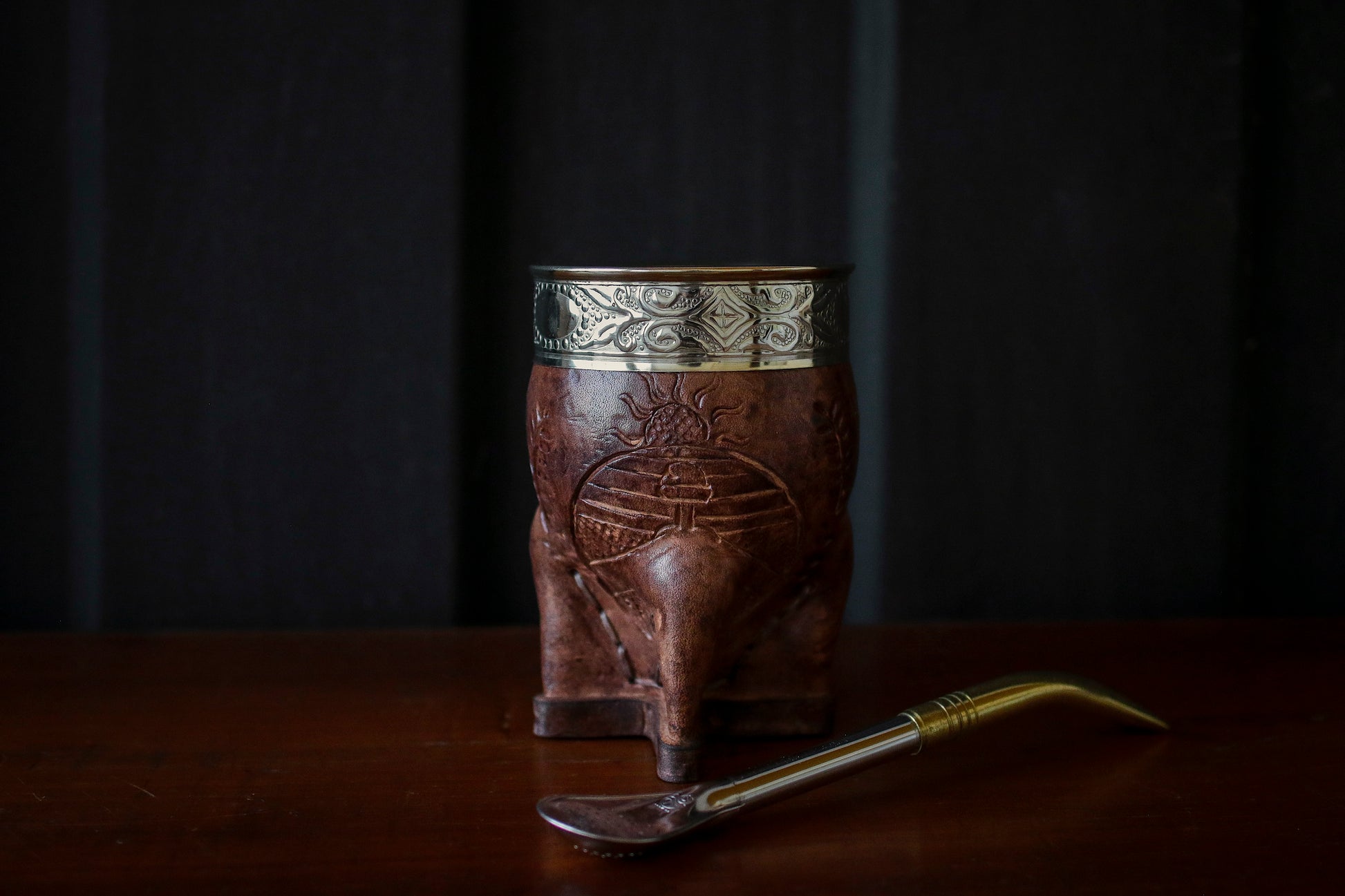 Mate imperial de porongo forrado artesanalmente en cuero natural