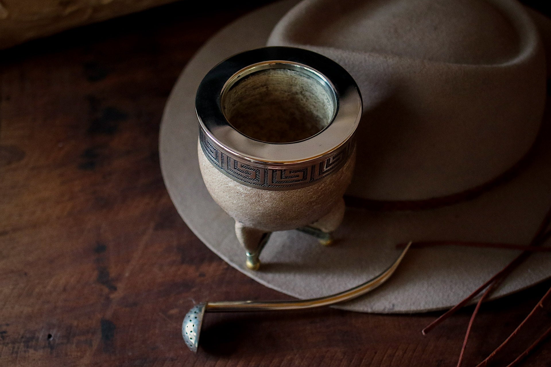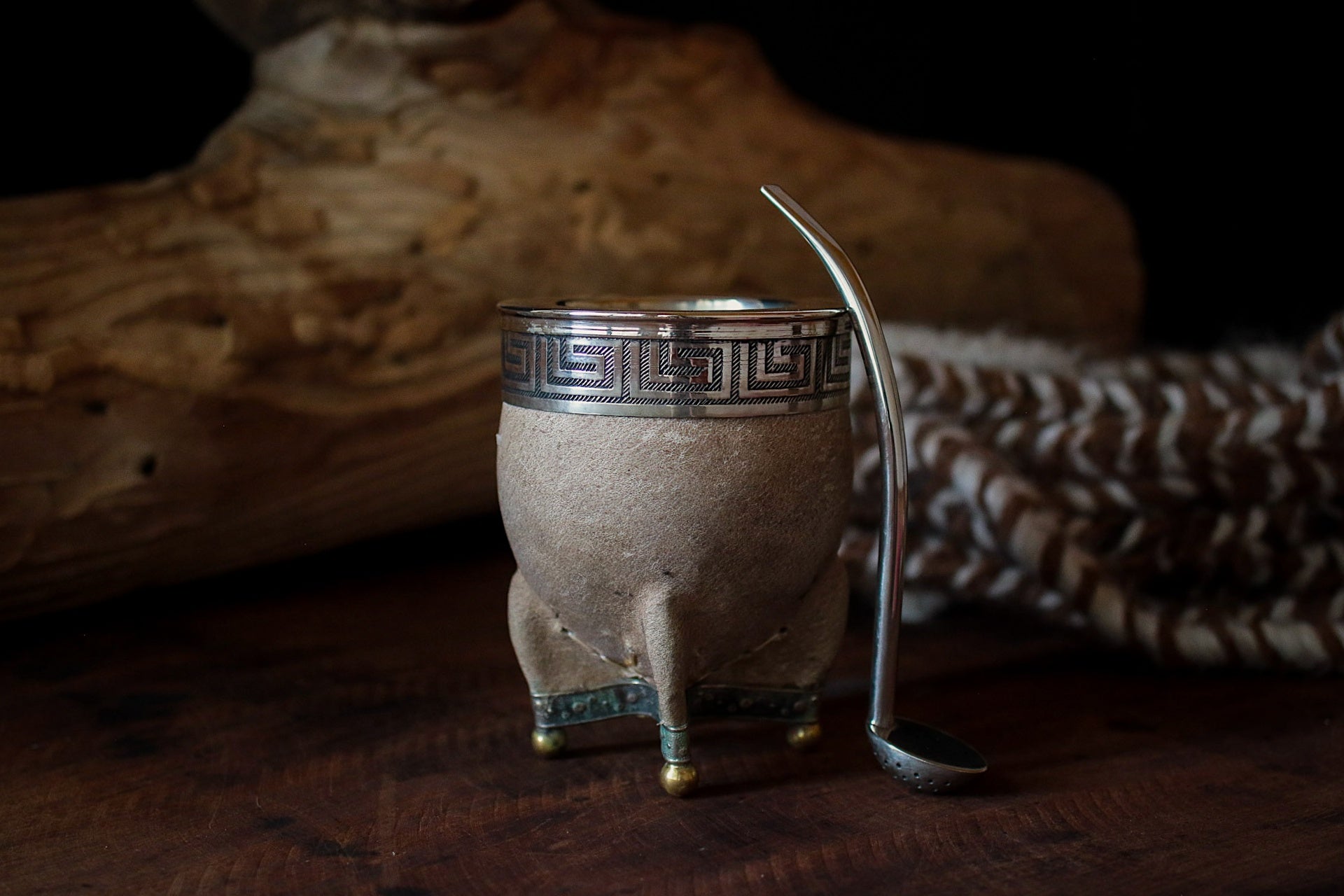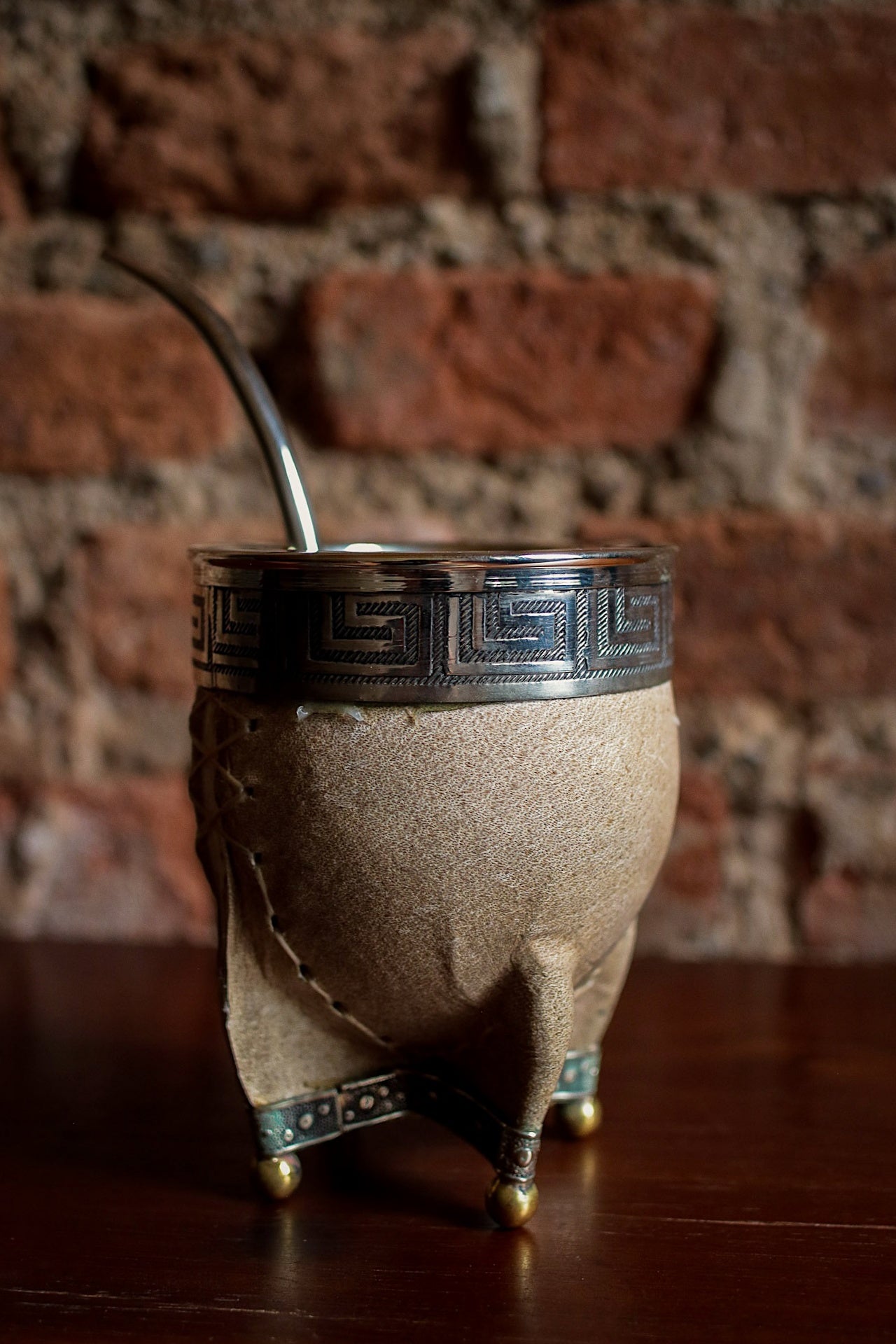 Mate de Cuero con Base de Alpaca y Bronce con Bombilla
