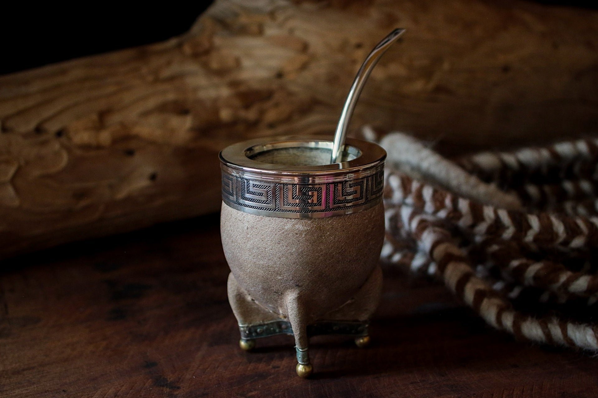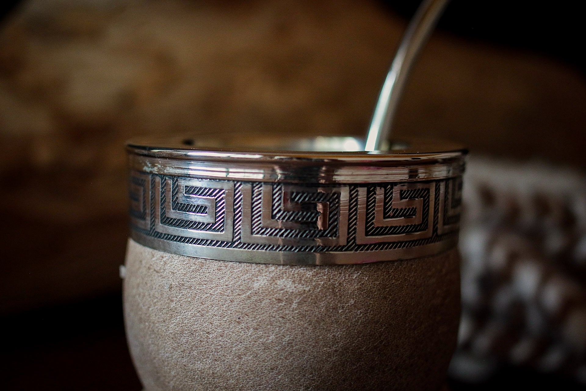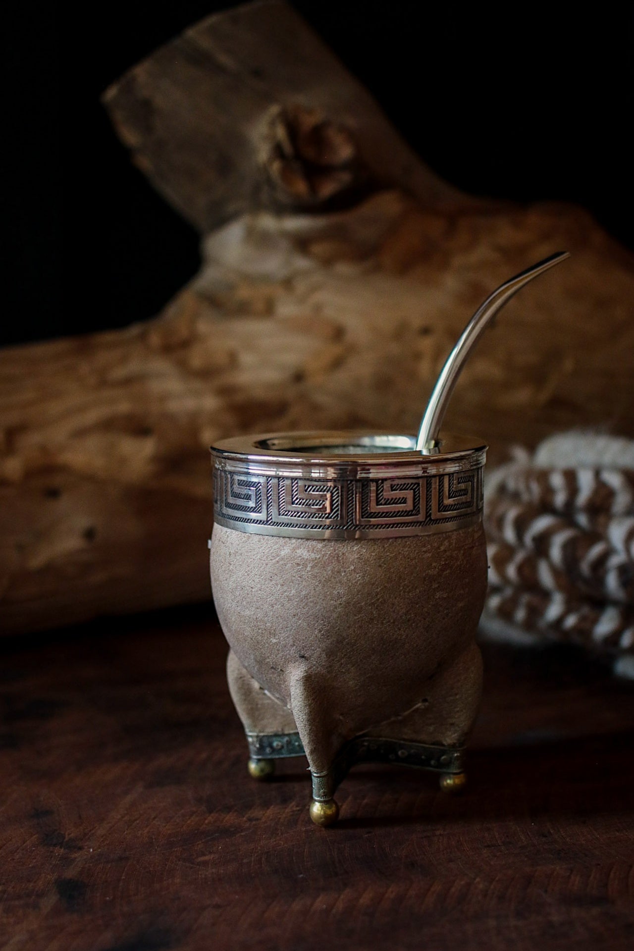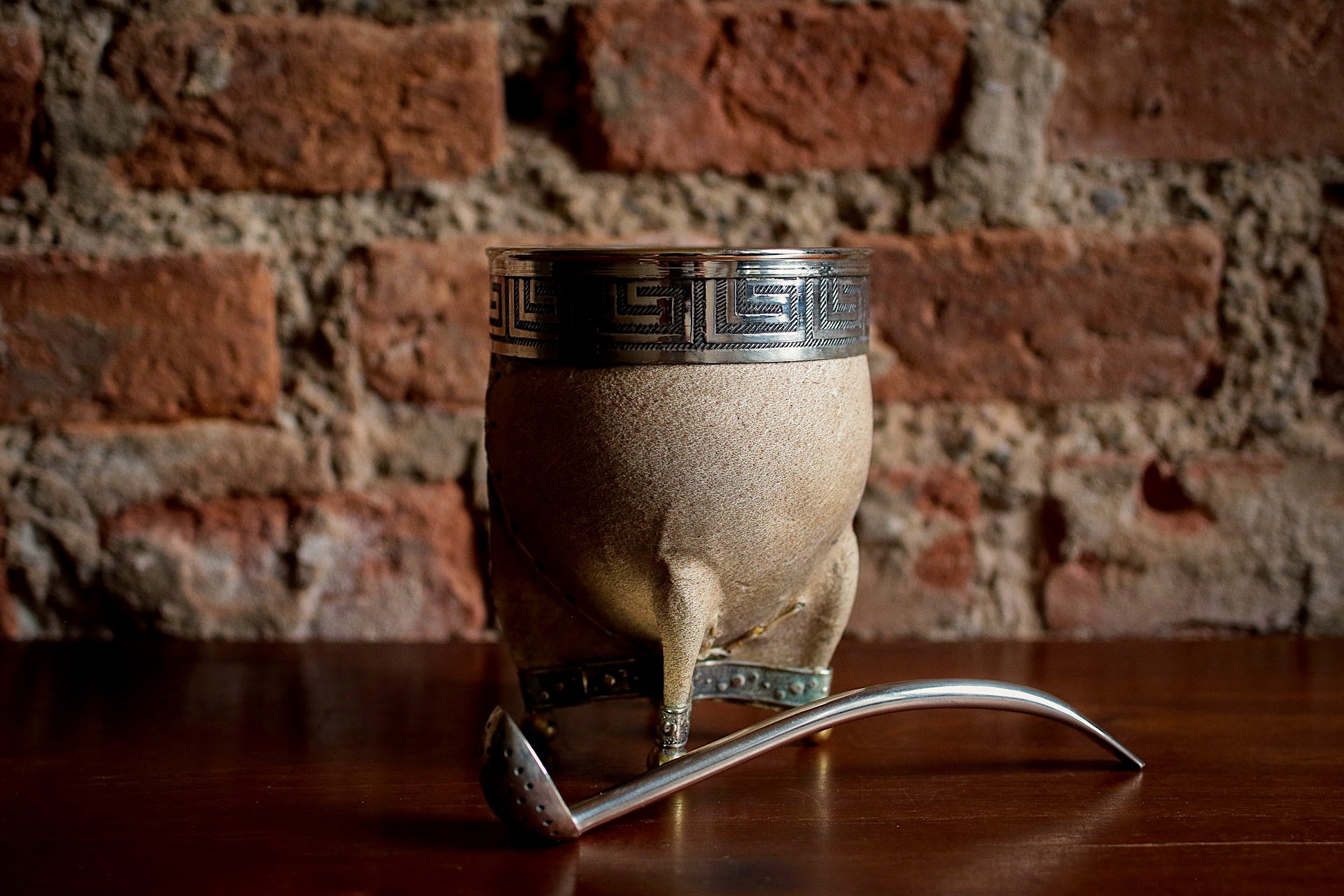 Mate de Cuero con Base de Alpaca y Bronce con Bombilla