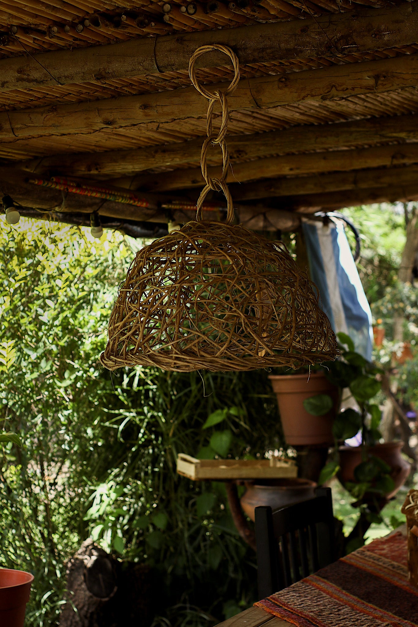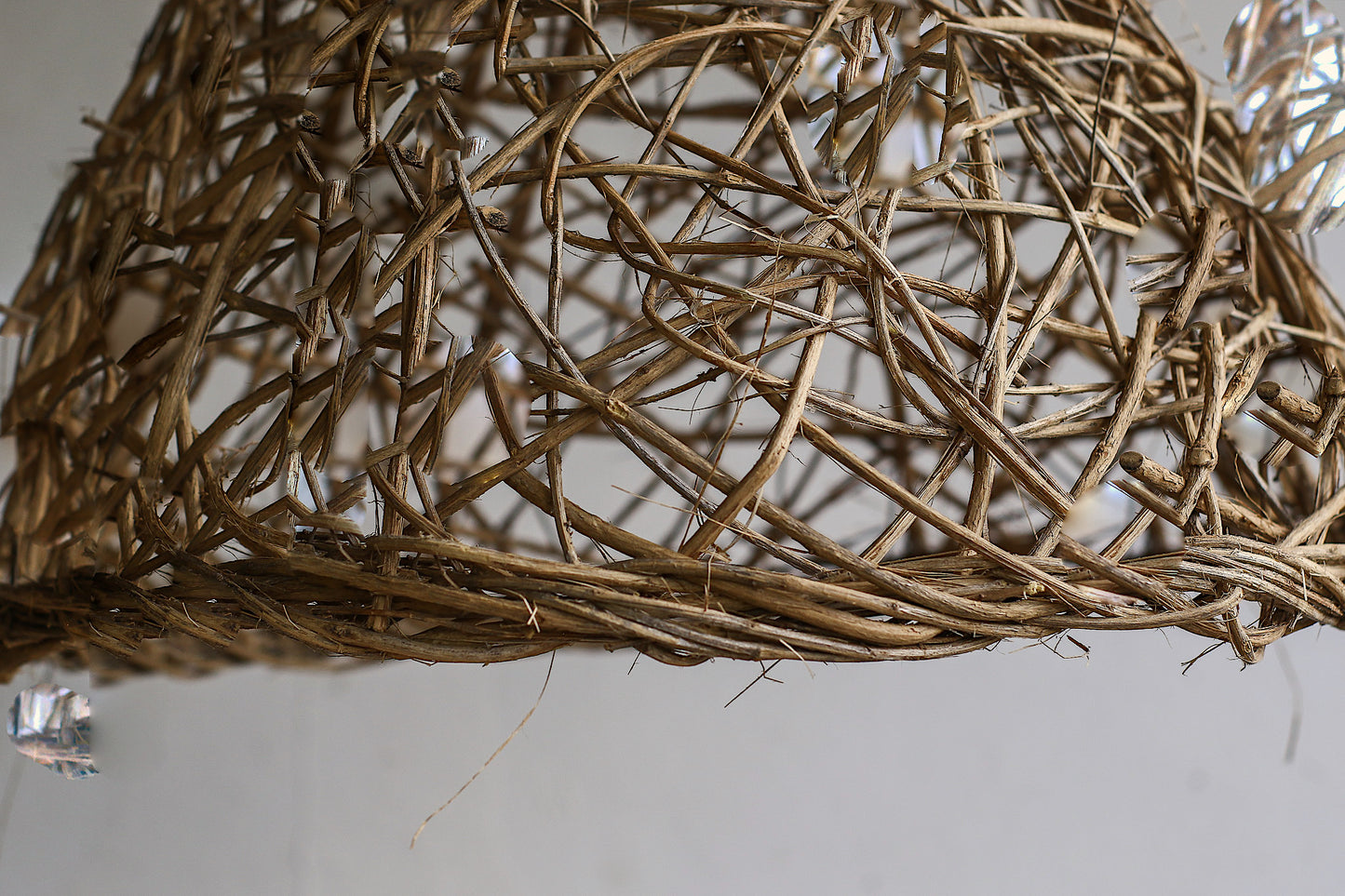 The branches are collected by hand and the segments are cleaned one by one with a knife until the stick is smooth, the braiding and crisscrossing is done by hand.