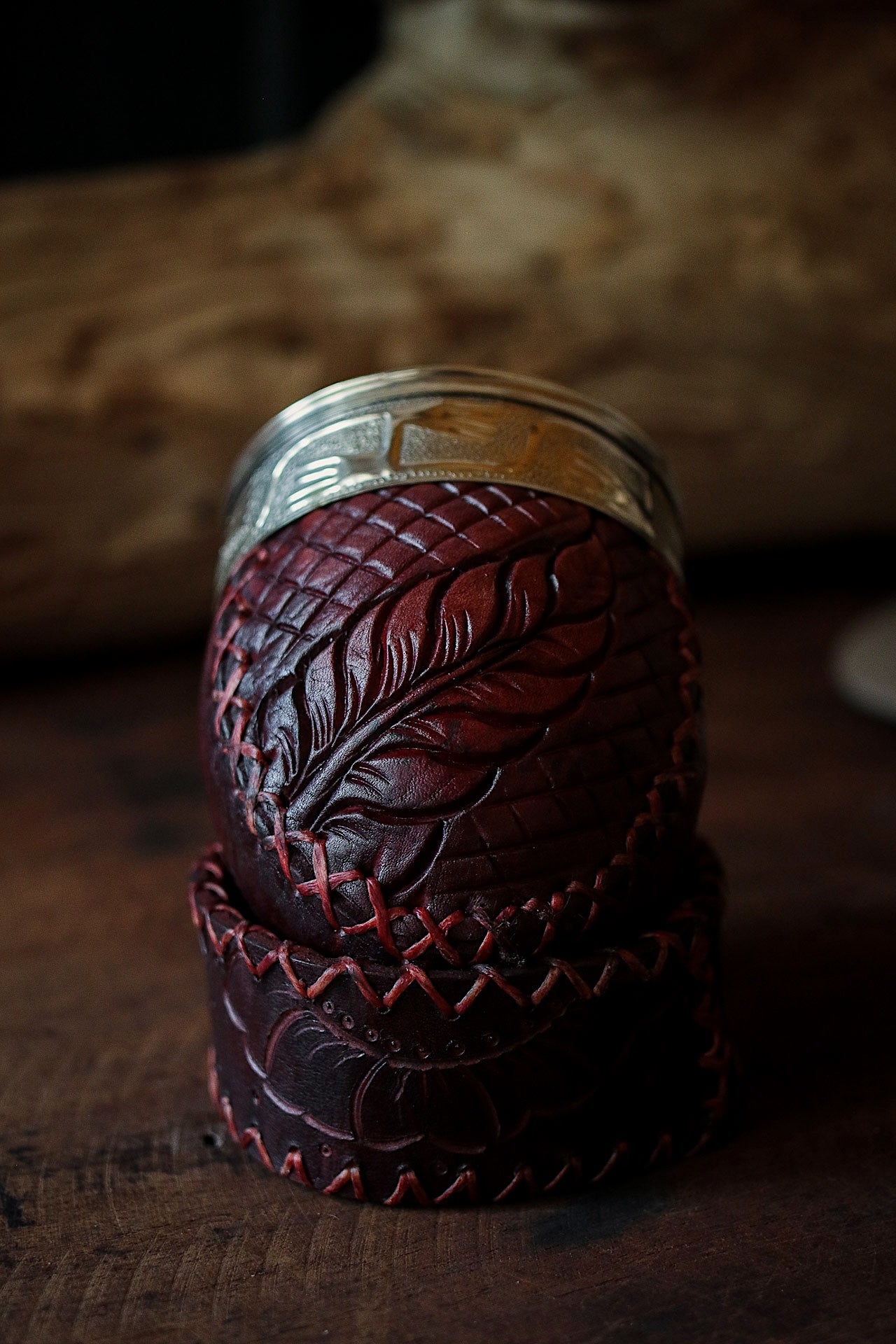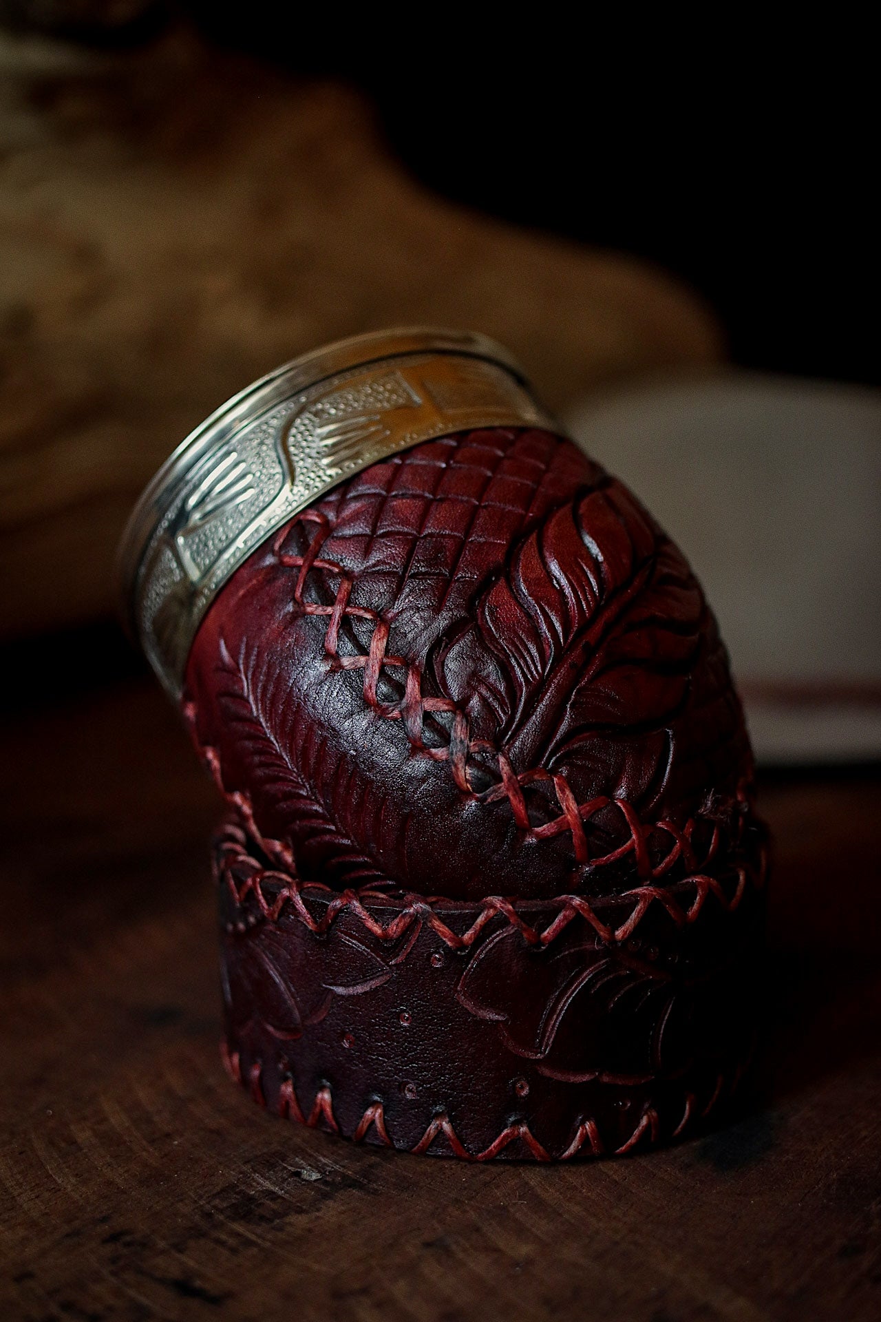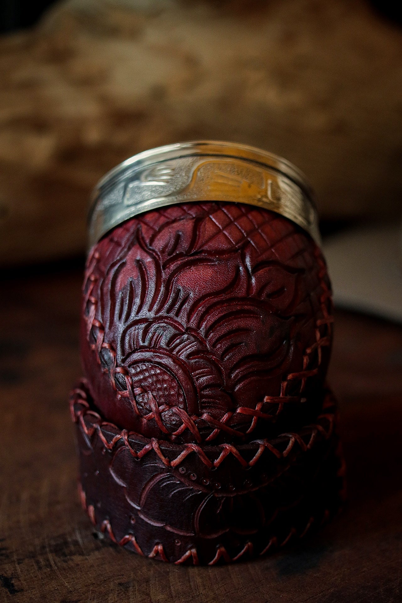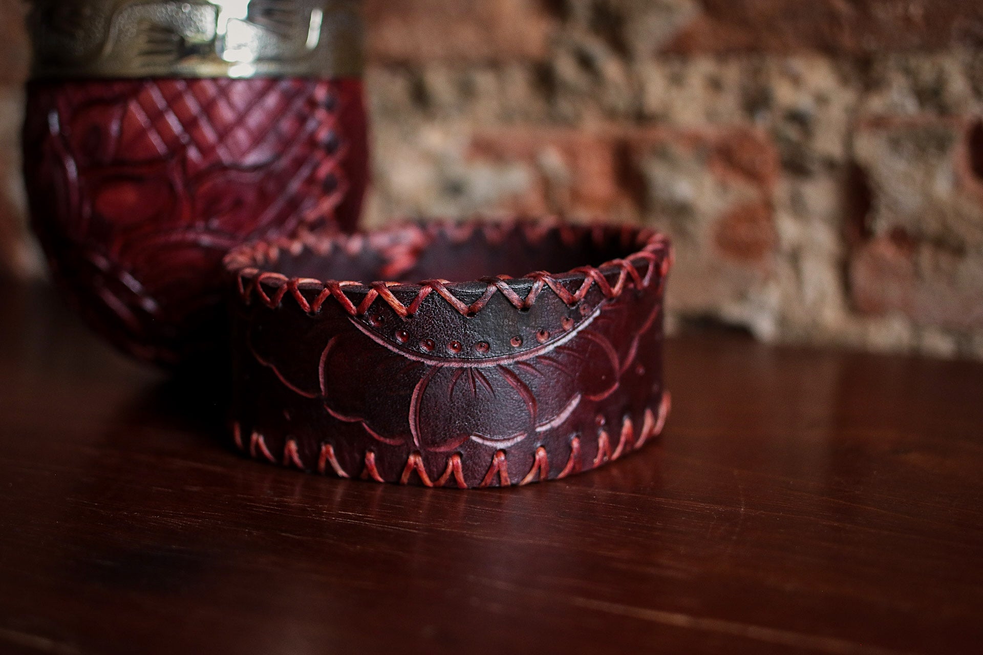 La base es de cuero cocido a mano con con hilo encerado.