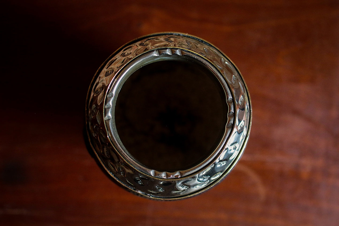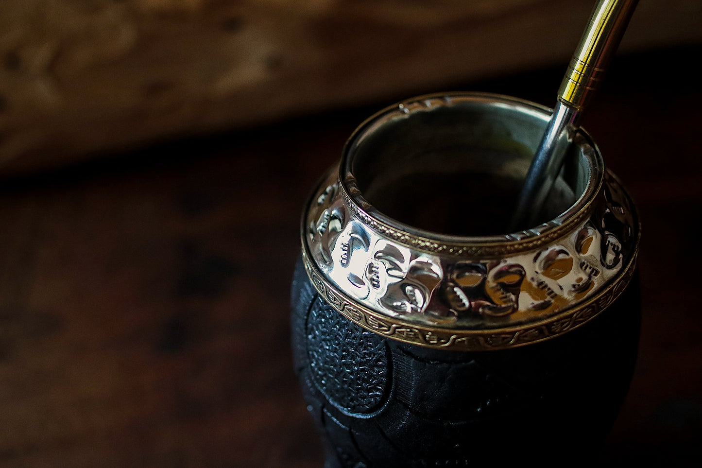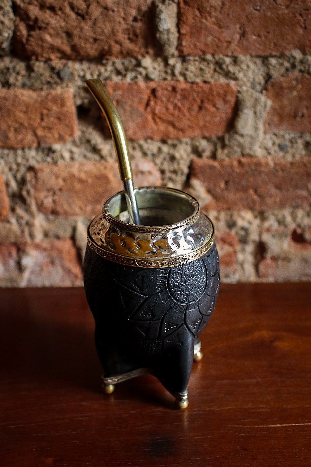 Mate de Cuero, Bronce y Alpaca con Bombillón