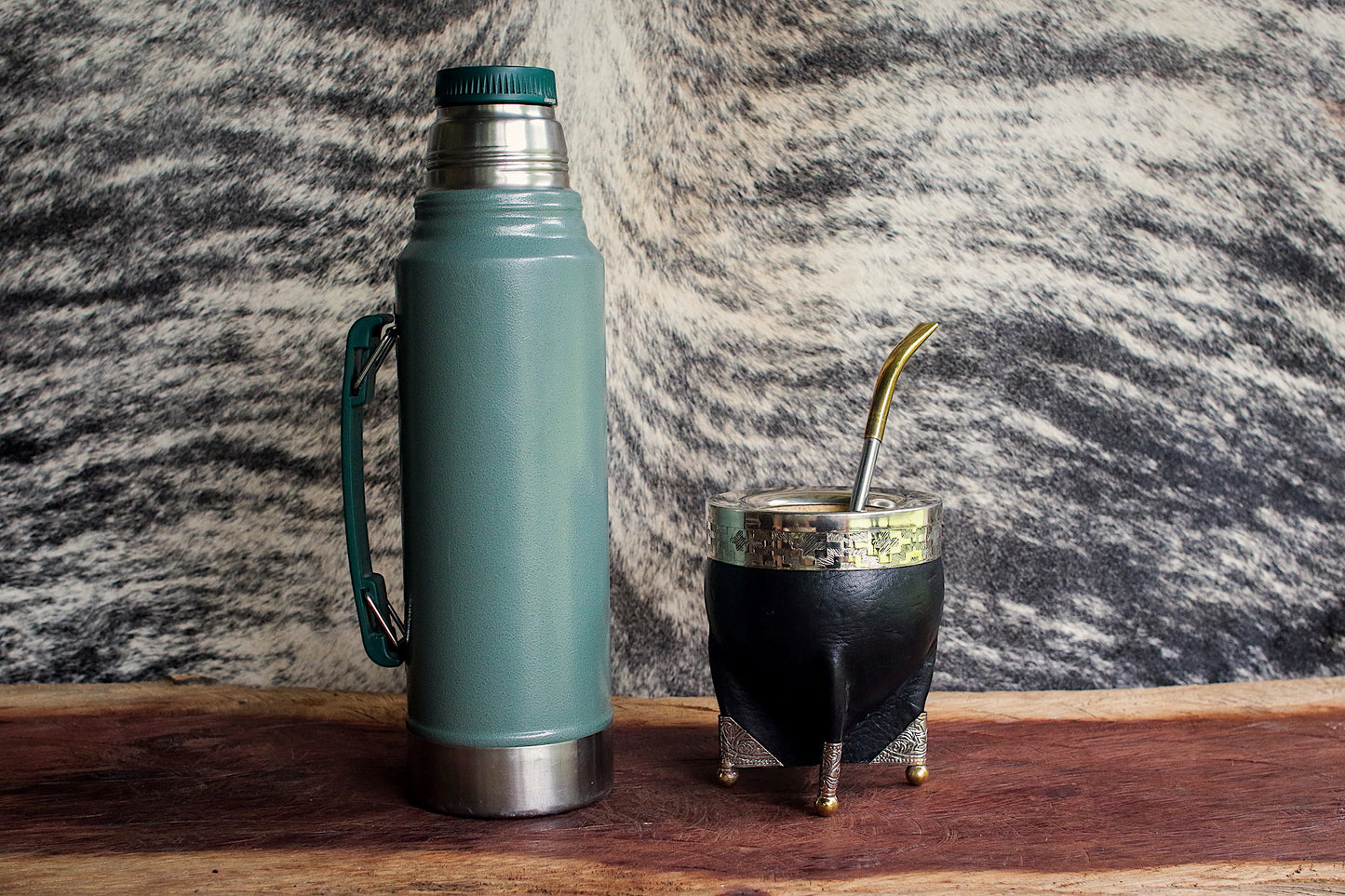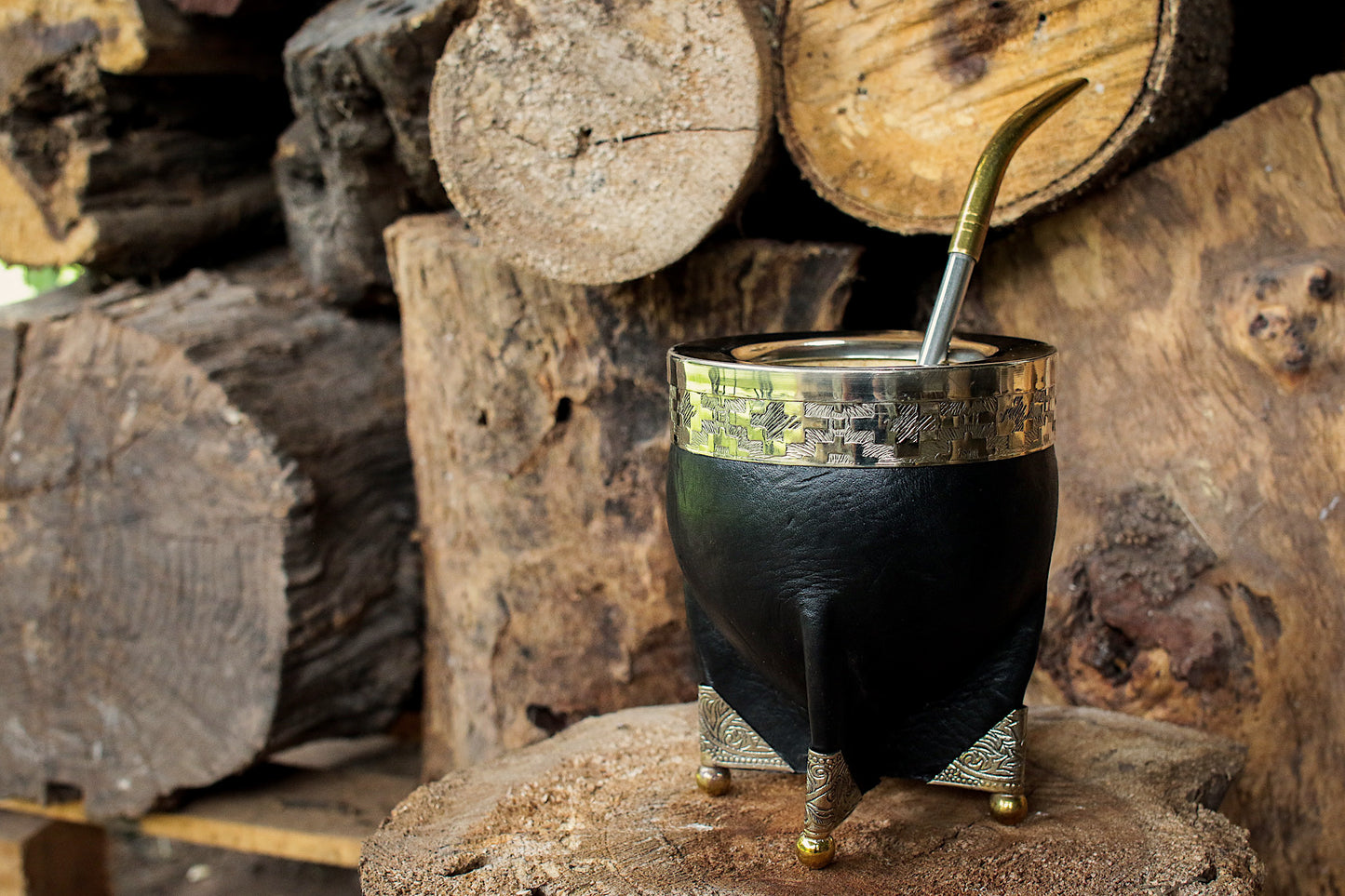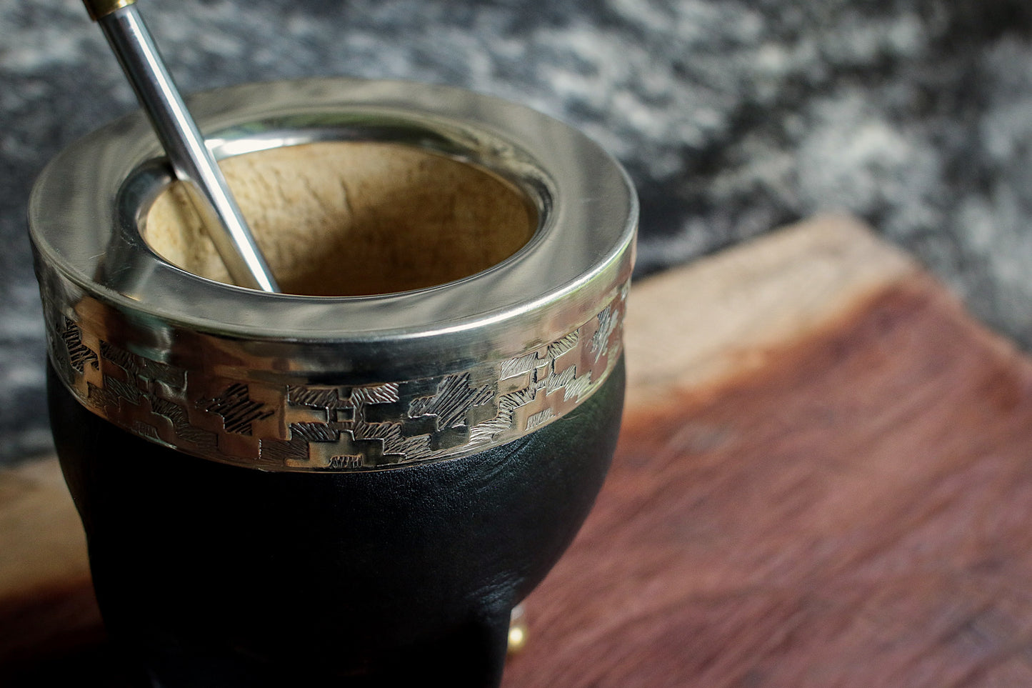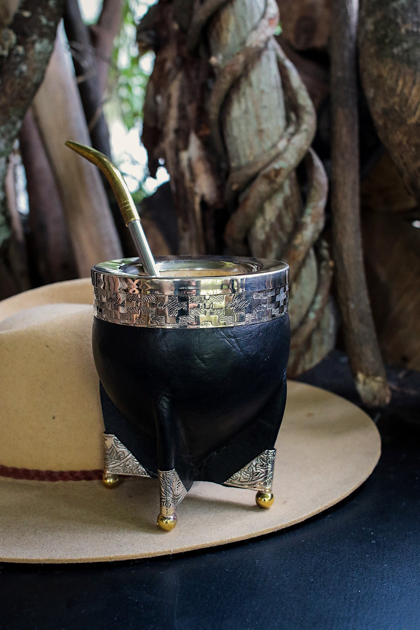 Mate de Cuero, Bronce y Alpaca con Bombillón