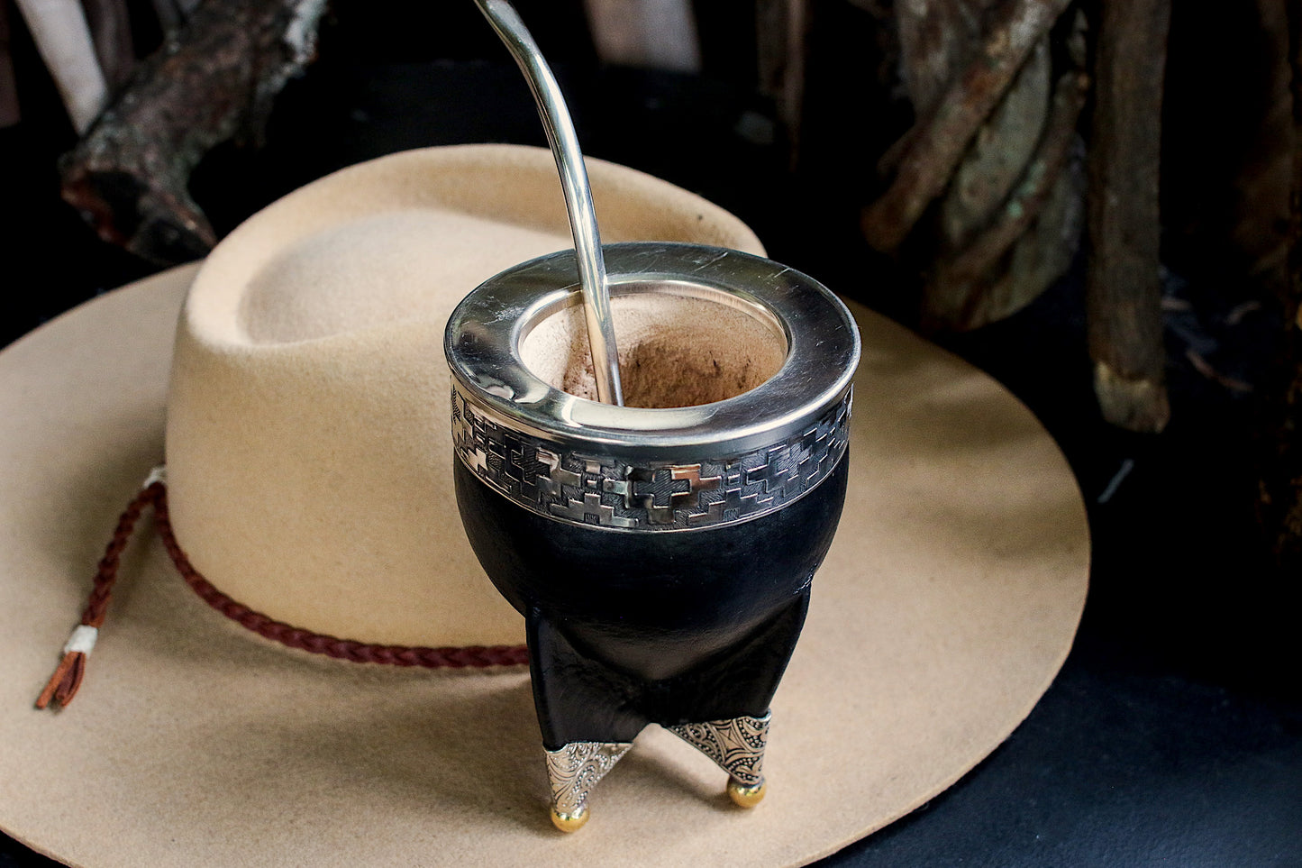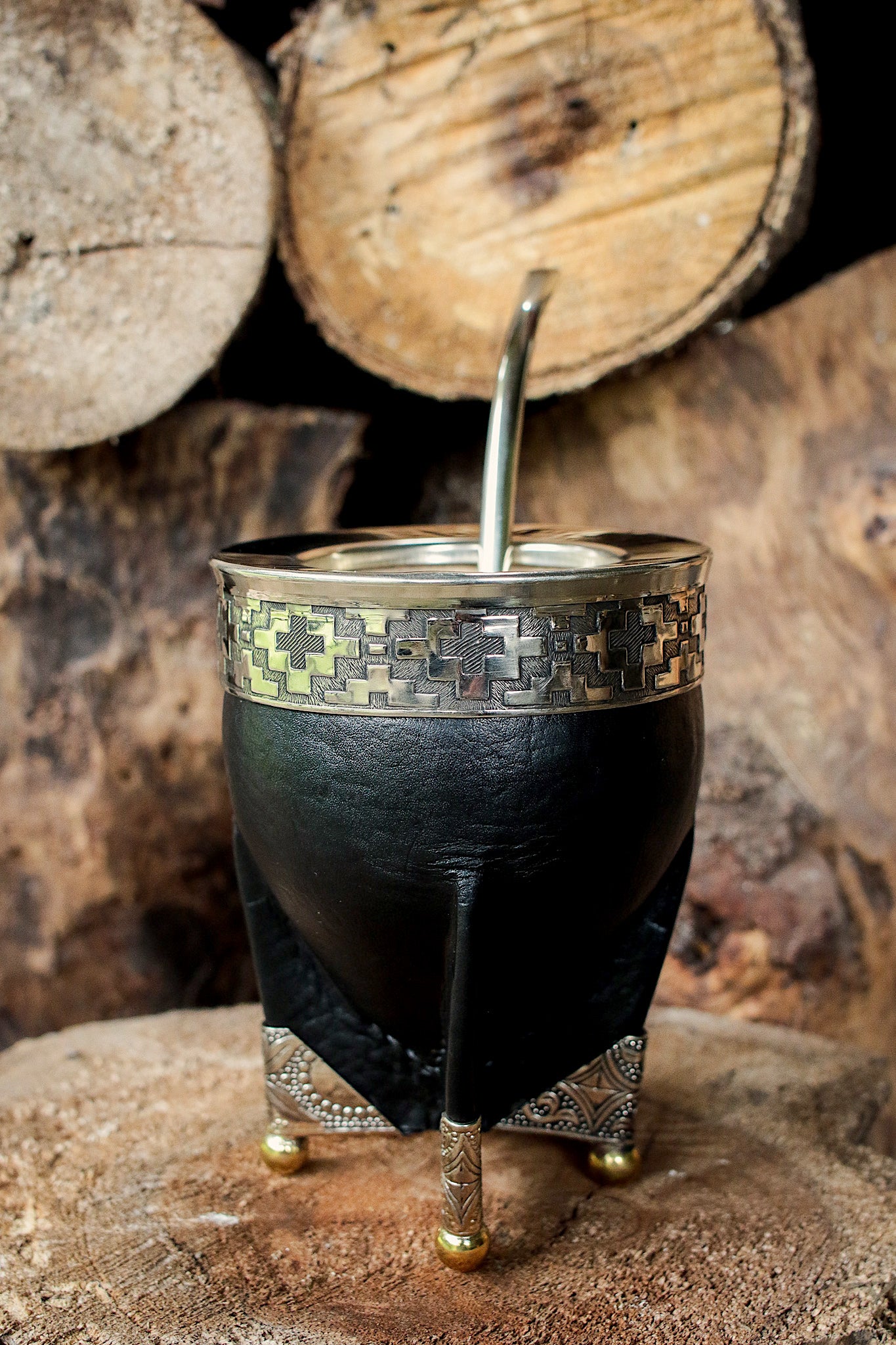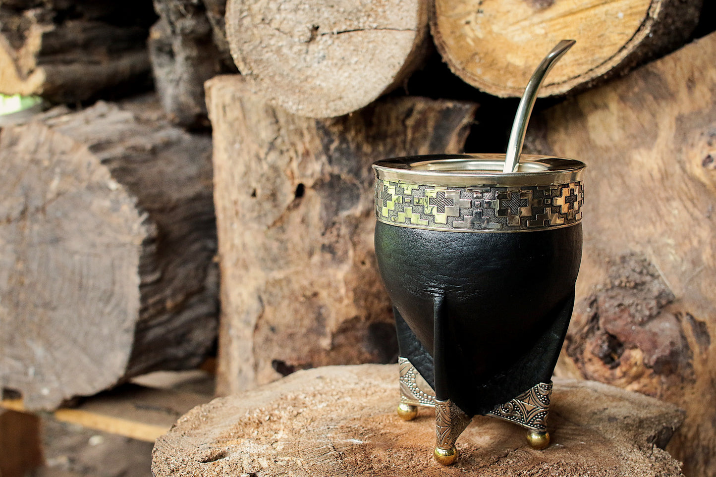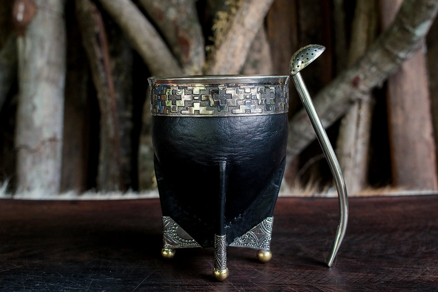 Mate de Cuero, Bronce y Alpaca con Bombillón