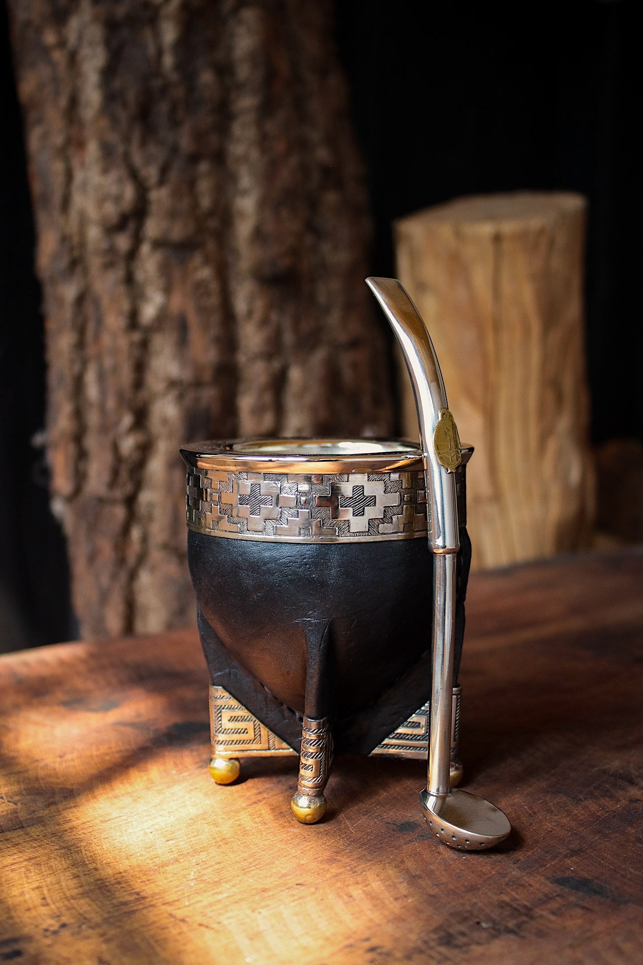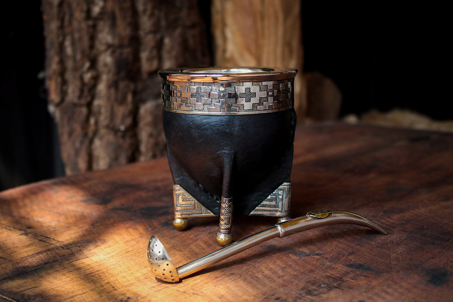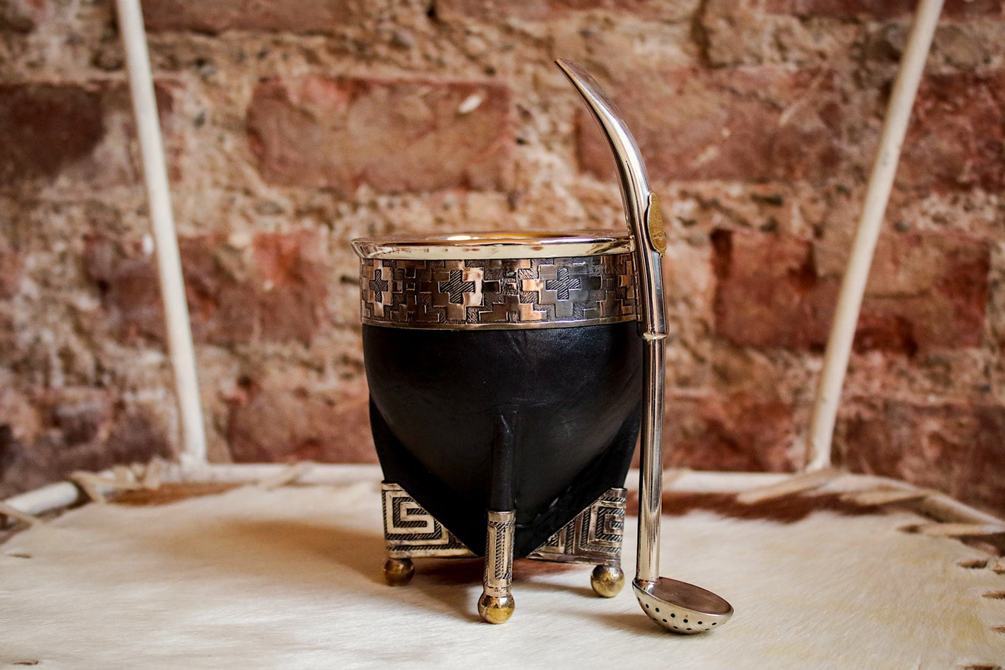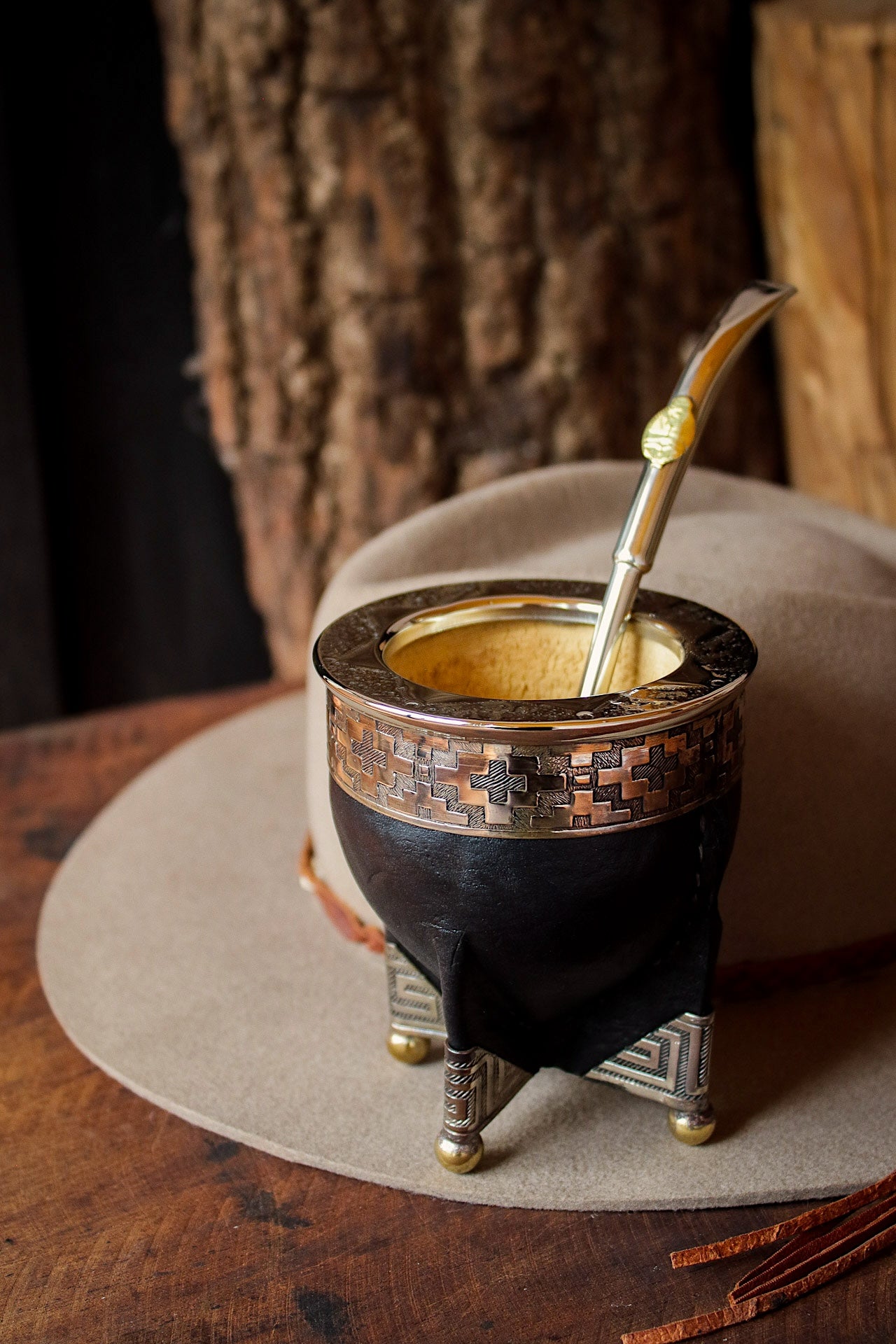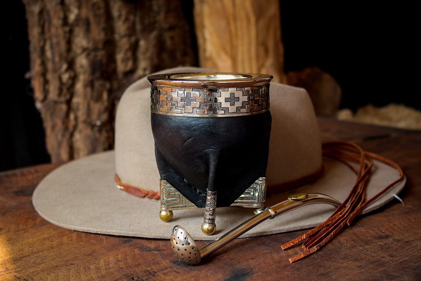 Mate de Cuero, Bronce y Alpaca con Bombillón
