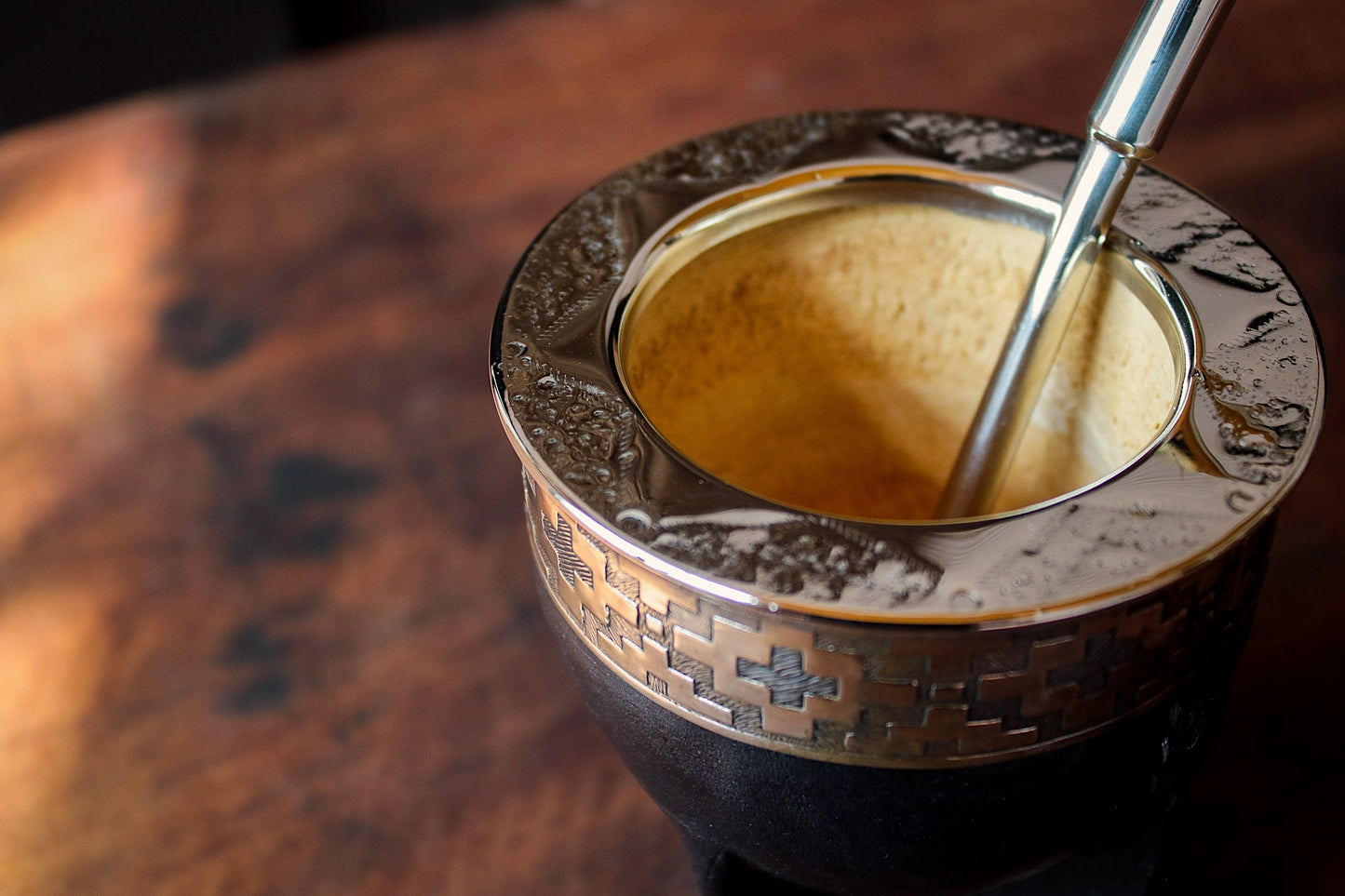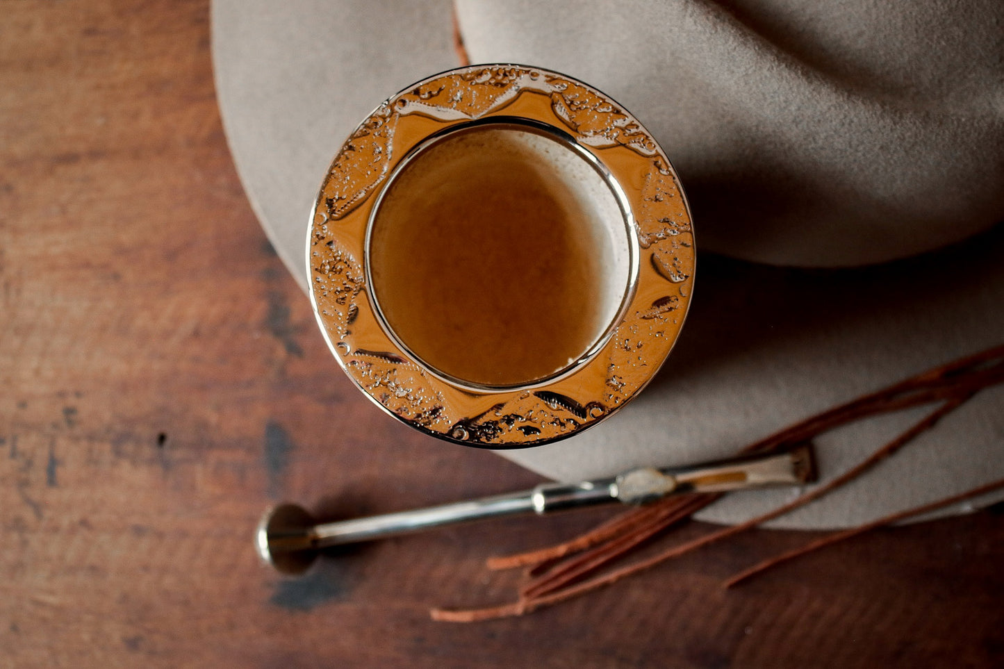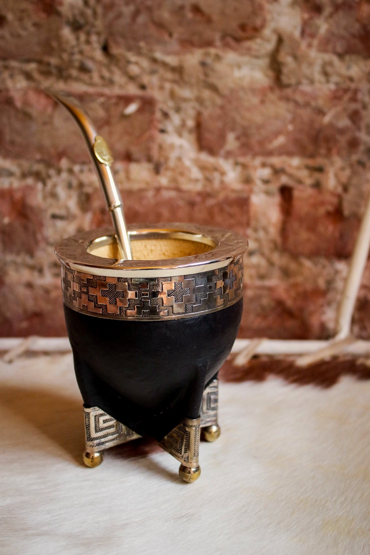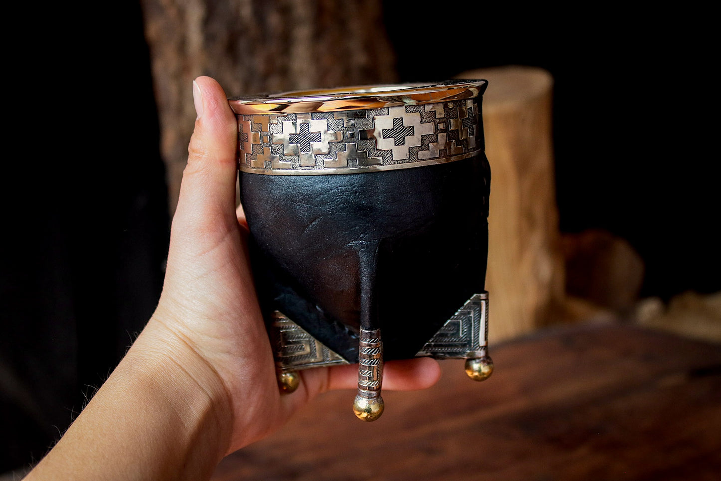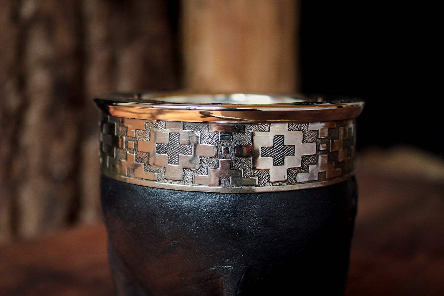 Mate de Cuero, Bronce y Alpaca con Bombillón
