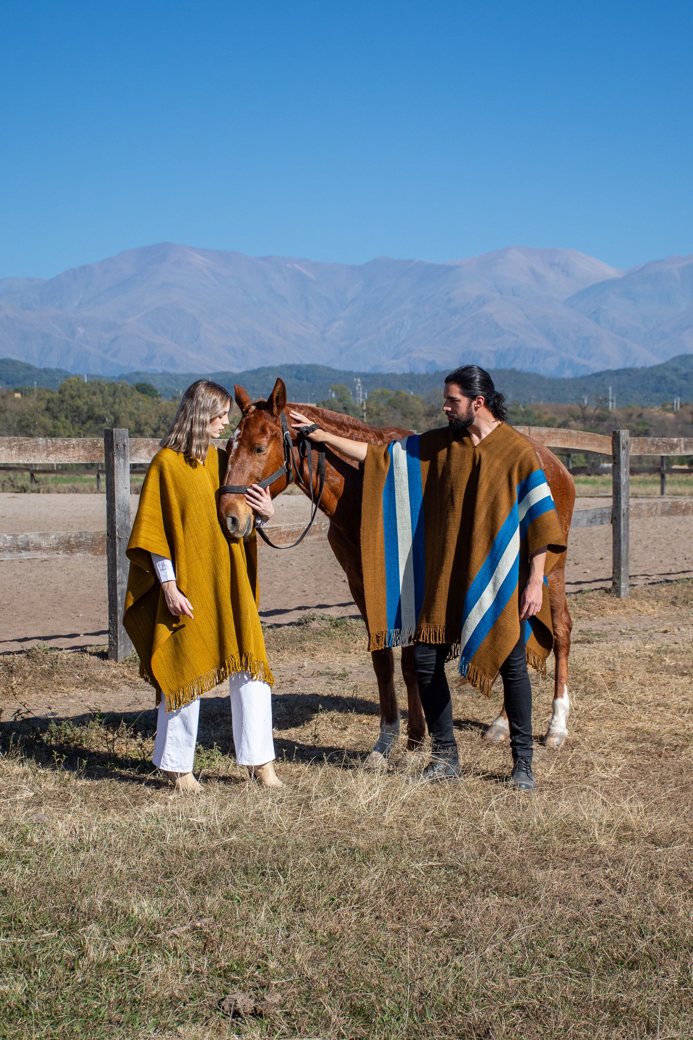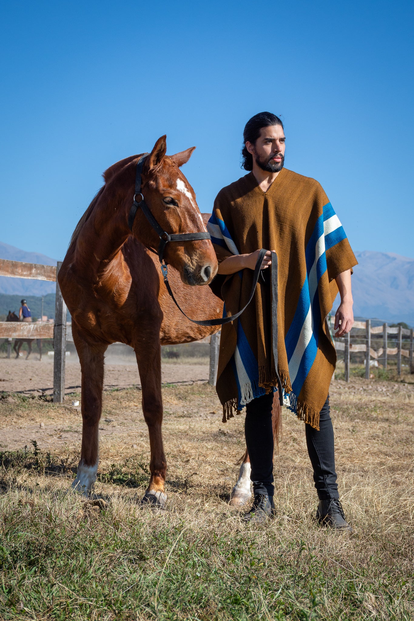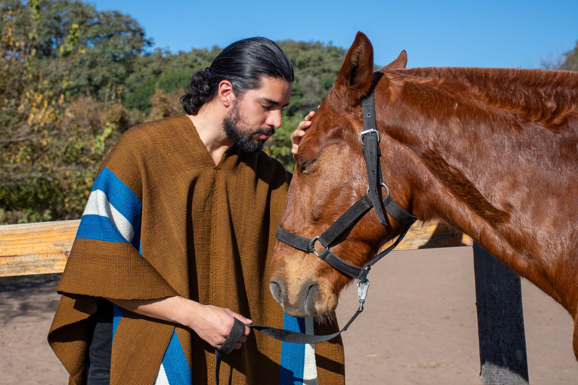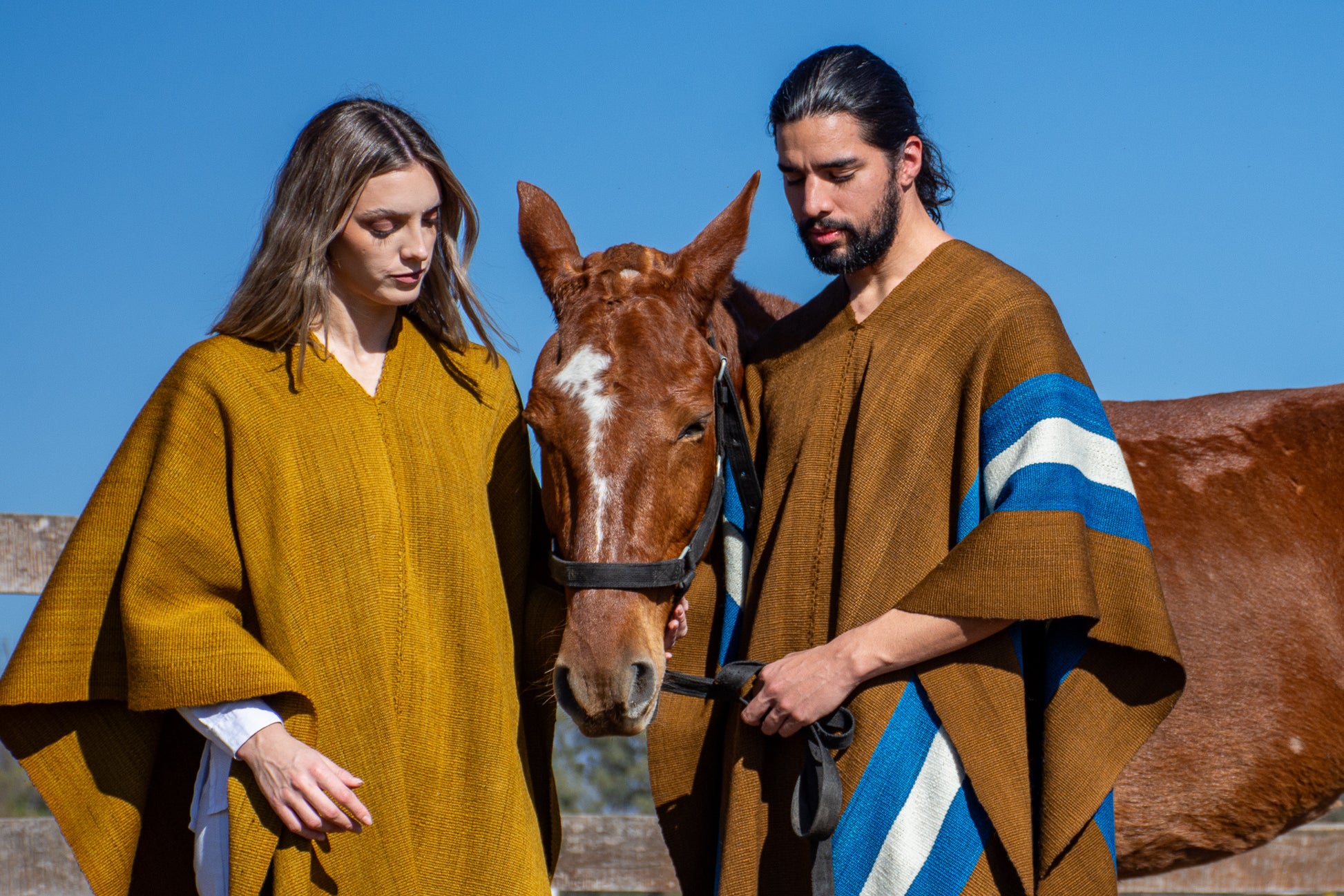 The poncho is a unique piece woven by hand with sheep wool threads on a Creole loom , with a high density of closed weft and light weight.