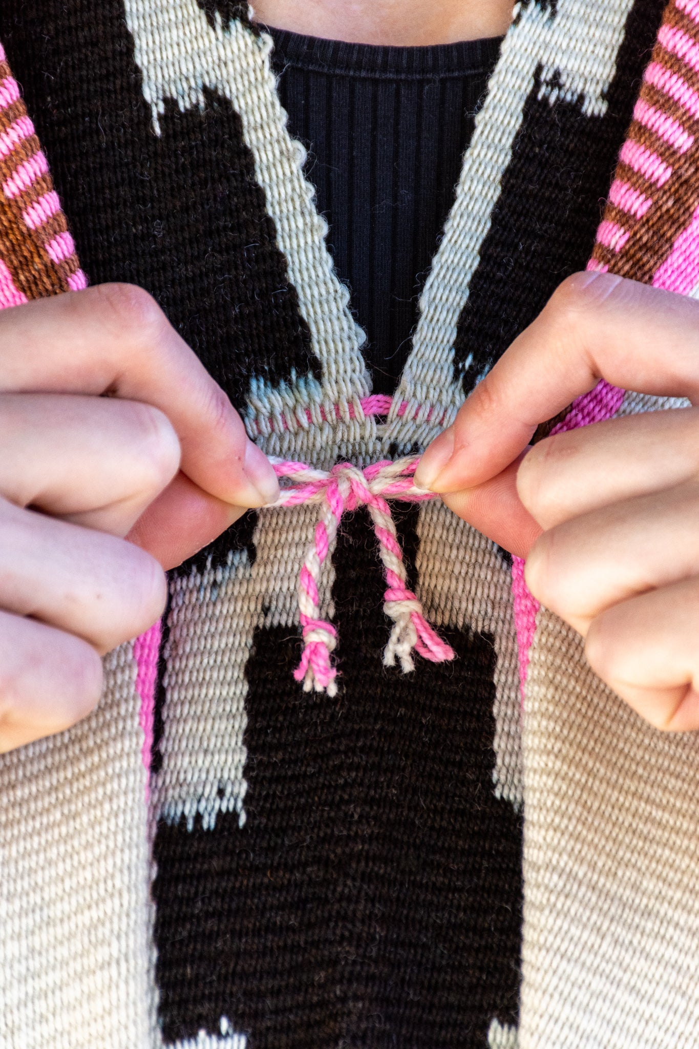 It is the work of a family of artisans that collaborates in the care of our traditions and knowledge, also, on this work is the work of llama and sheep breeders, they are also families that participate in the value chain of this poncho .