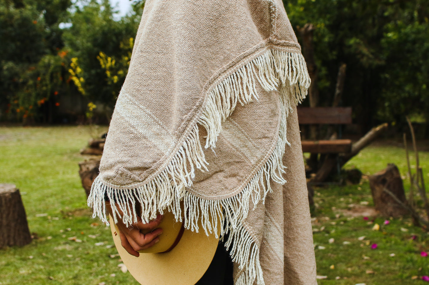 The SAN CARLO poncho is part of the "RUNA" collection and is made in Rustic loom with sheep wool threads.