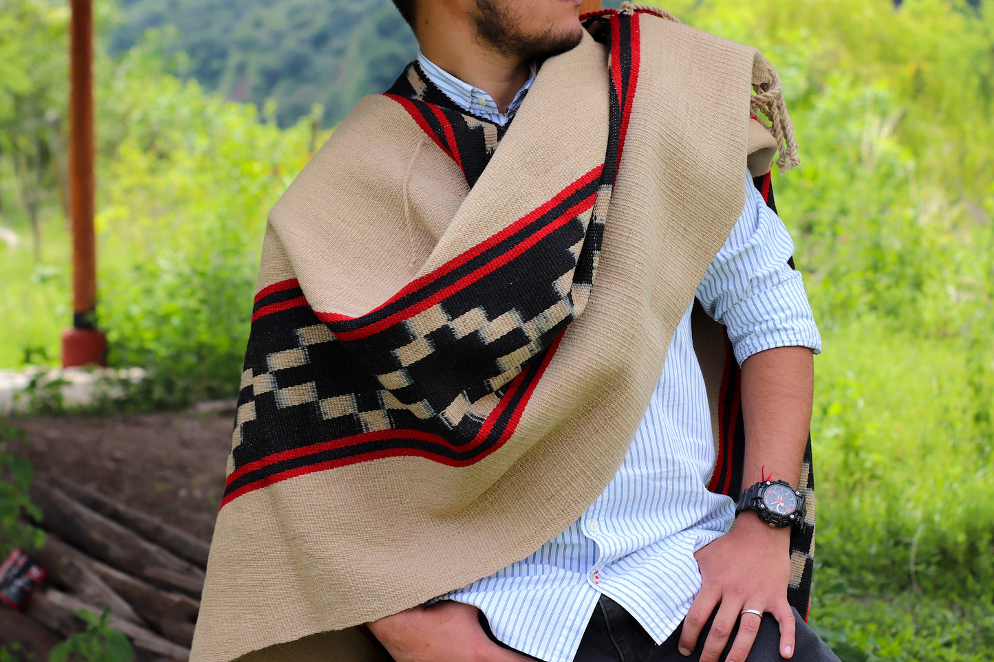 Poncho "Jaguel" , is part of the "Federal Collection" of 23 textile works Wayno, is a unique piece, woven by hand with sheep wool fiber on a Creole loom .
