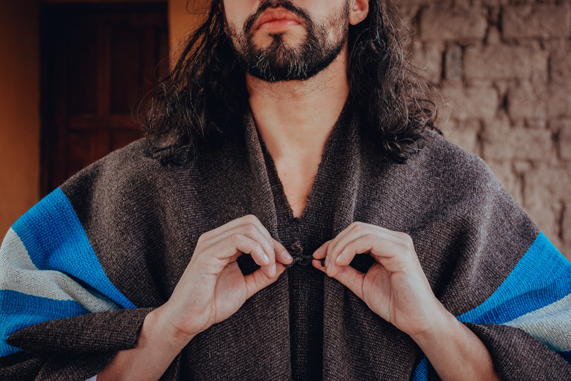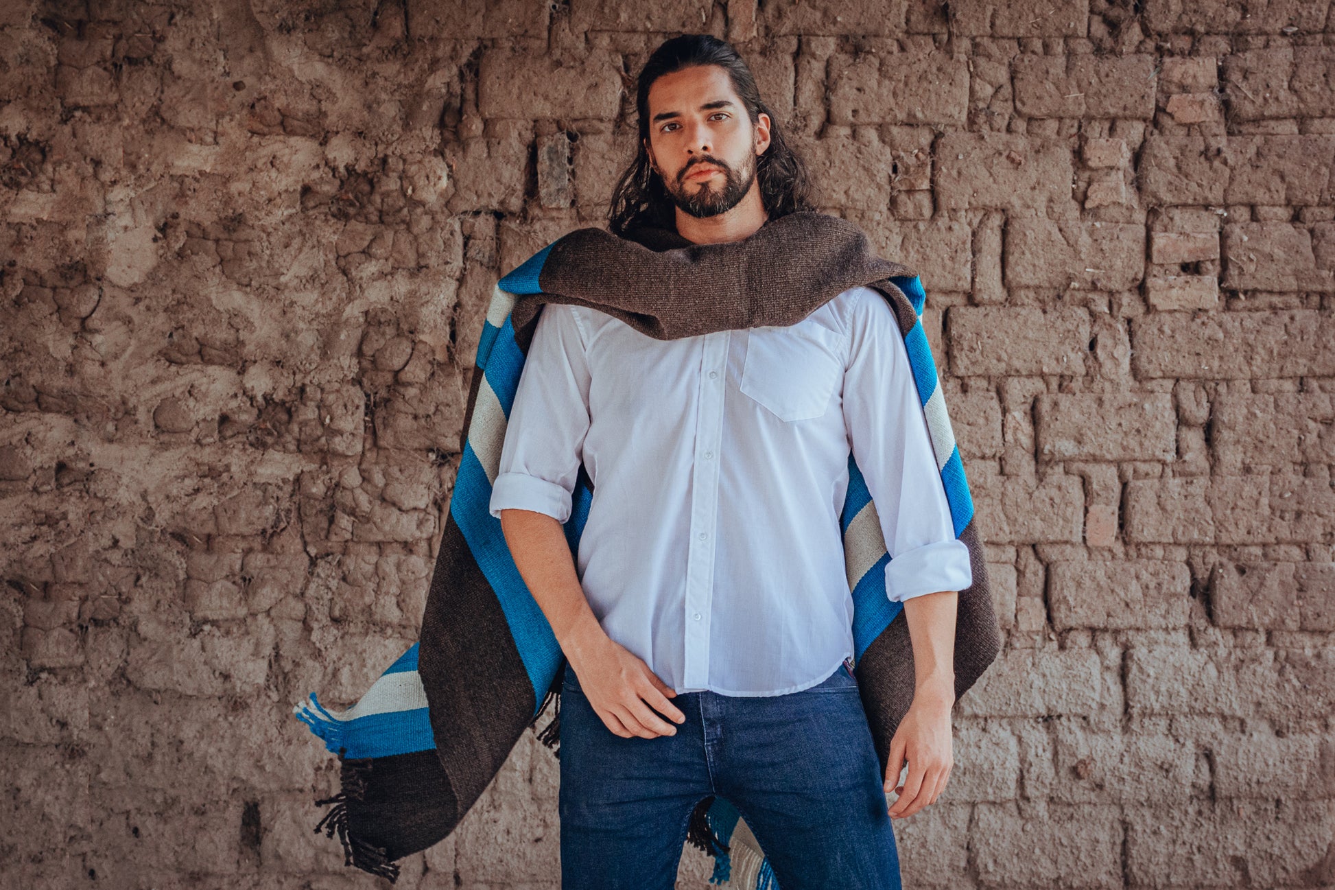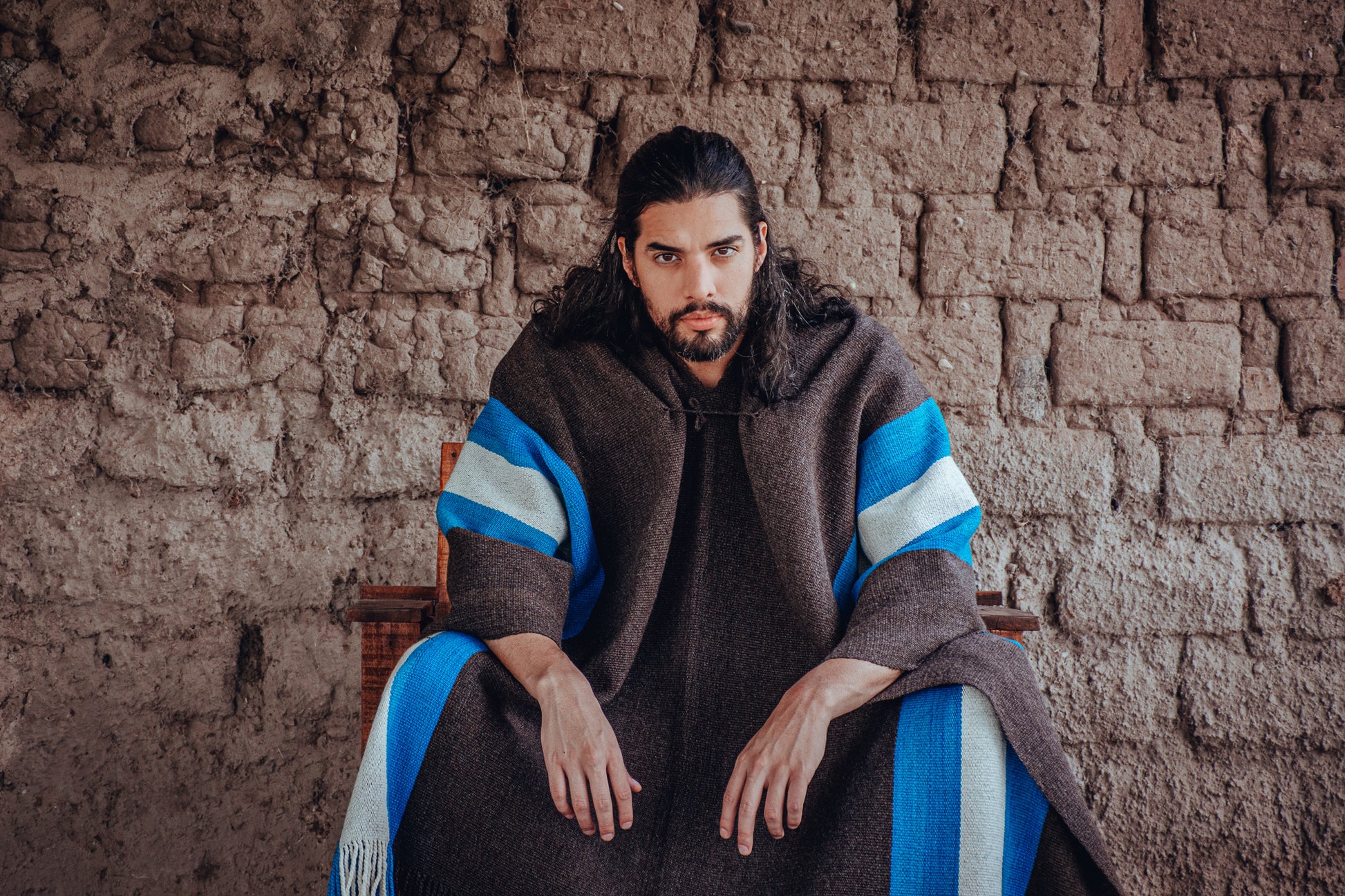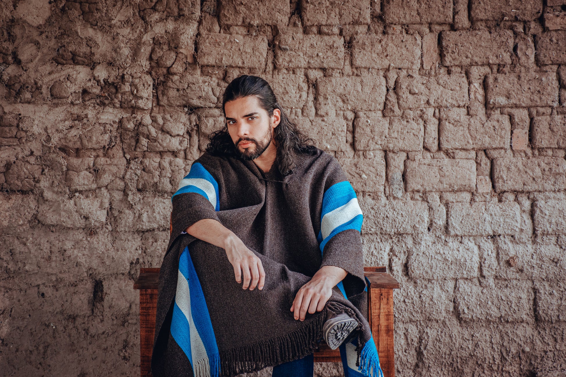 The poncho is a unique piece woven by hand with sheep wool threads on a Creole loom , with a high density of closed weft and light weight.
