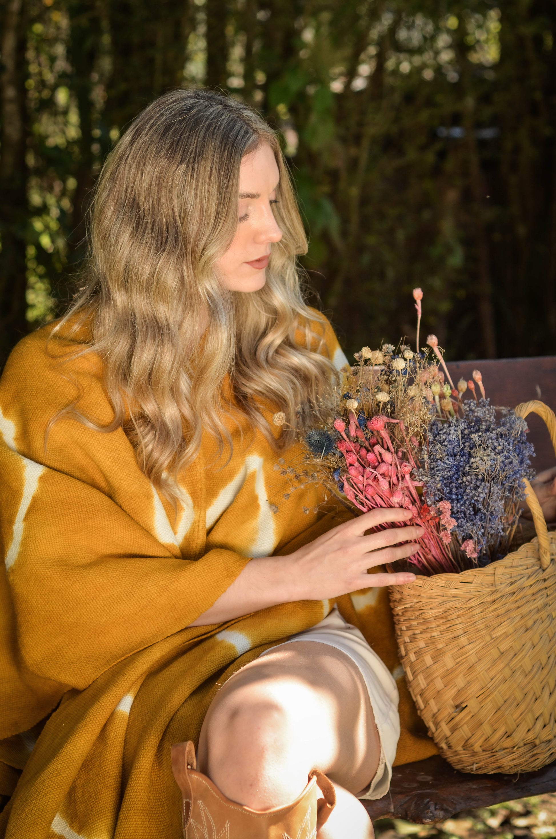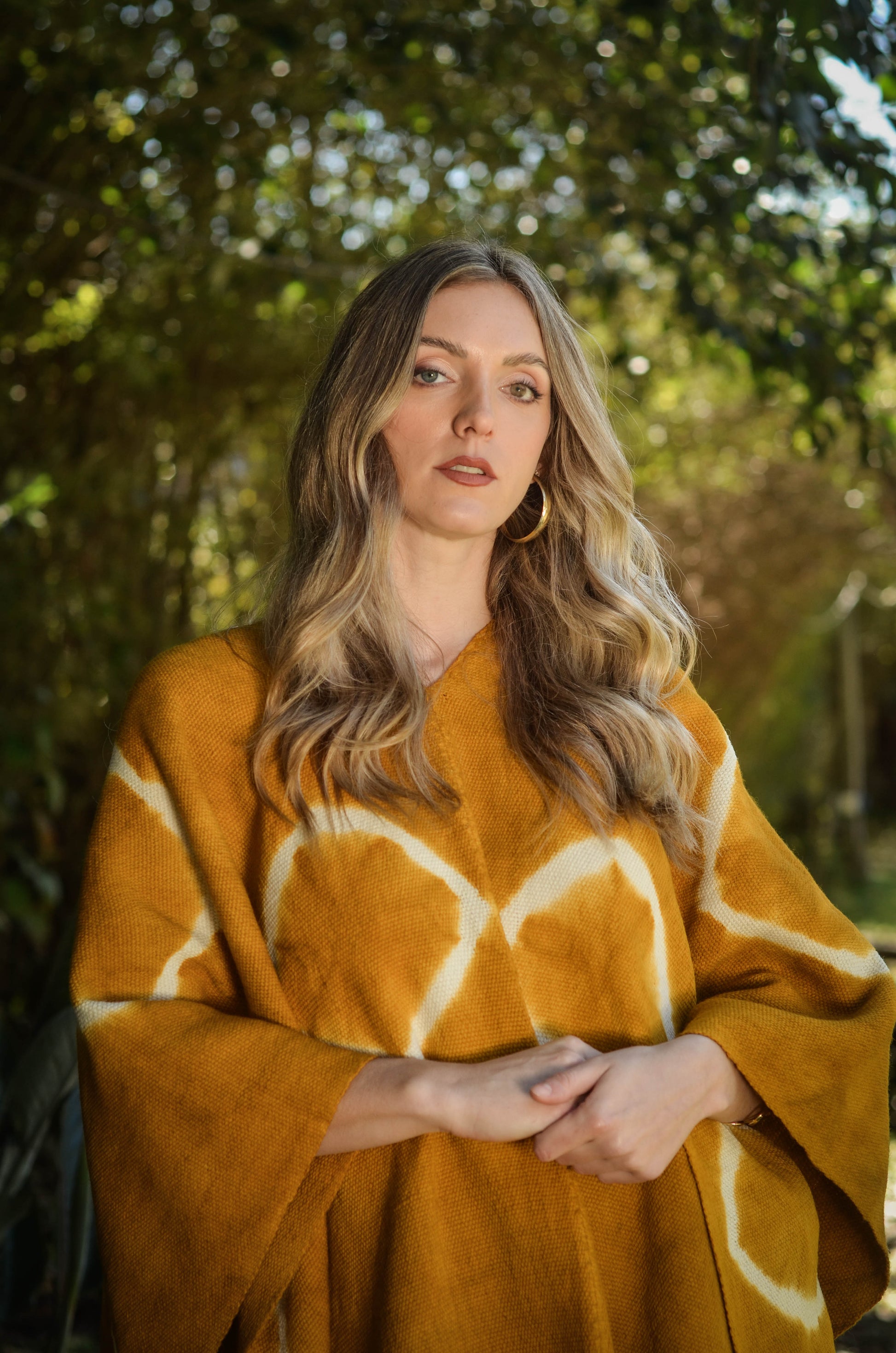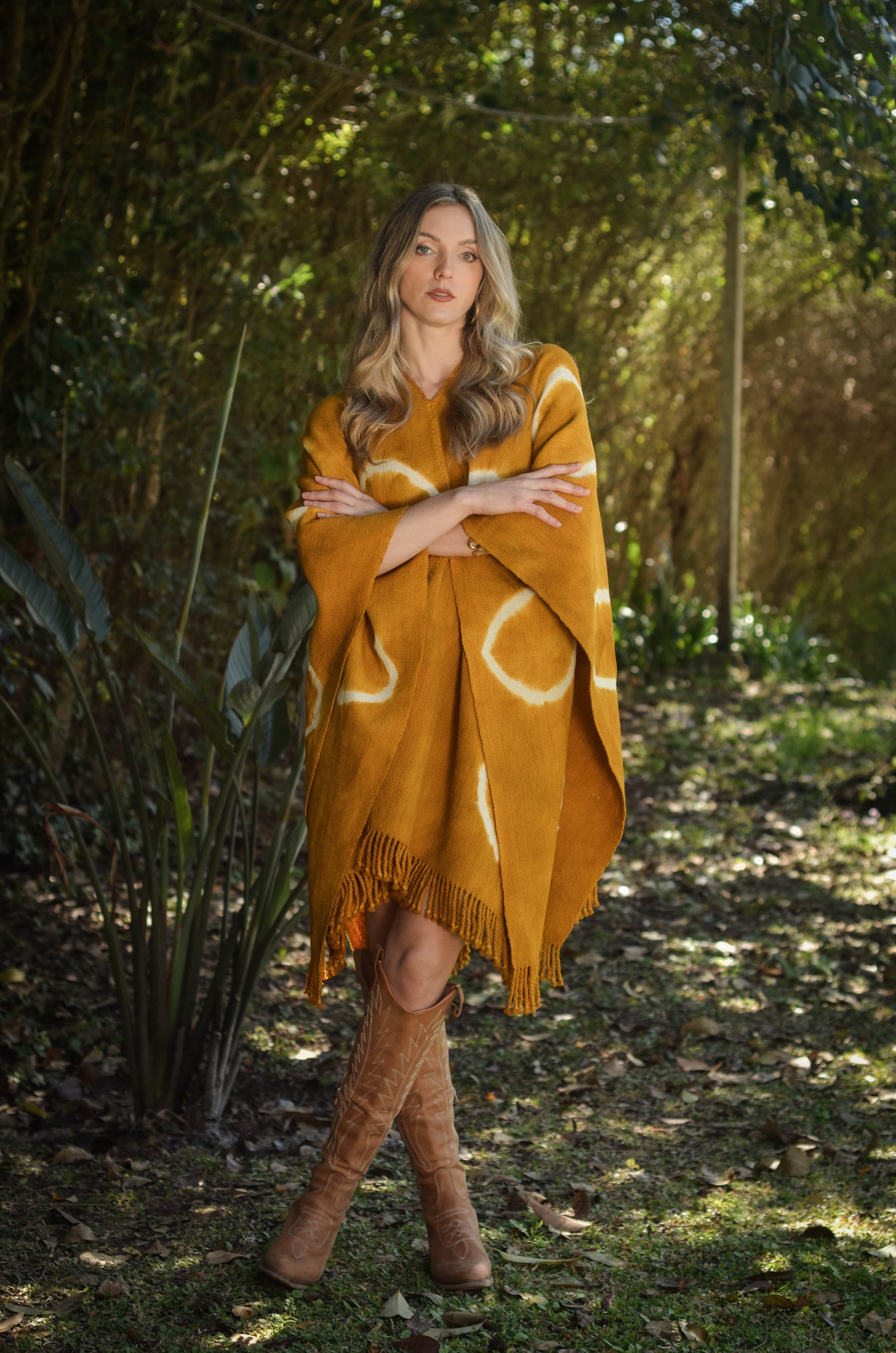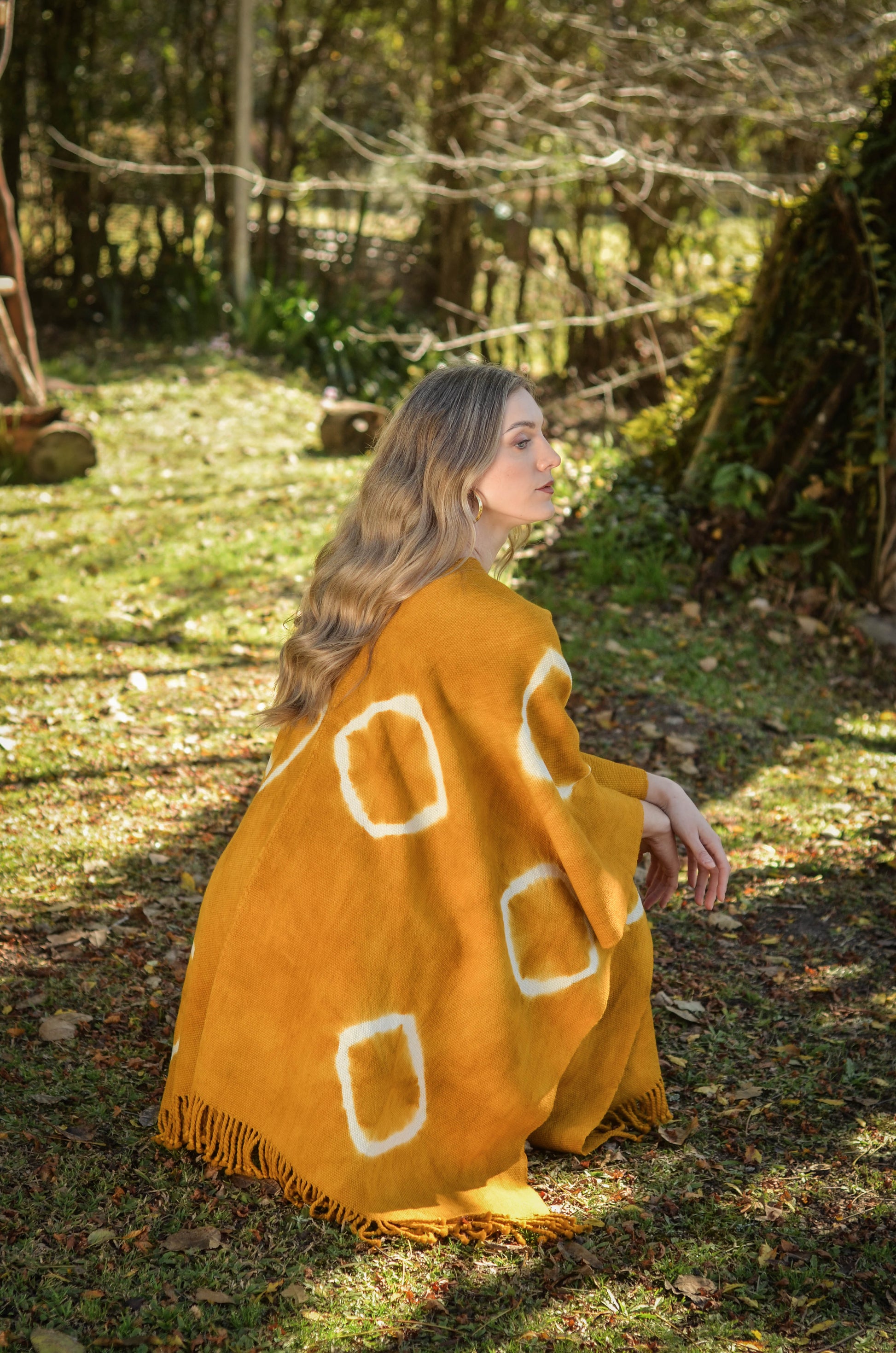 Es una pieza única tejida artesanalmente en dos paños en telar criollo.