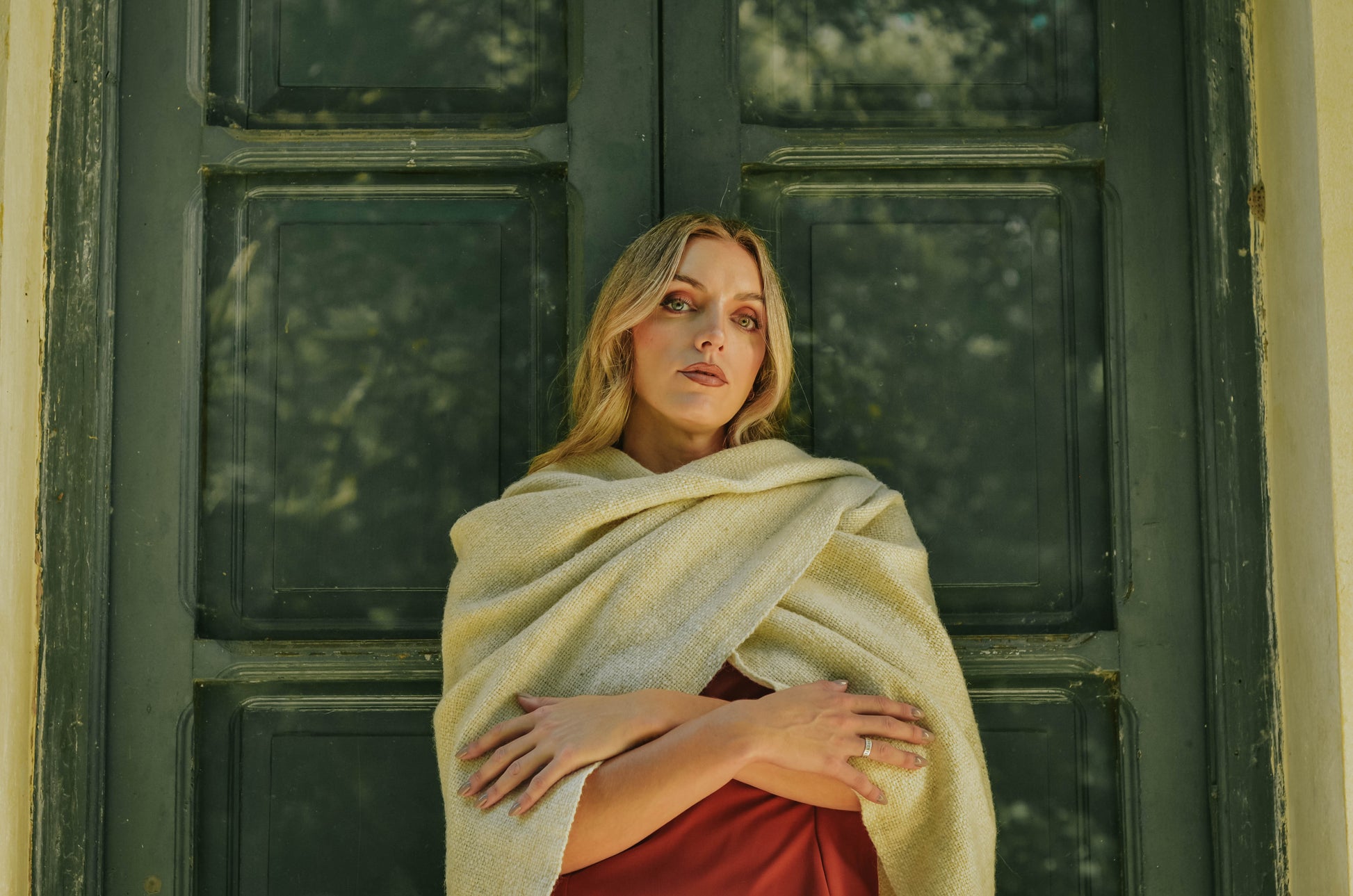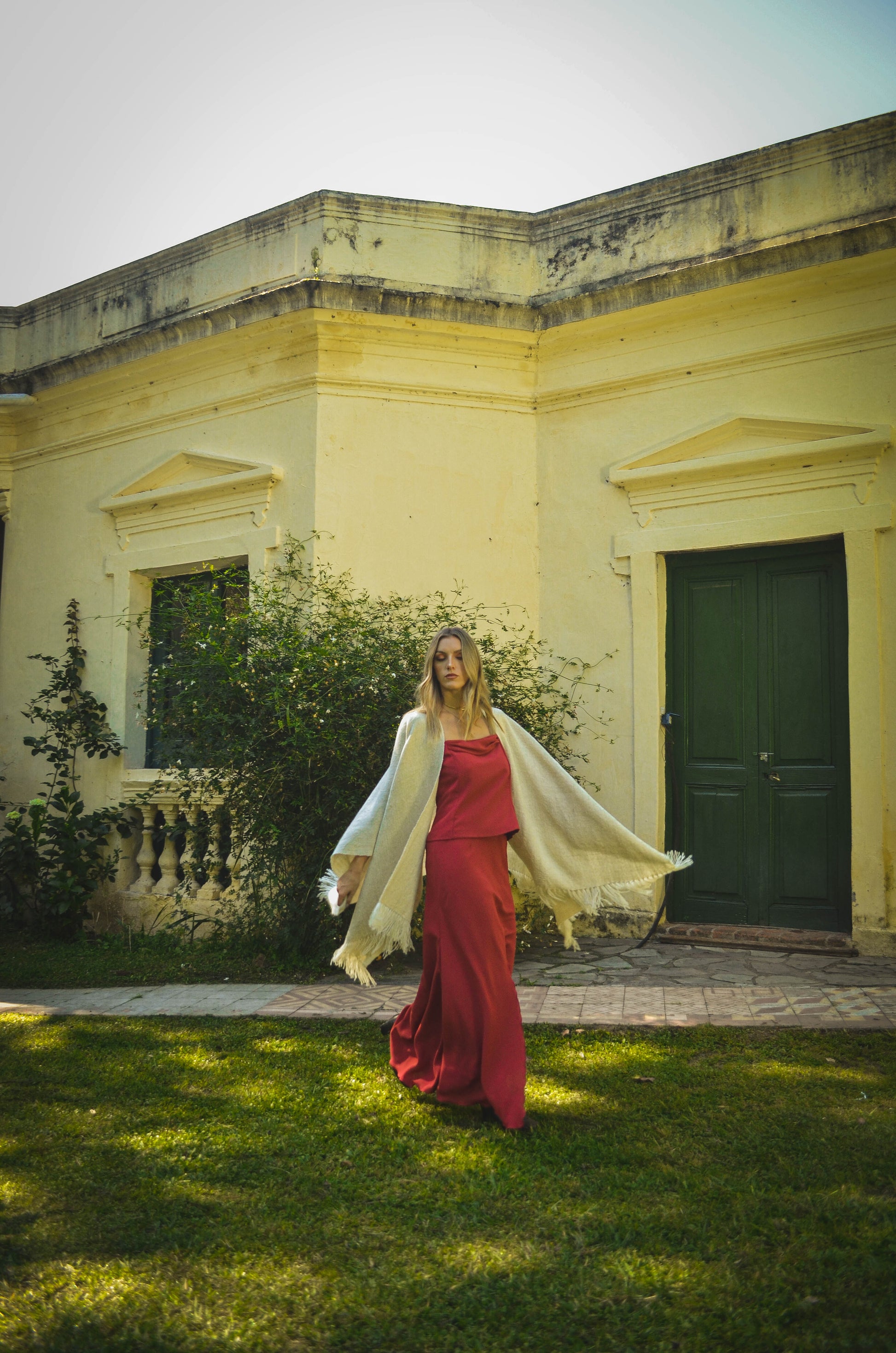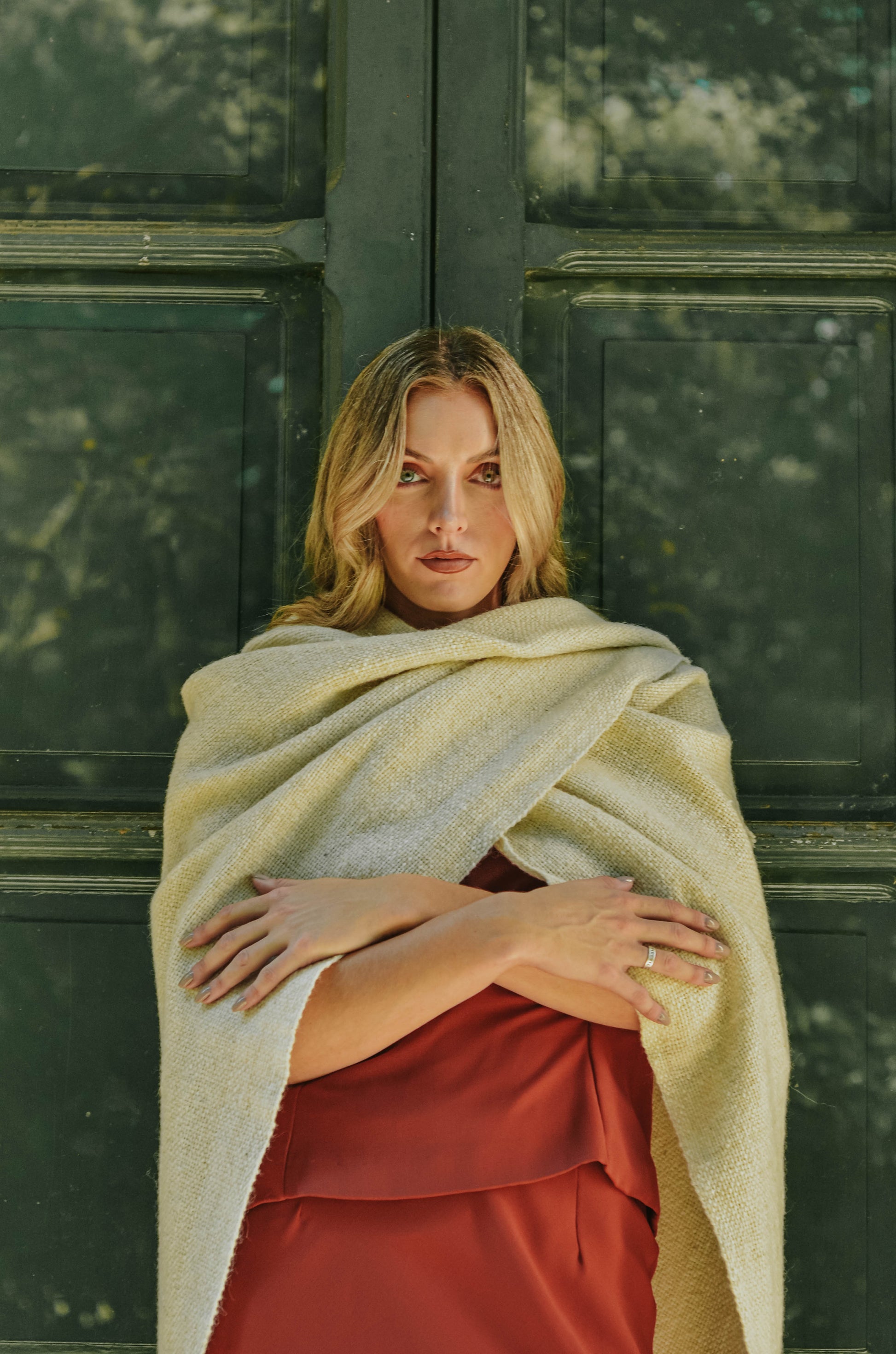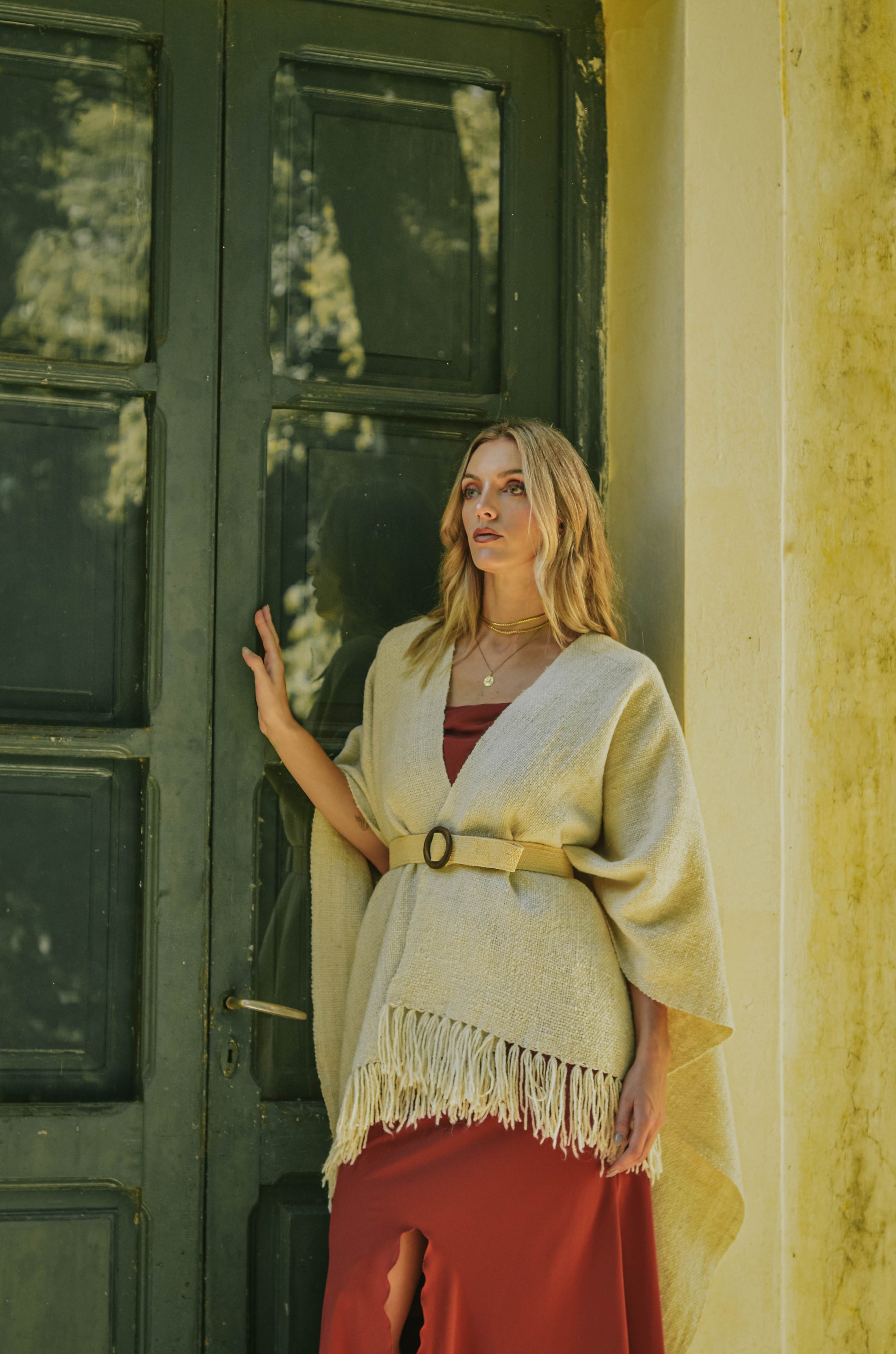 Ruana "Shuta" está hecha a mano en telar rústico con hilos de lana de oveja.