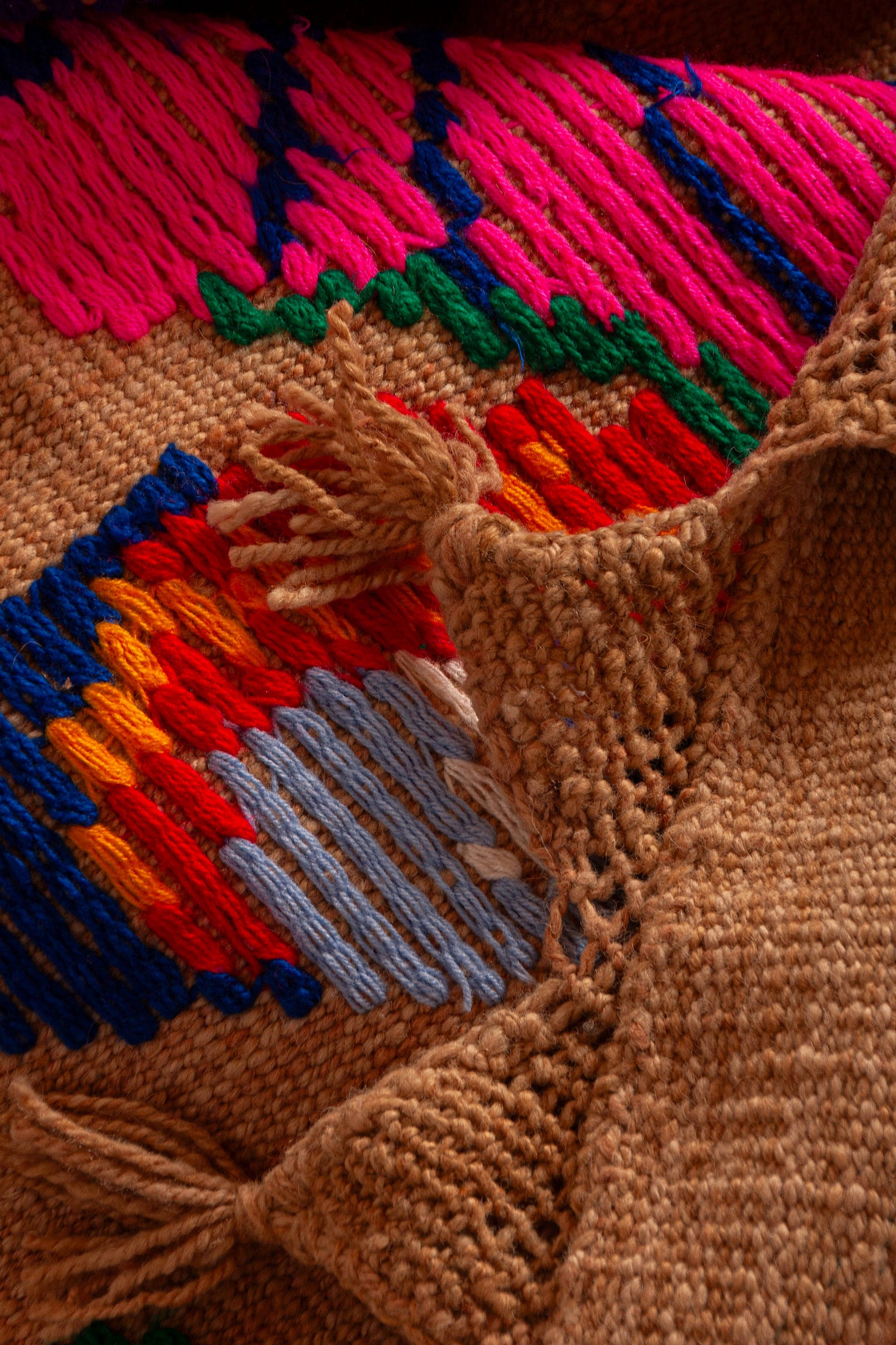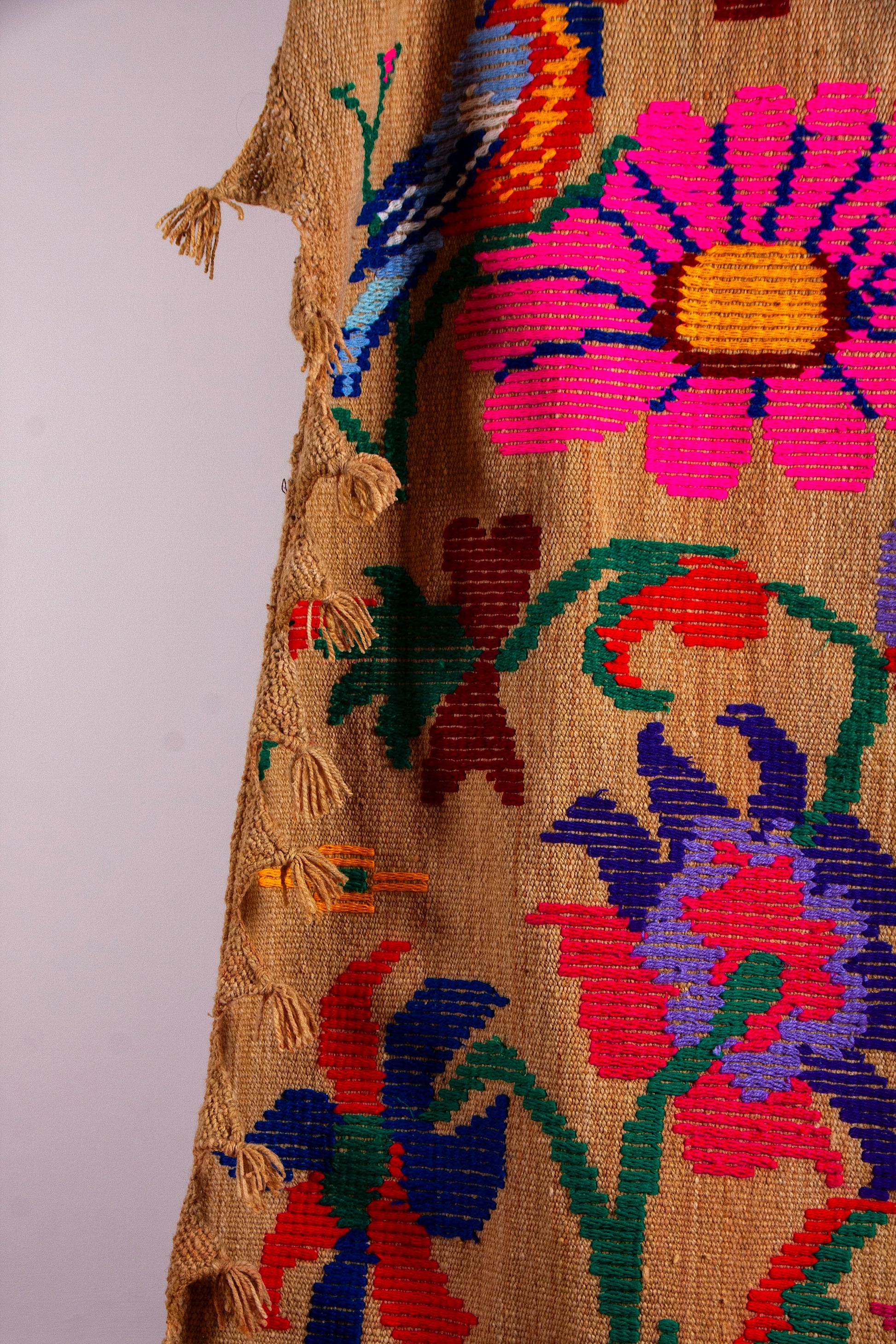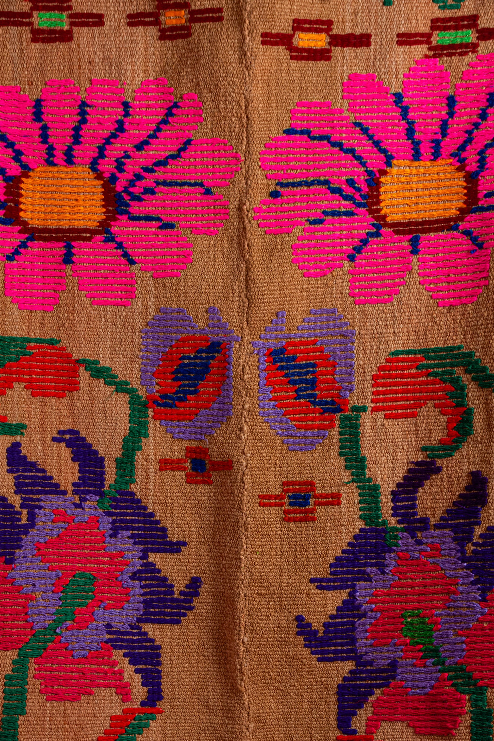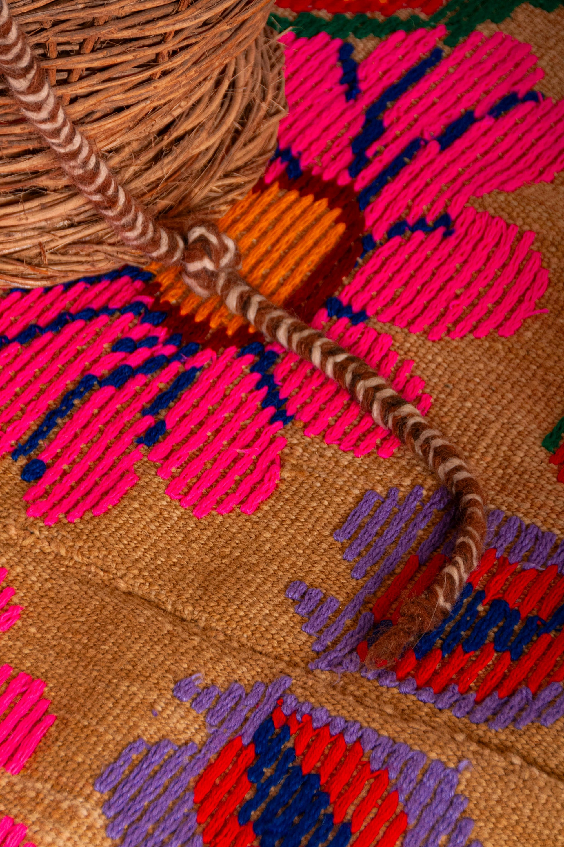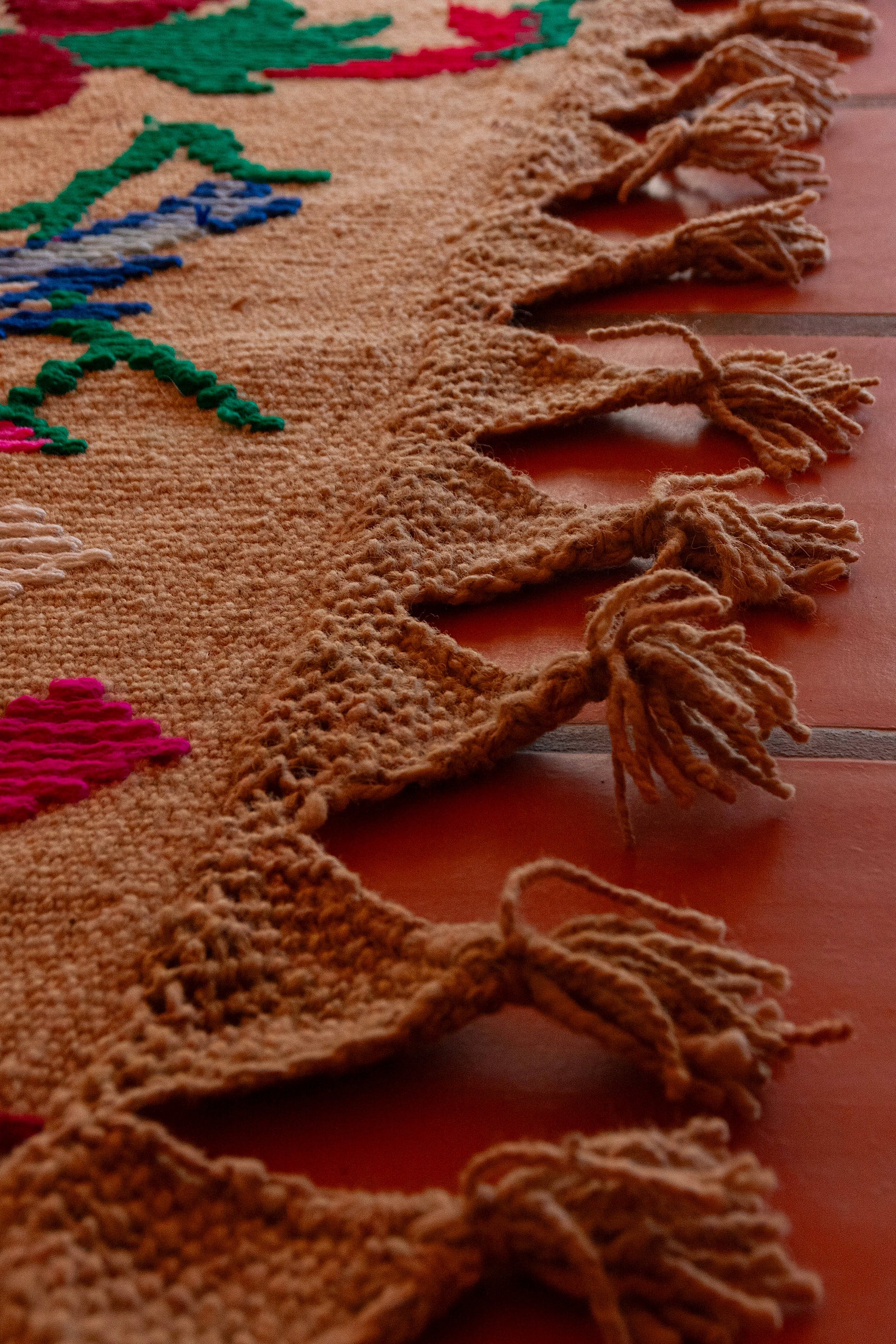 Alfombra "Jujuy" es de lana de oveja, hecha a mano en telar rústico y bordada artesanalmente.