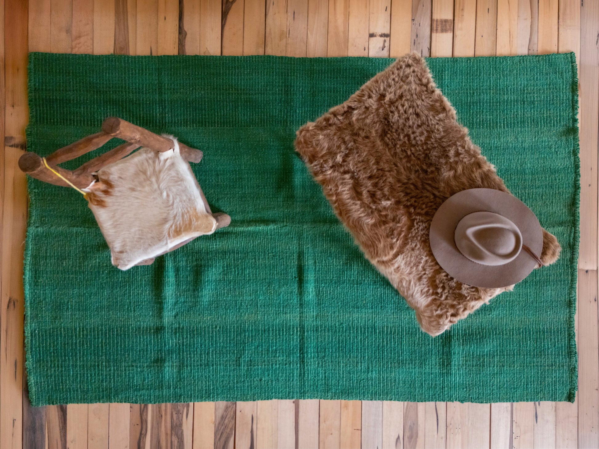 Alfombra "Cardón" es de lana de oveja, hecha a mano en telar rústico.