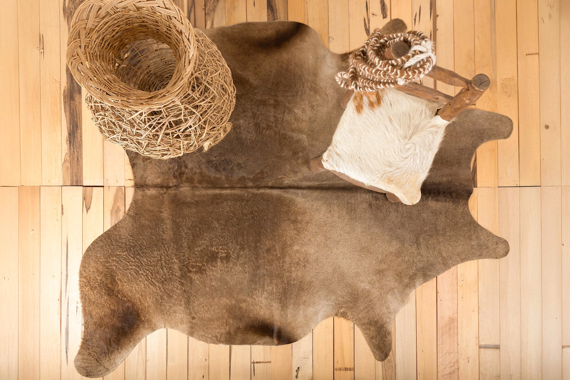 Alfombra "Castaña" es de cuero natural y trabajada desde una sola pieza