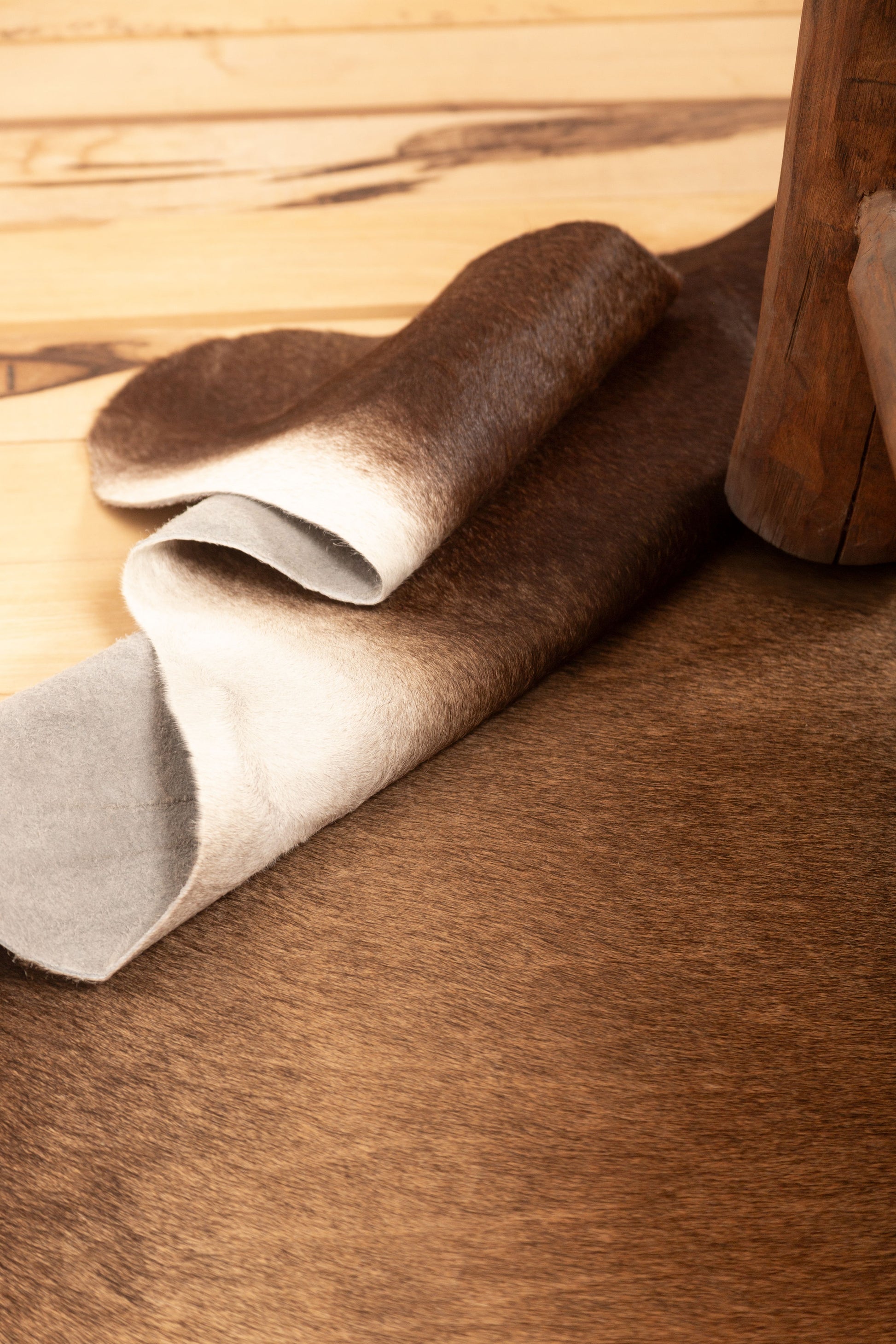 Don Jesús, maestro artesano del equipo Uayno, crea las alfombras de cuero en un proceso artesanal. Recorre monte adentro estancias y fincas en busca de piezas de ganado que deja la hacienda.