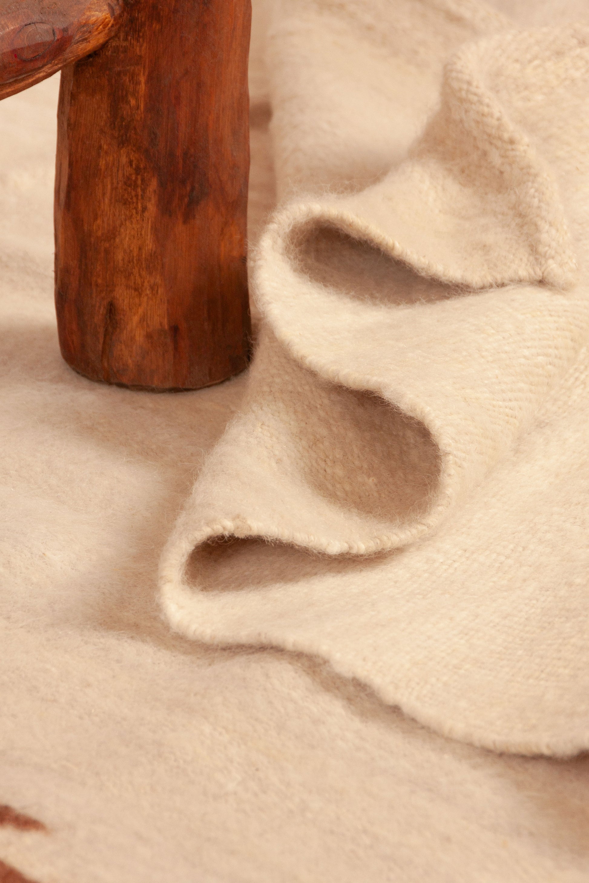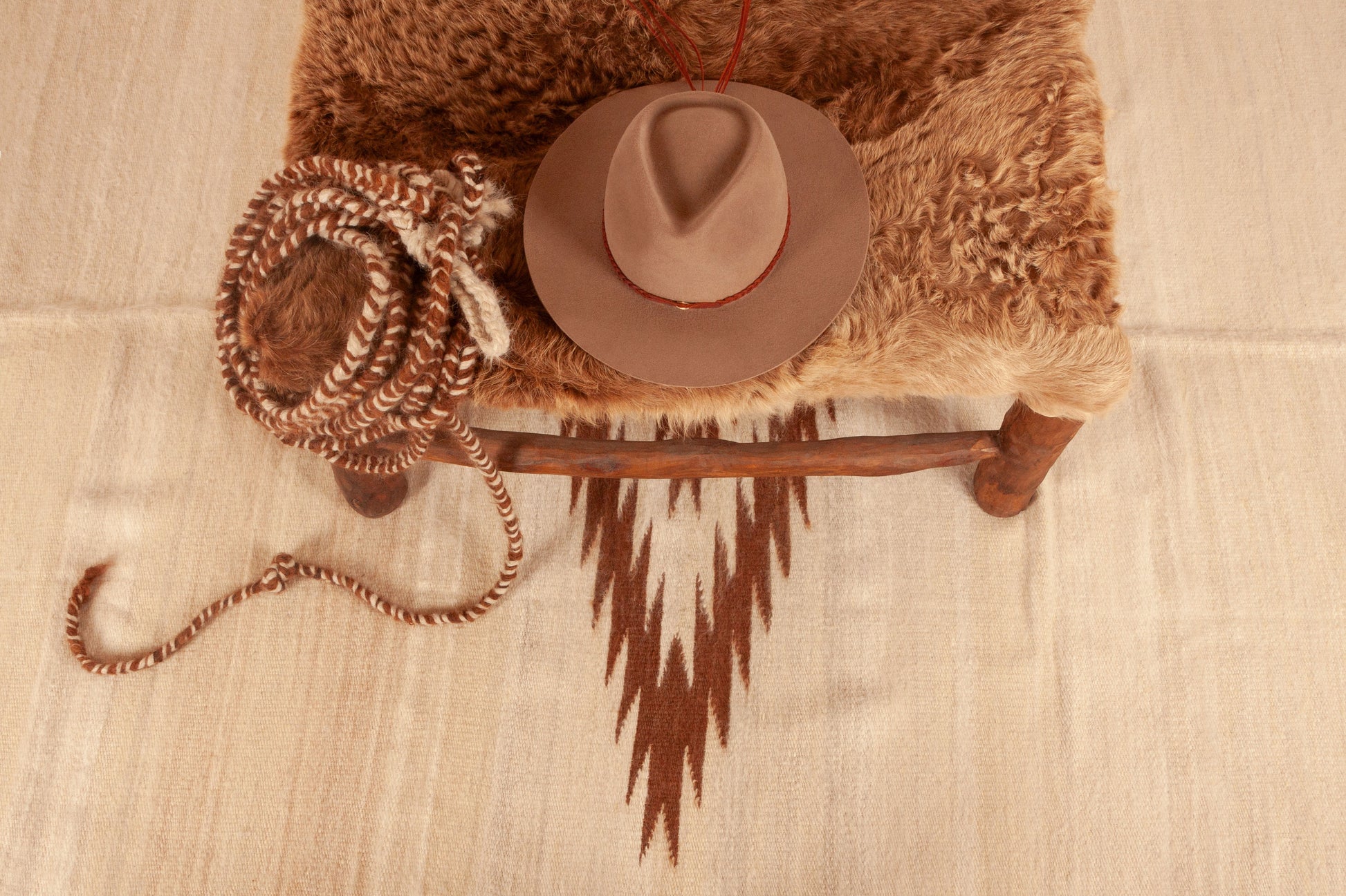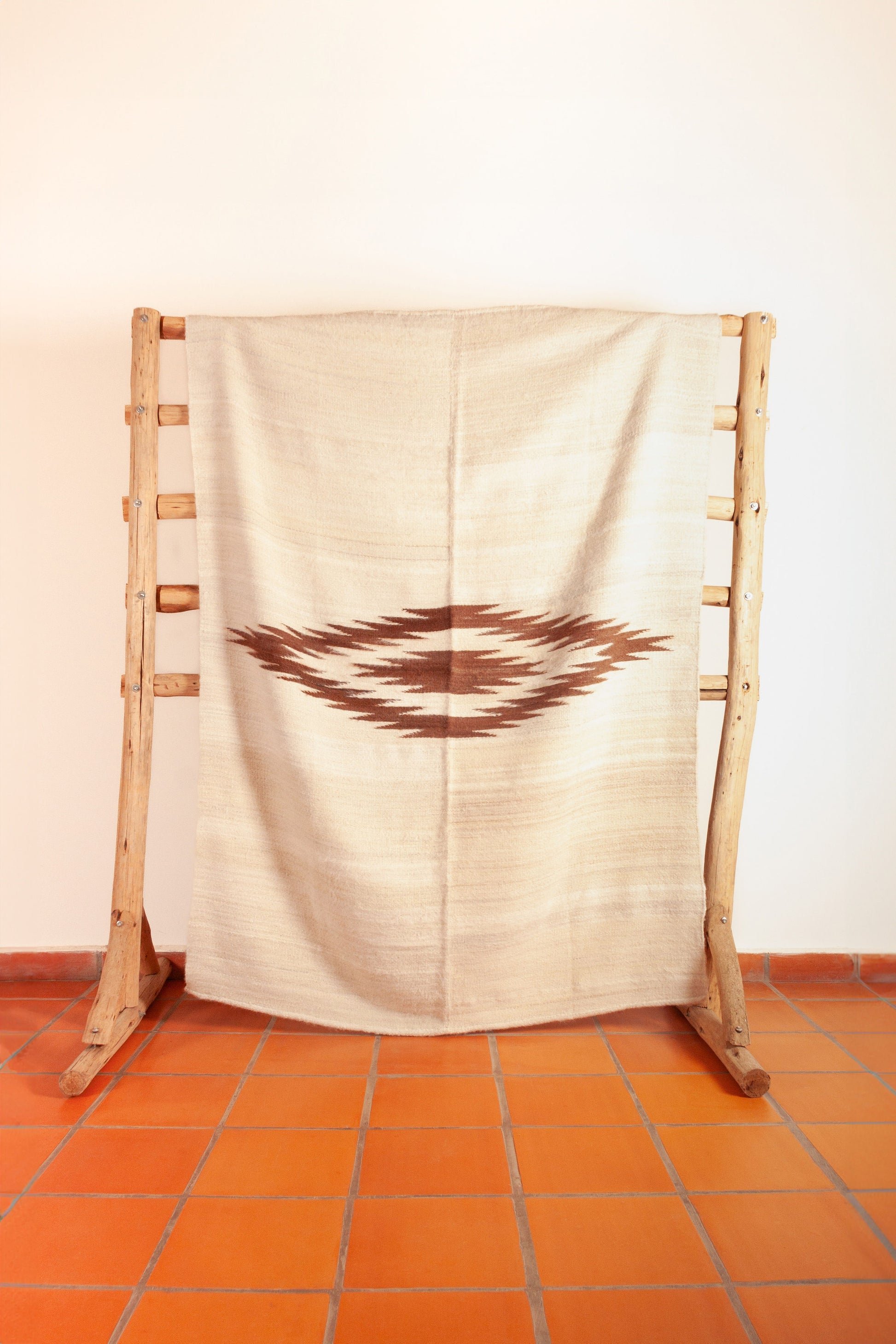 Alfombra "Kueca" es de lana de llama, hecha a mano en telar rústico.