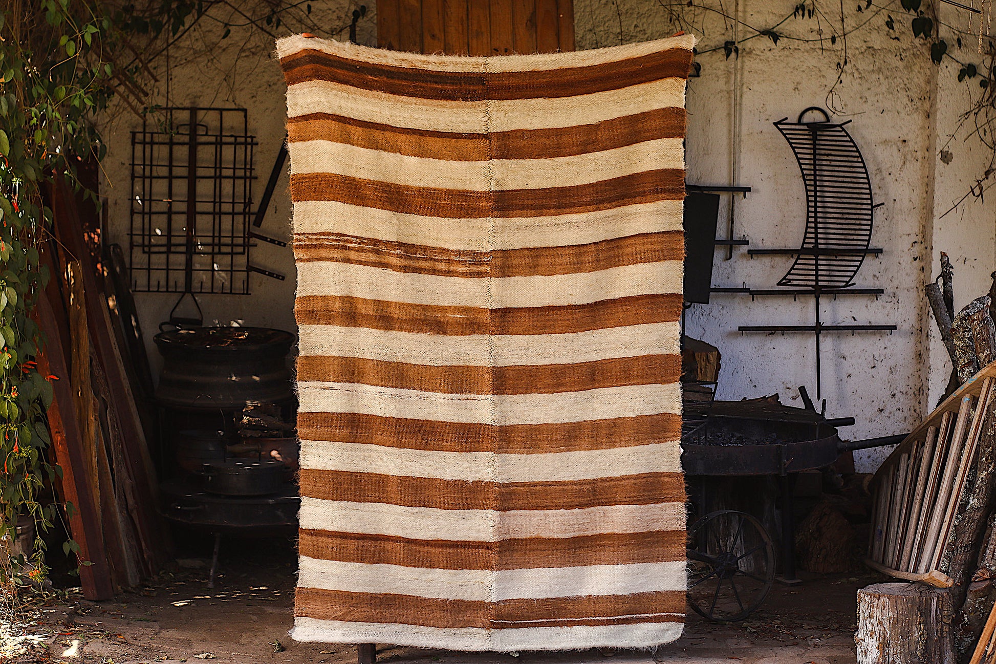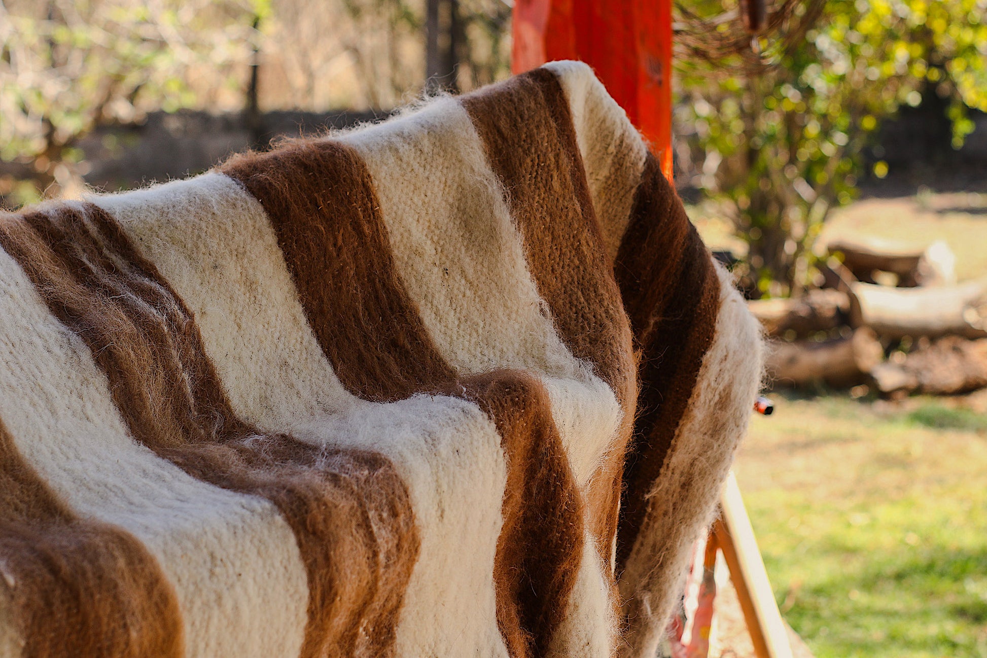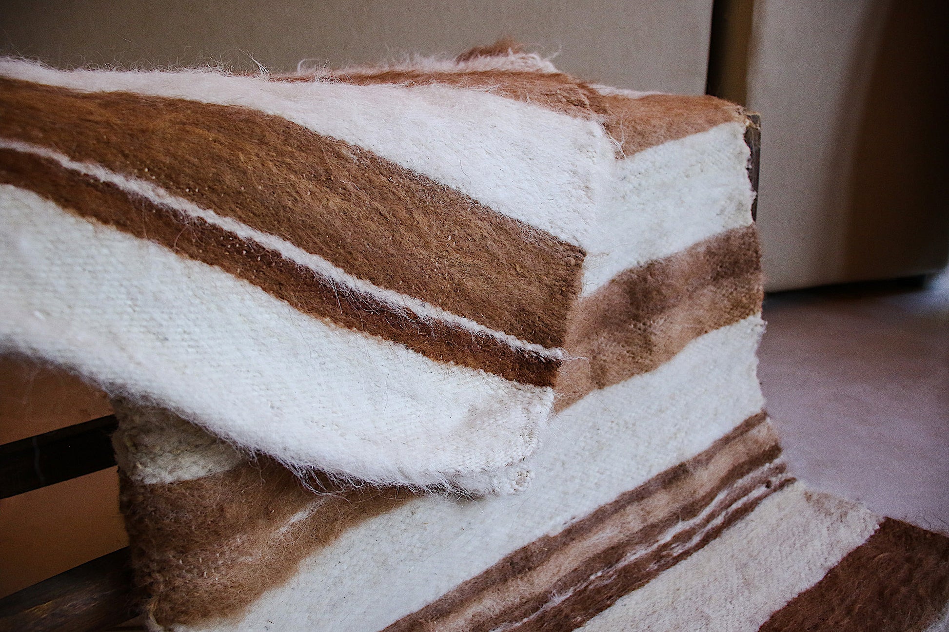 Alfombra de lana de llama, hecha a mano en telar rústico.