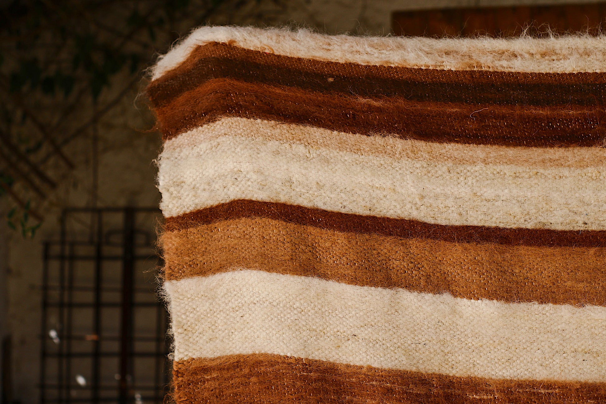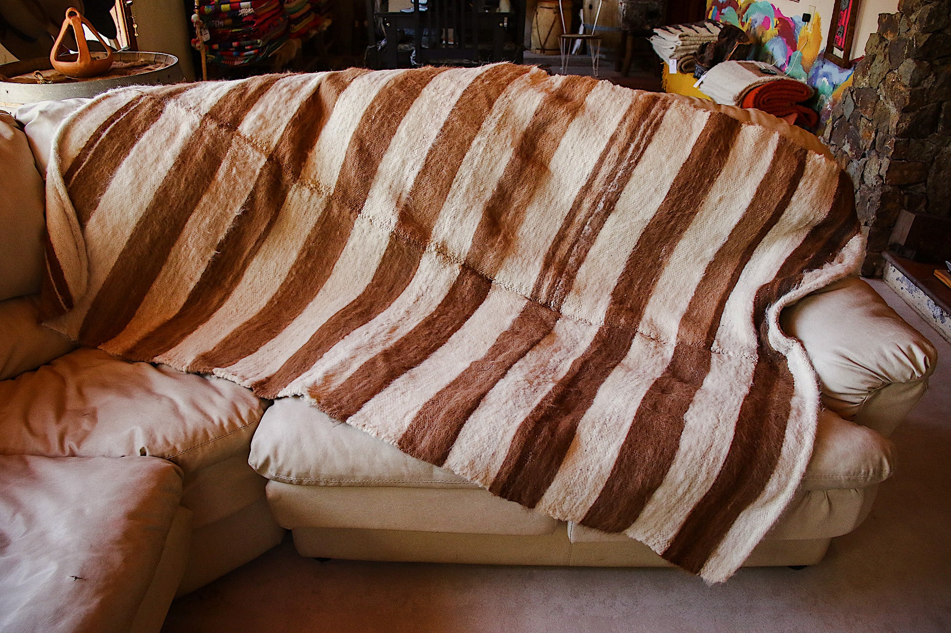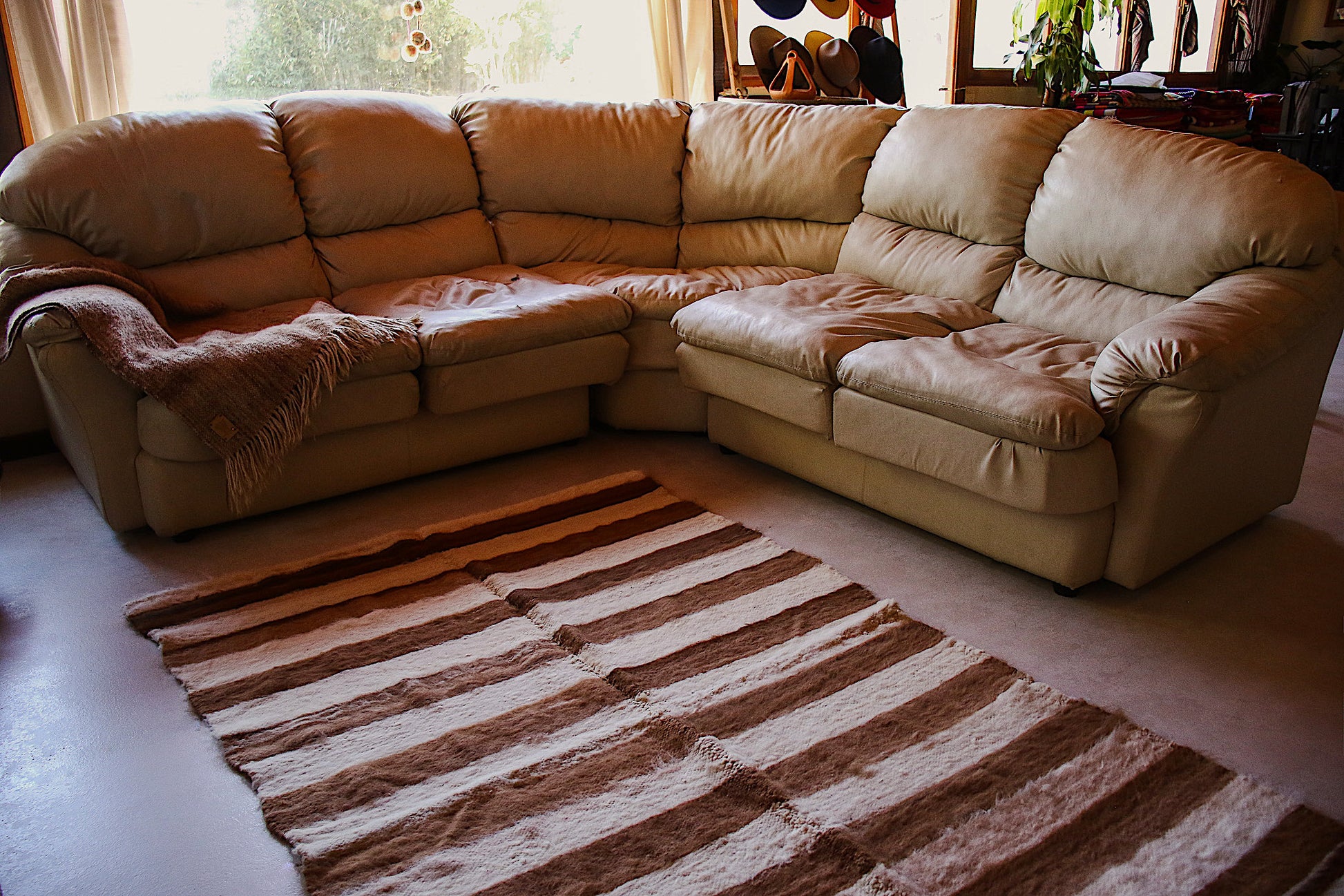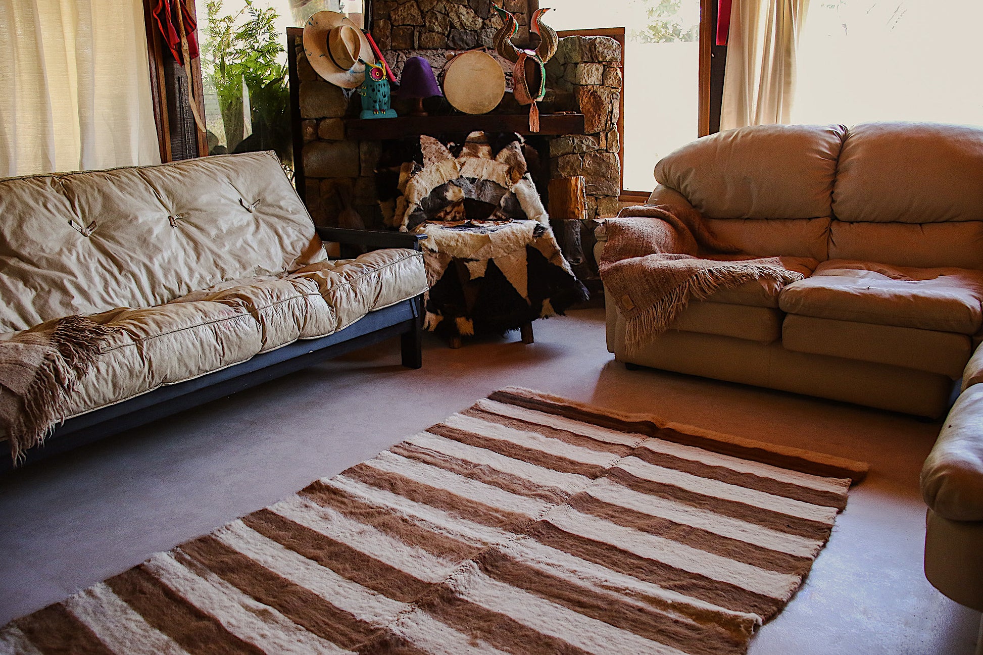 Alfombra de lana de llama, hecha a mano en telar rústico.