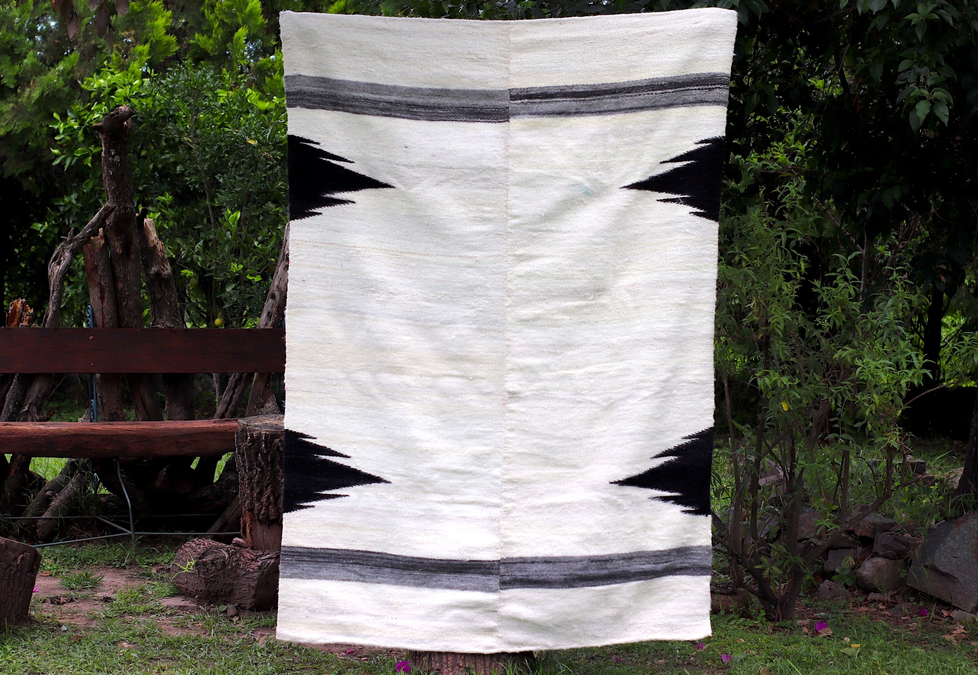 Alfombra de alta densidad de lana de Oveja, hecha a mano en telar rústico.