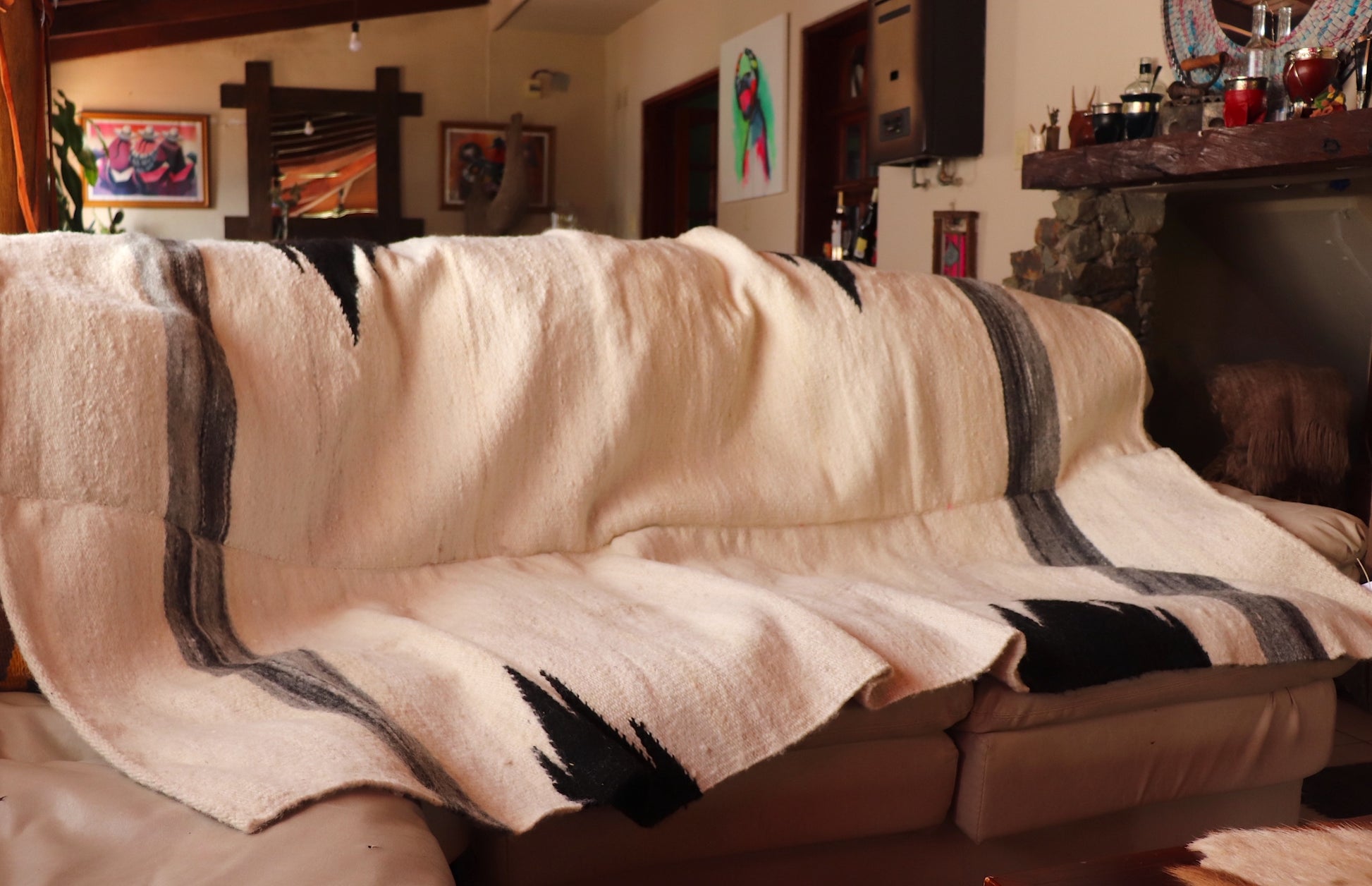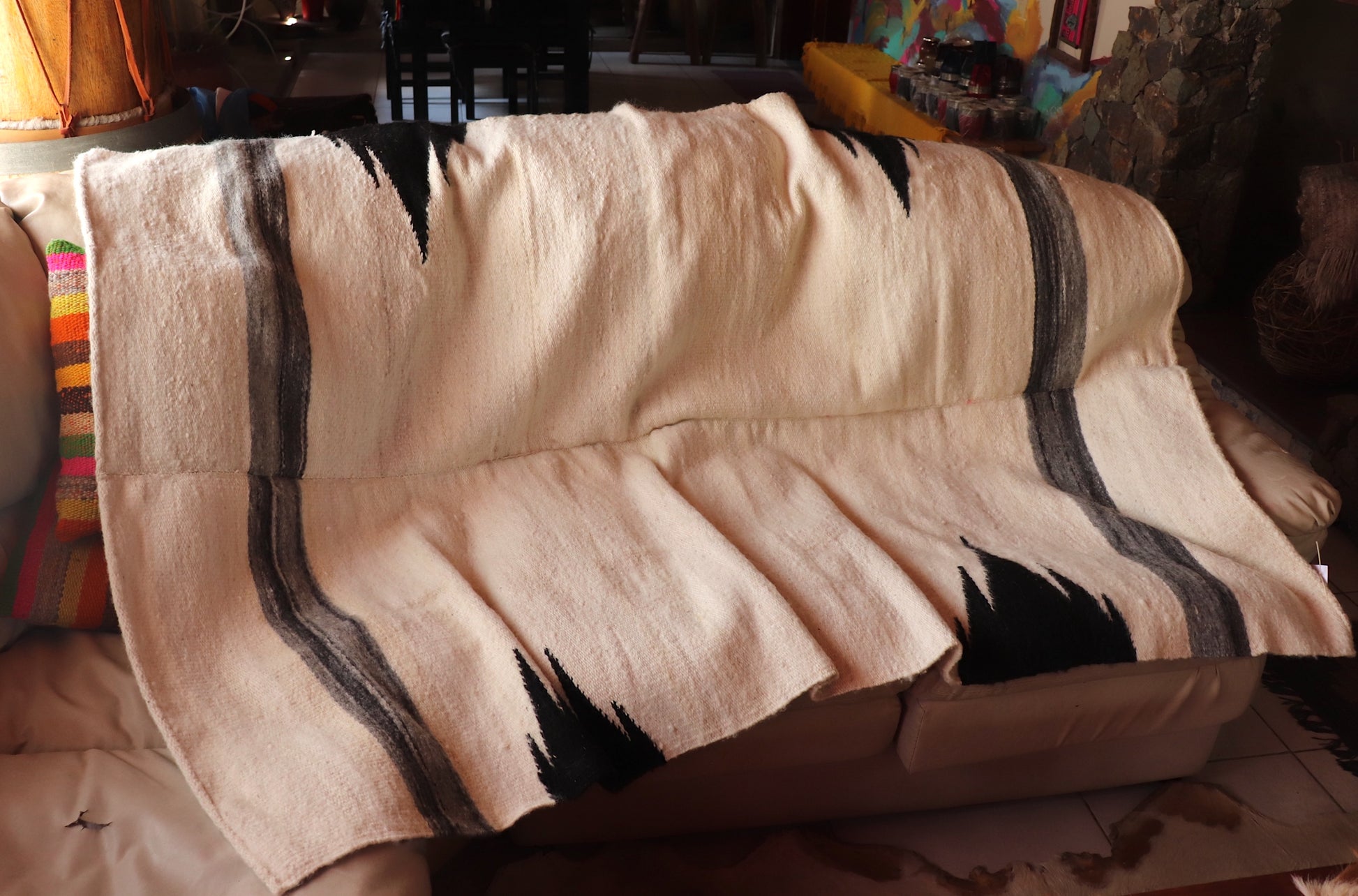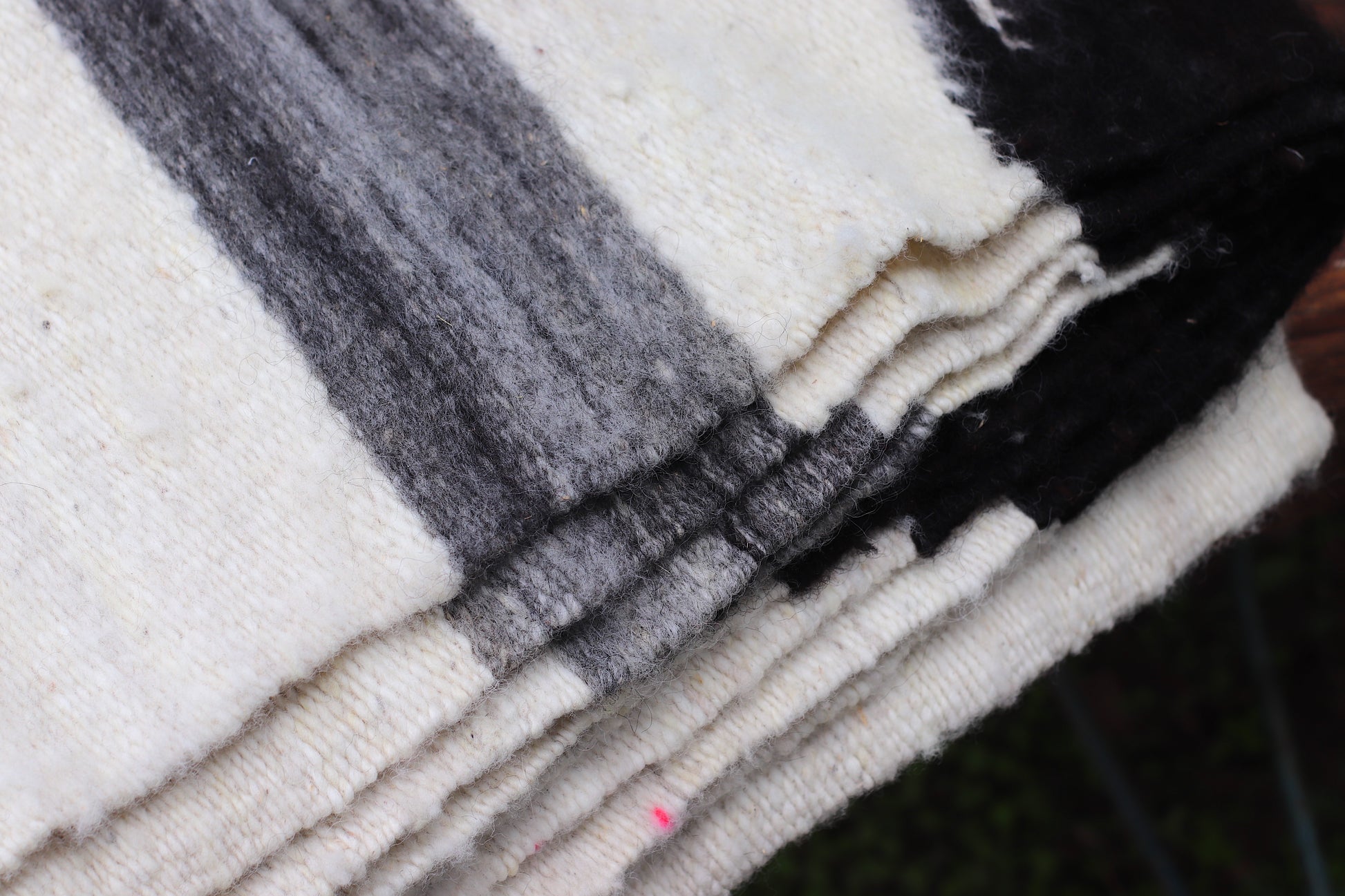 Los COLORES blanco y negro son naturales de la fibra de oveja. Es 100% artesanal.