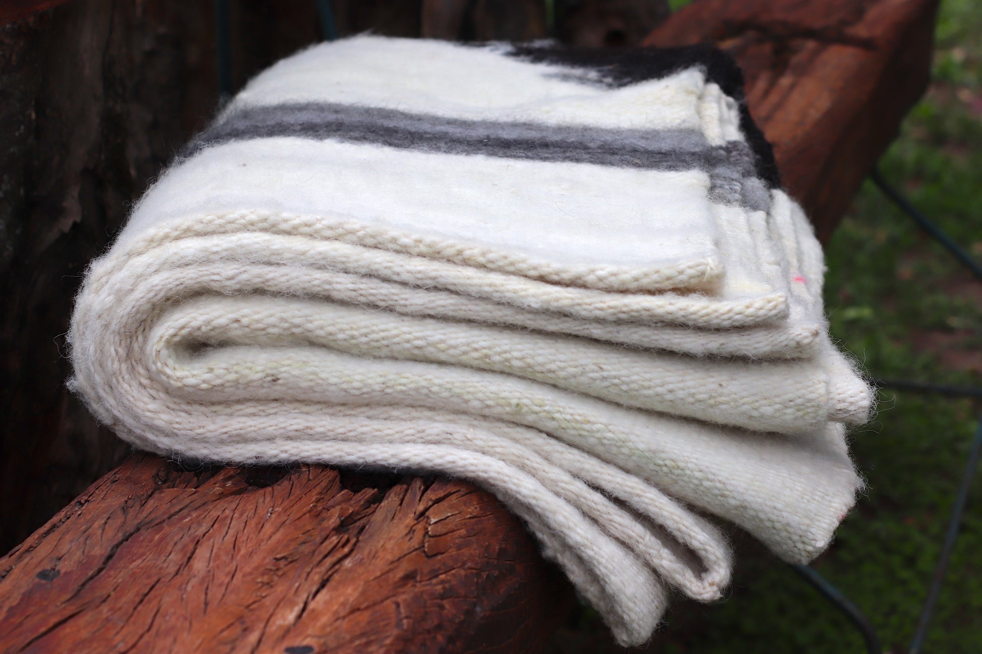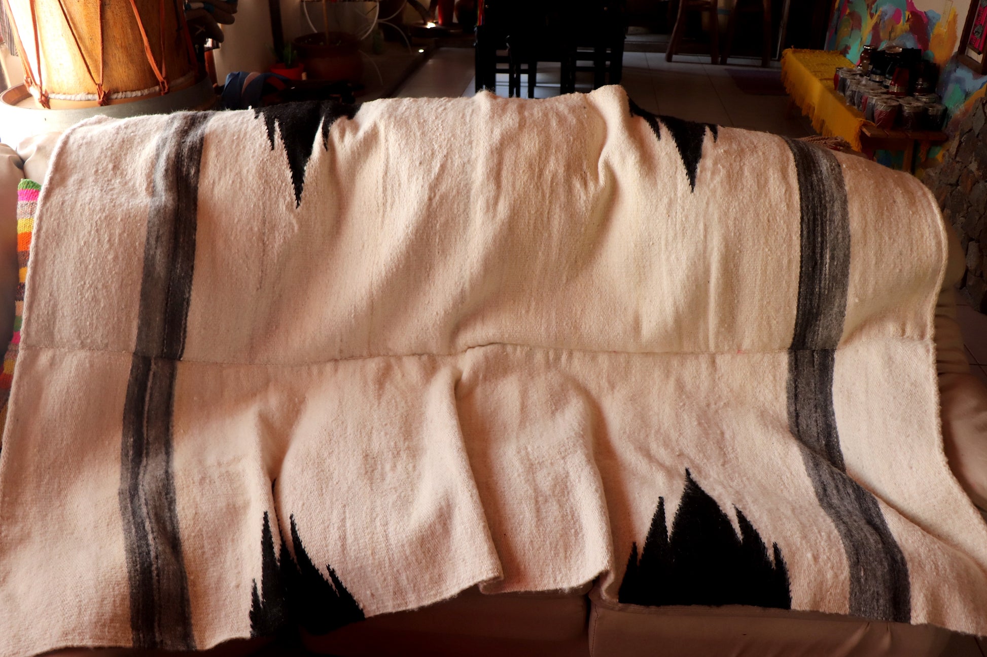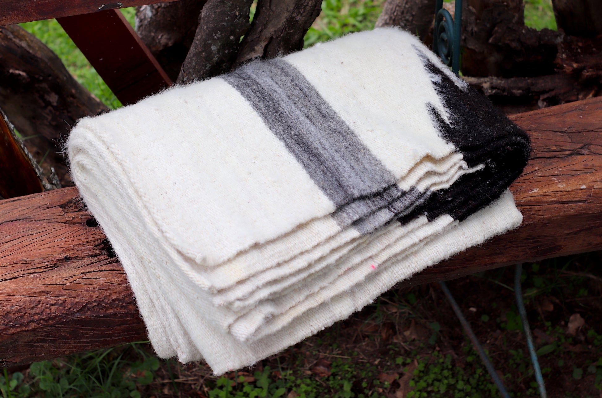 Los COLORES blanco y negro son naturales de la fibra de oveja. Es 100% artesanal.