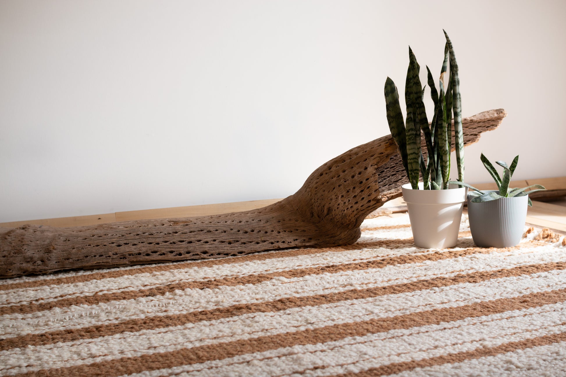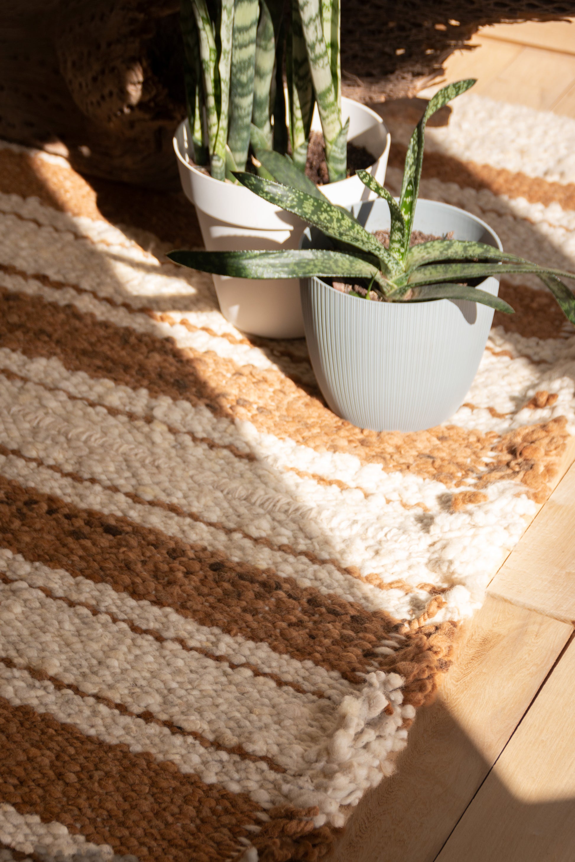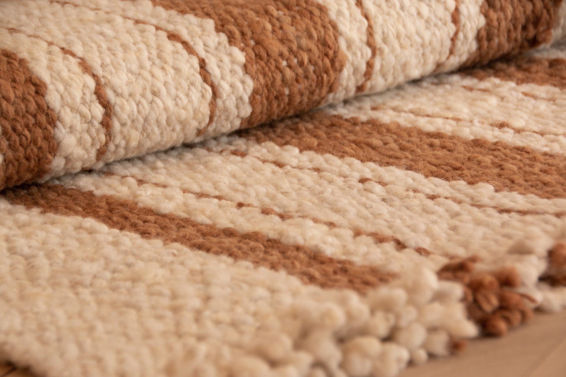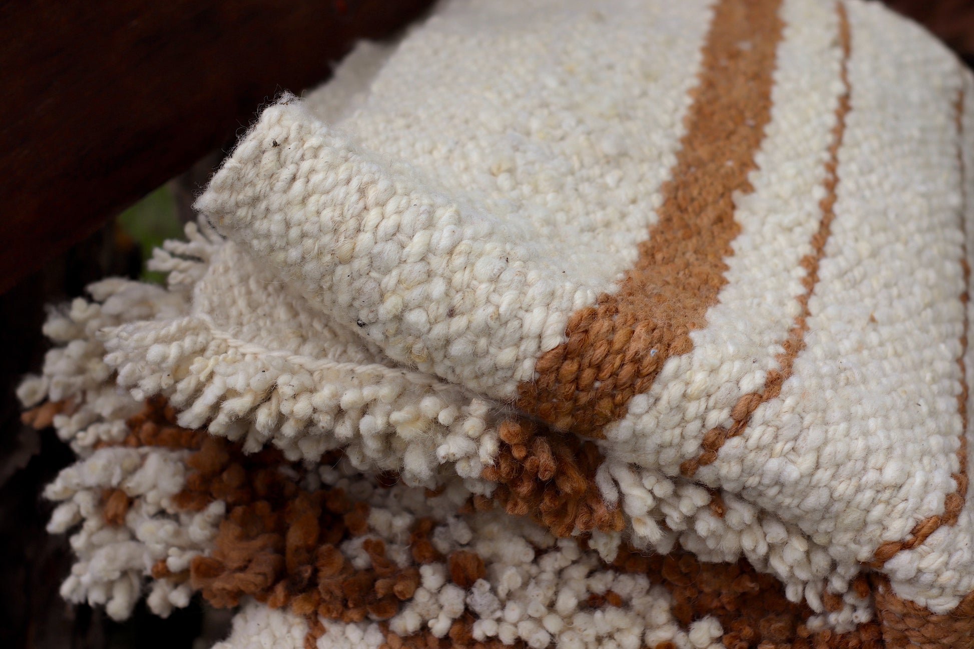 Alfombra "Ñandú" es de lana de oveja, hecha a mano en telar rústico.