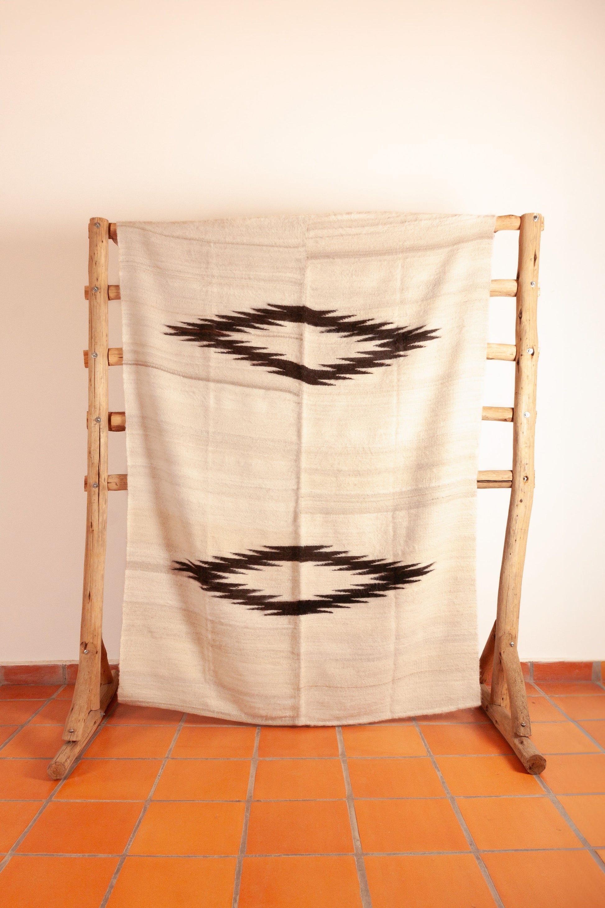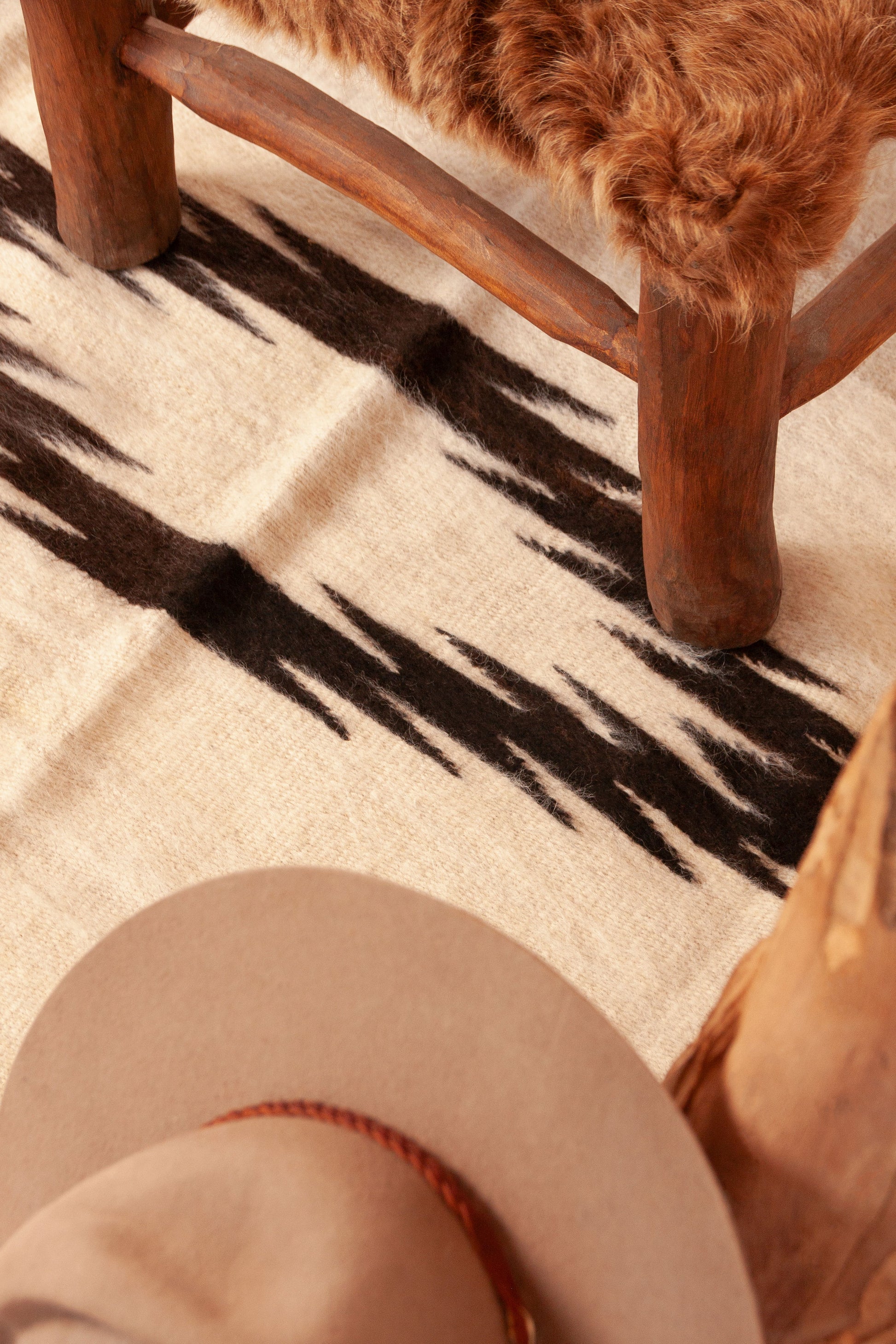 Alfombra "Paykú" es de lana de llama, hecha a mano en telar rústico.
