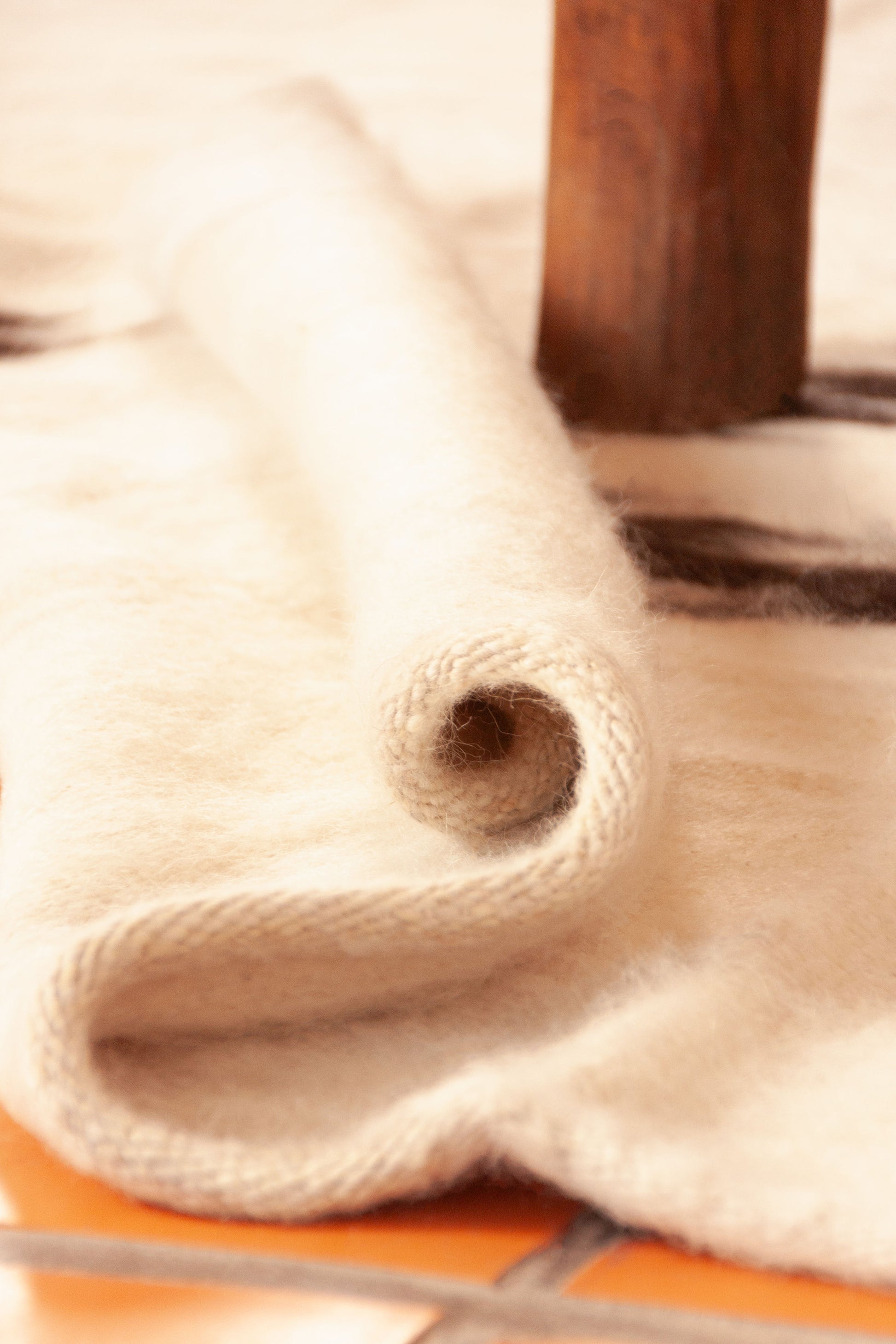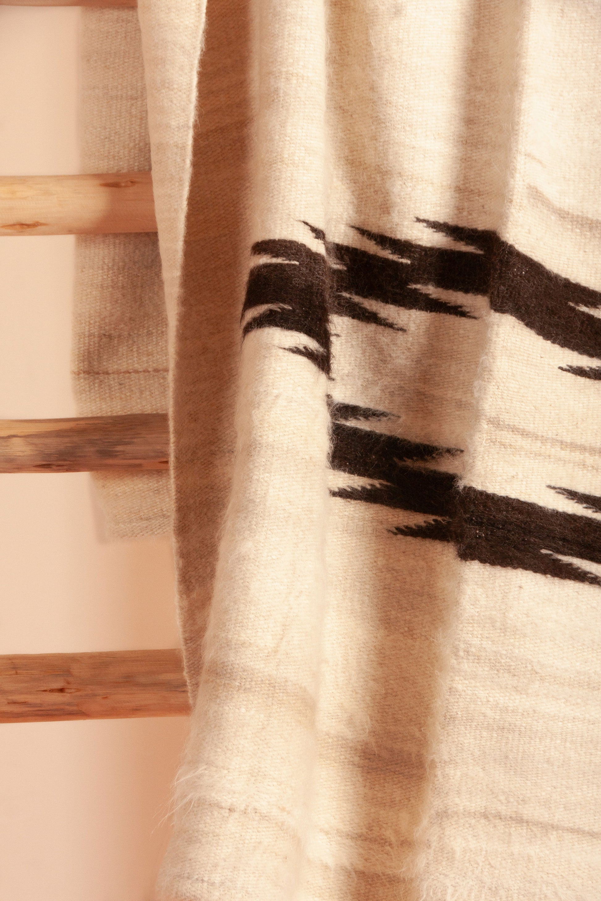 El color Marfil y Negro son naturales de la fibra de llama. Es 100% artesanal.