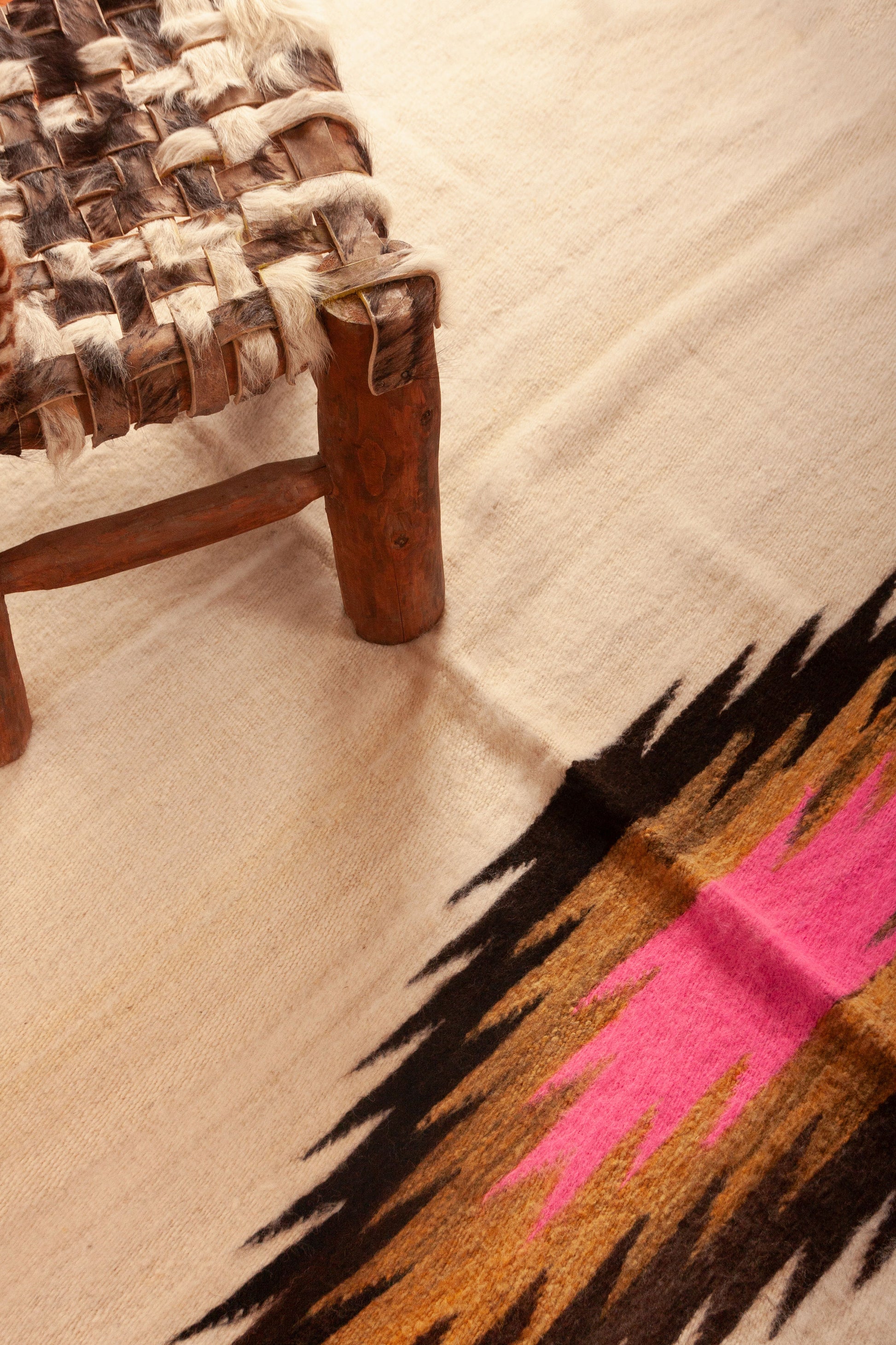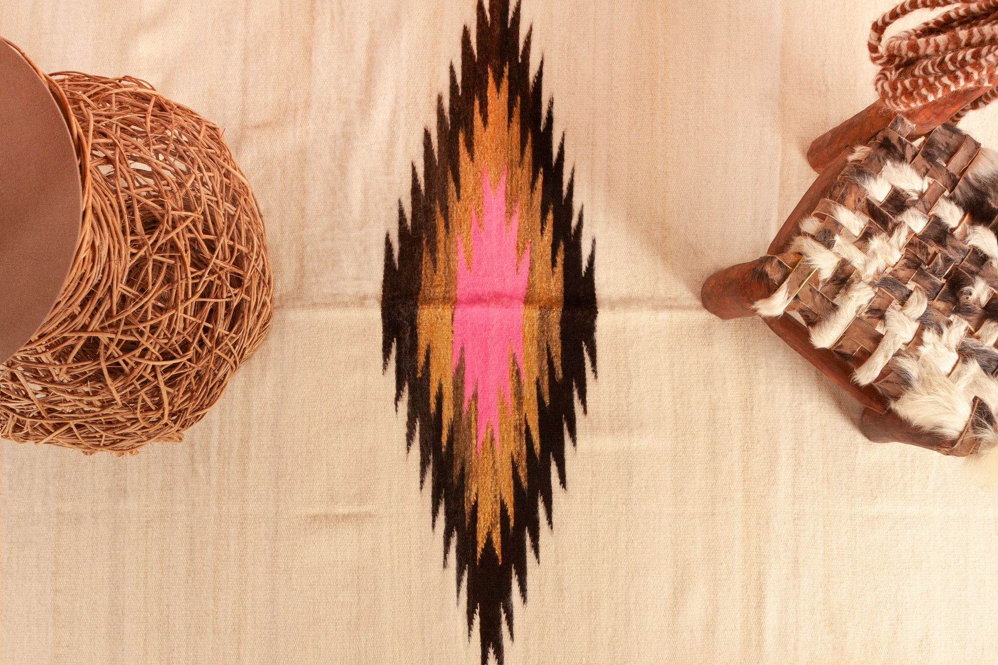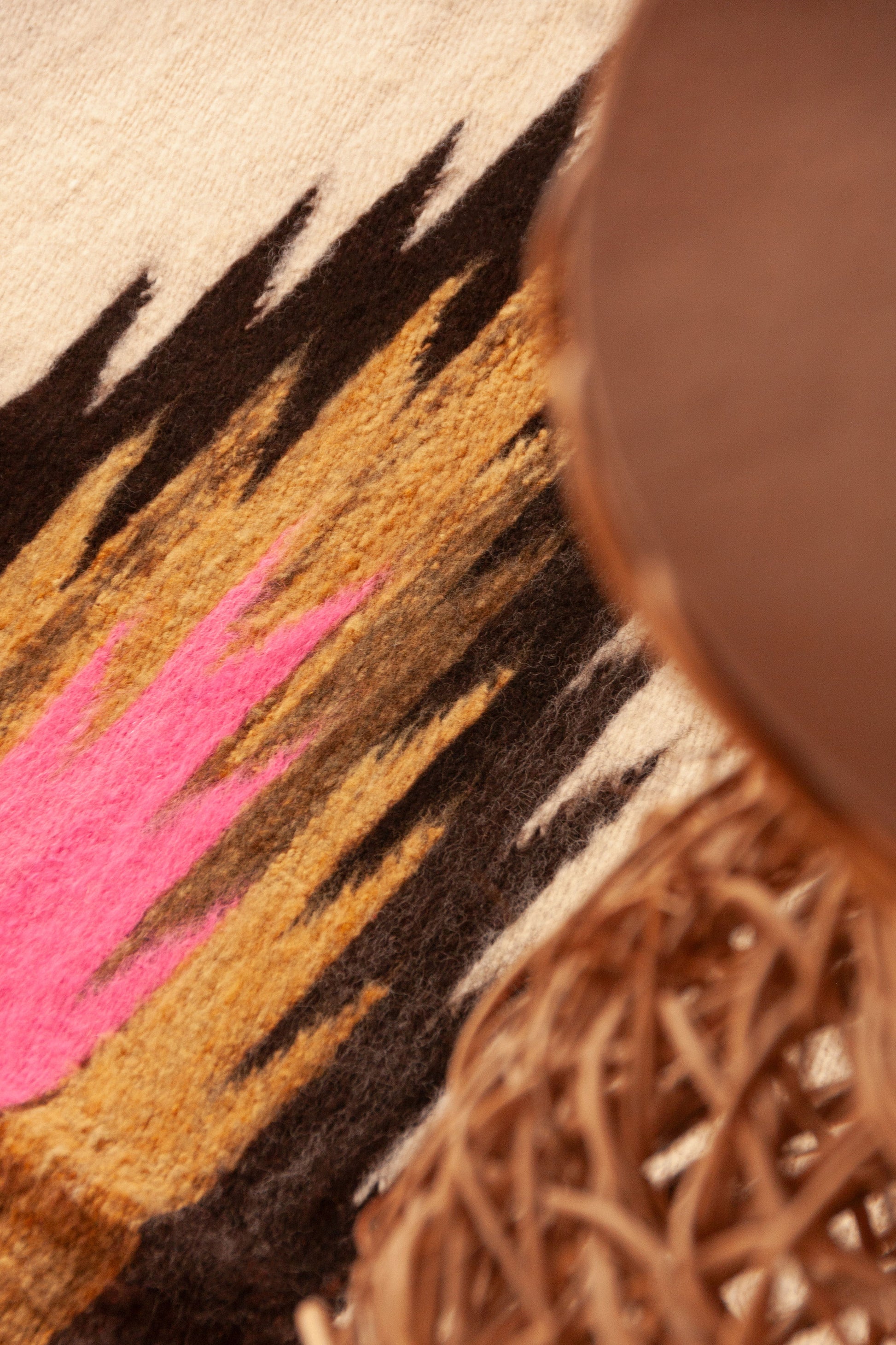 Alfombra "Tinku" es de lana de llama, hecha a mano en telar rústico.