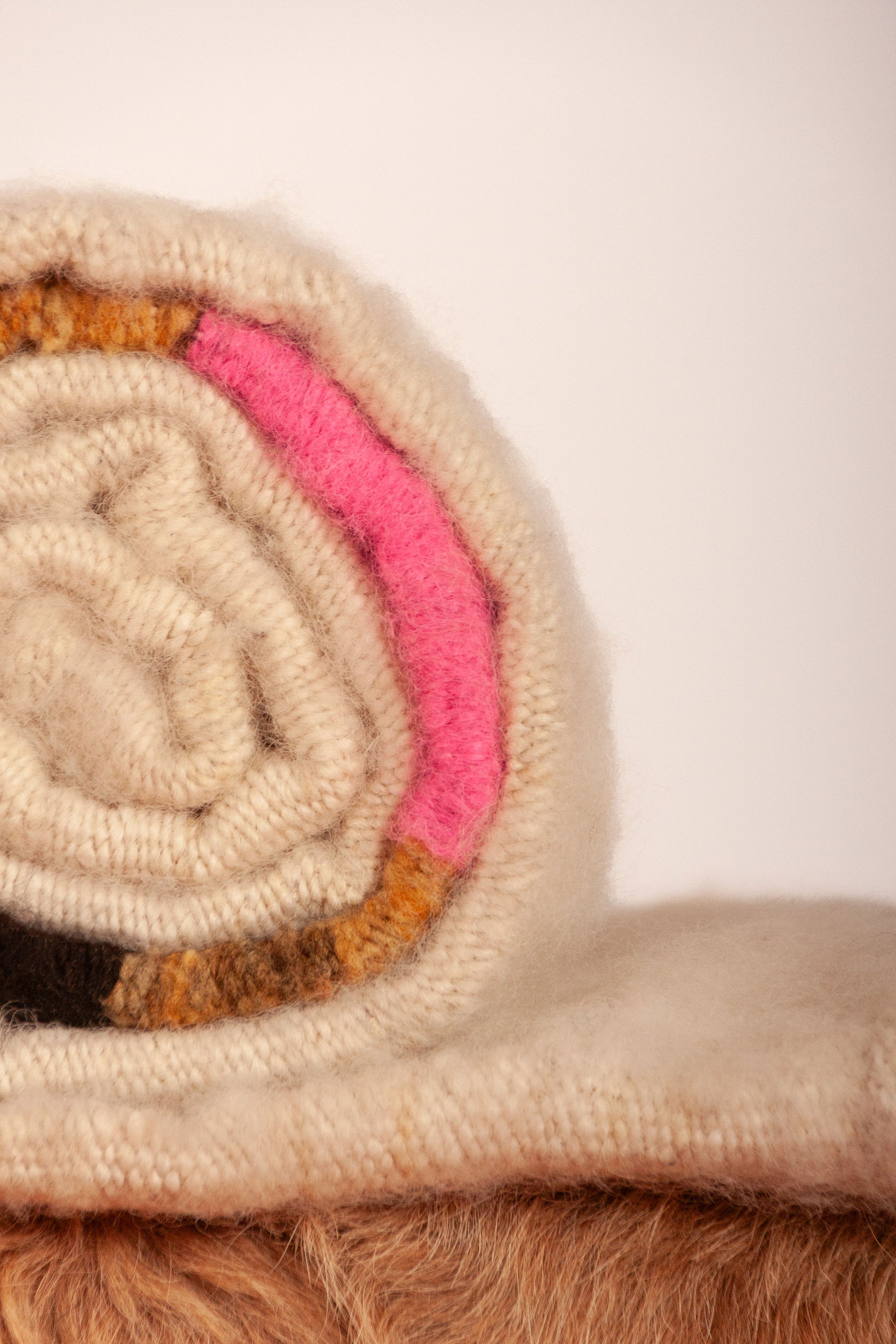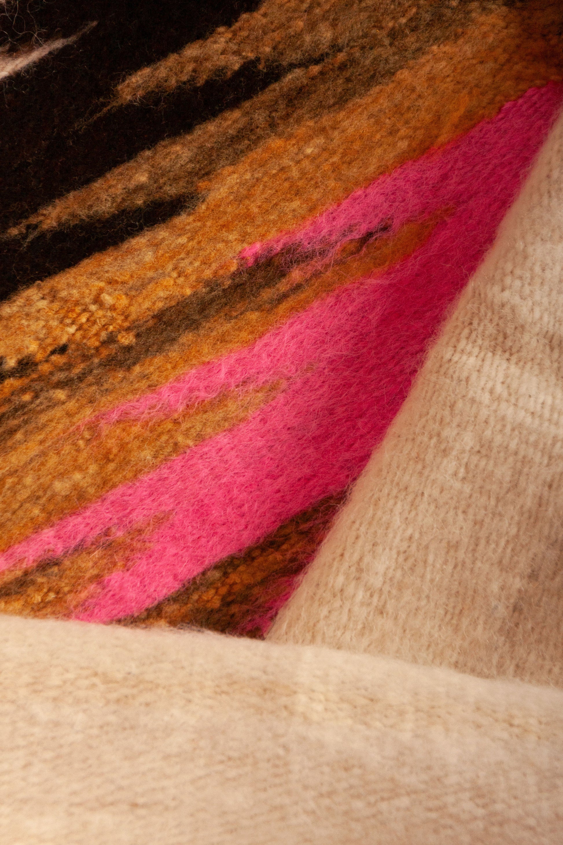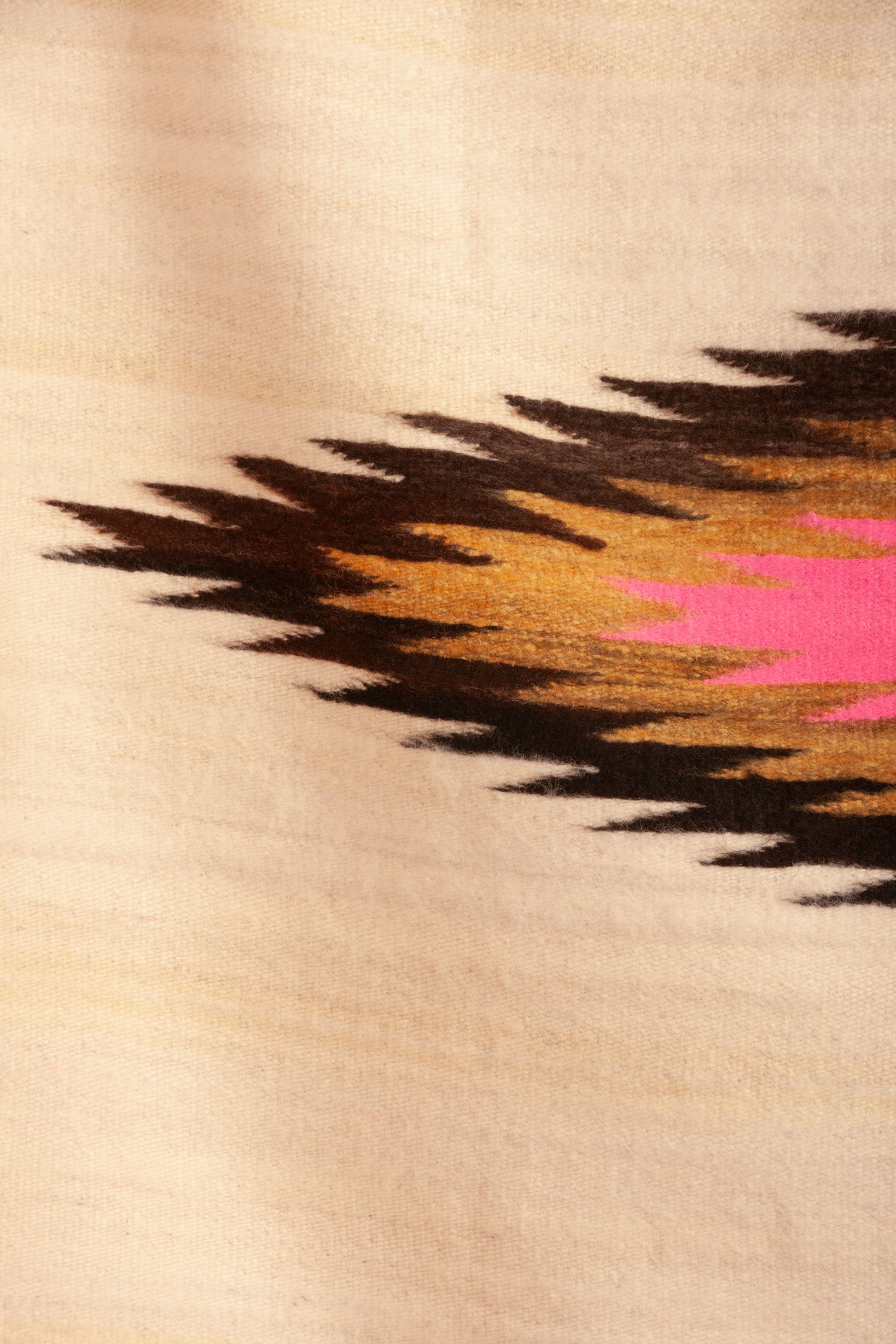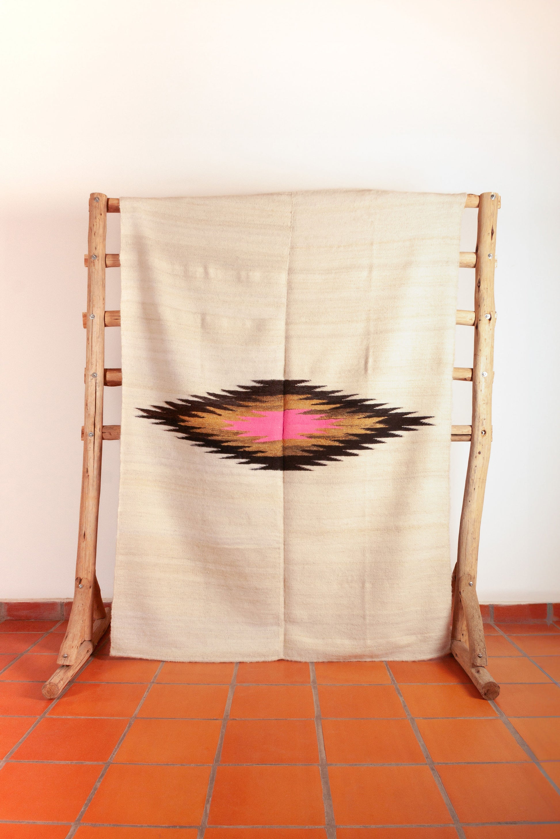 Alfombra "Tinku" es de lana de llama, hecha a mano en telar rústico.