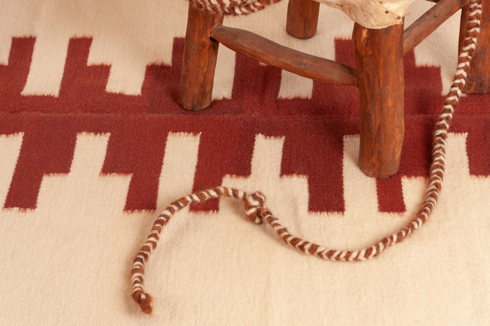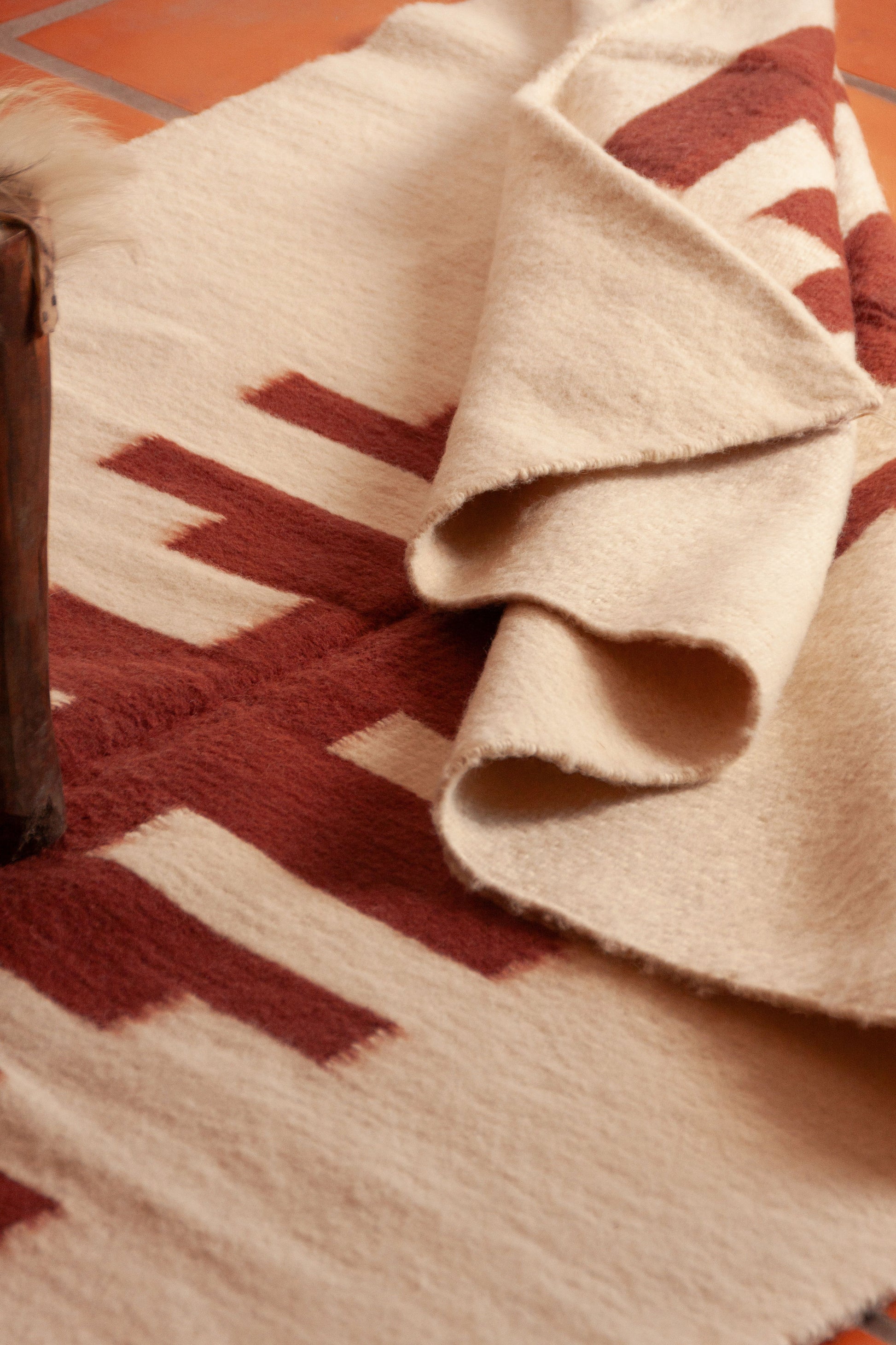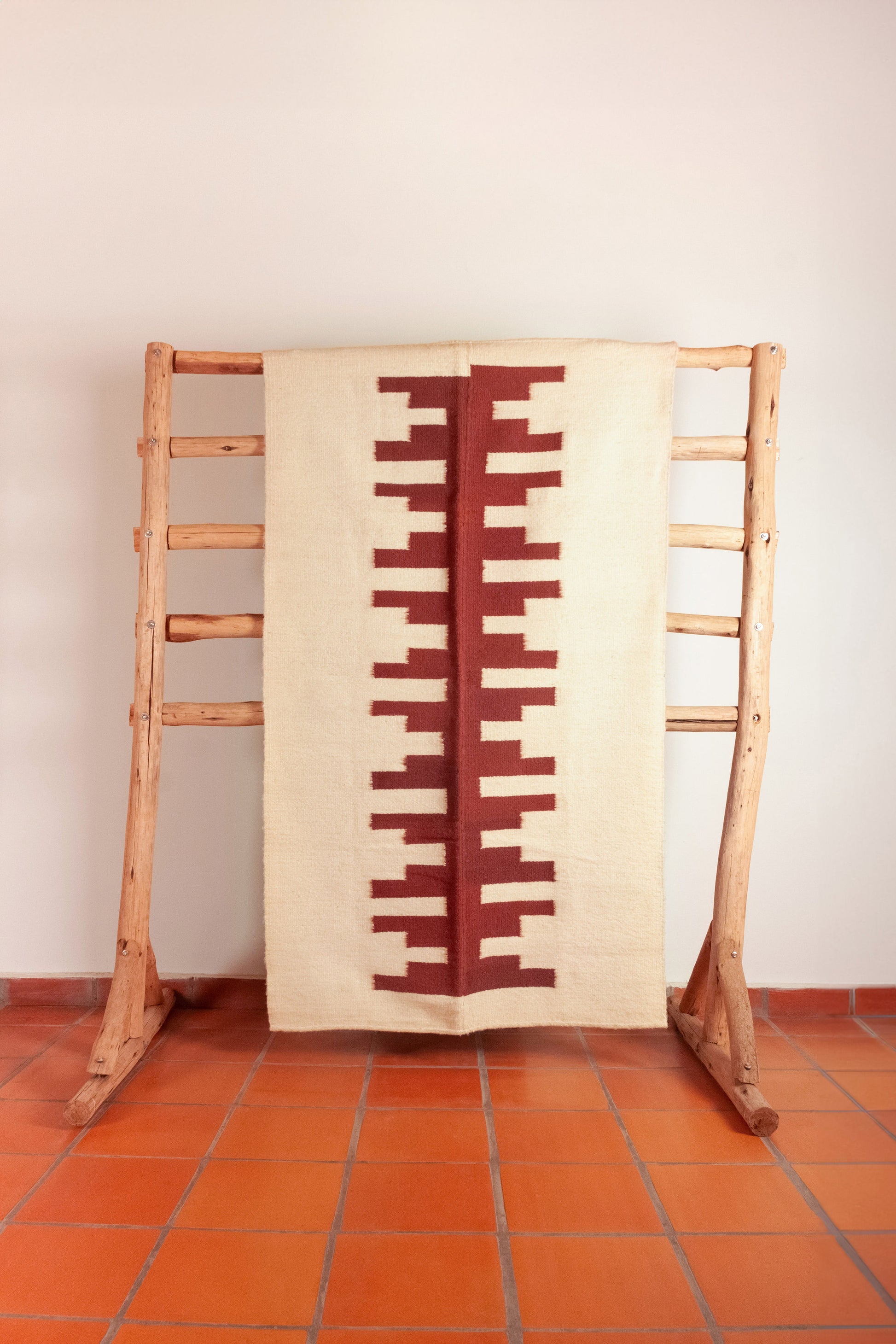 Alfombra "Mojón" es de lana de llama, hecha a mano en telar rústico.
