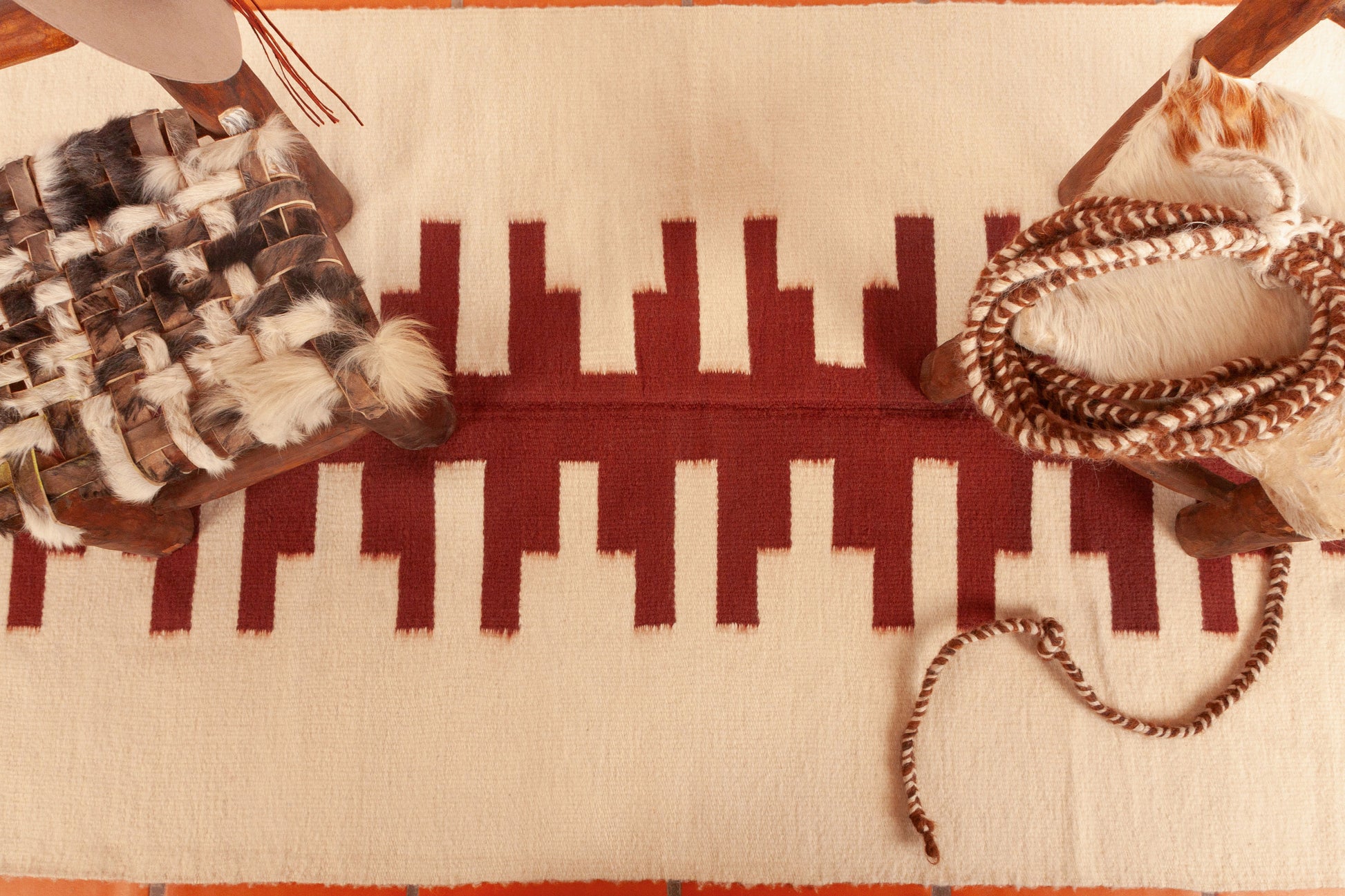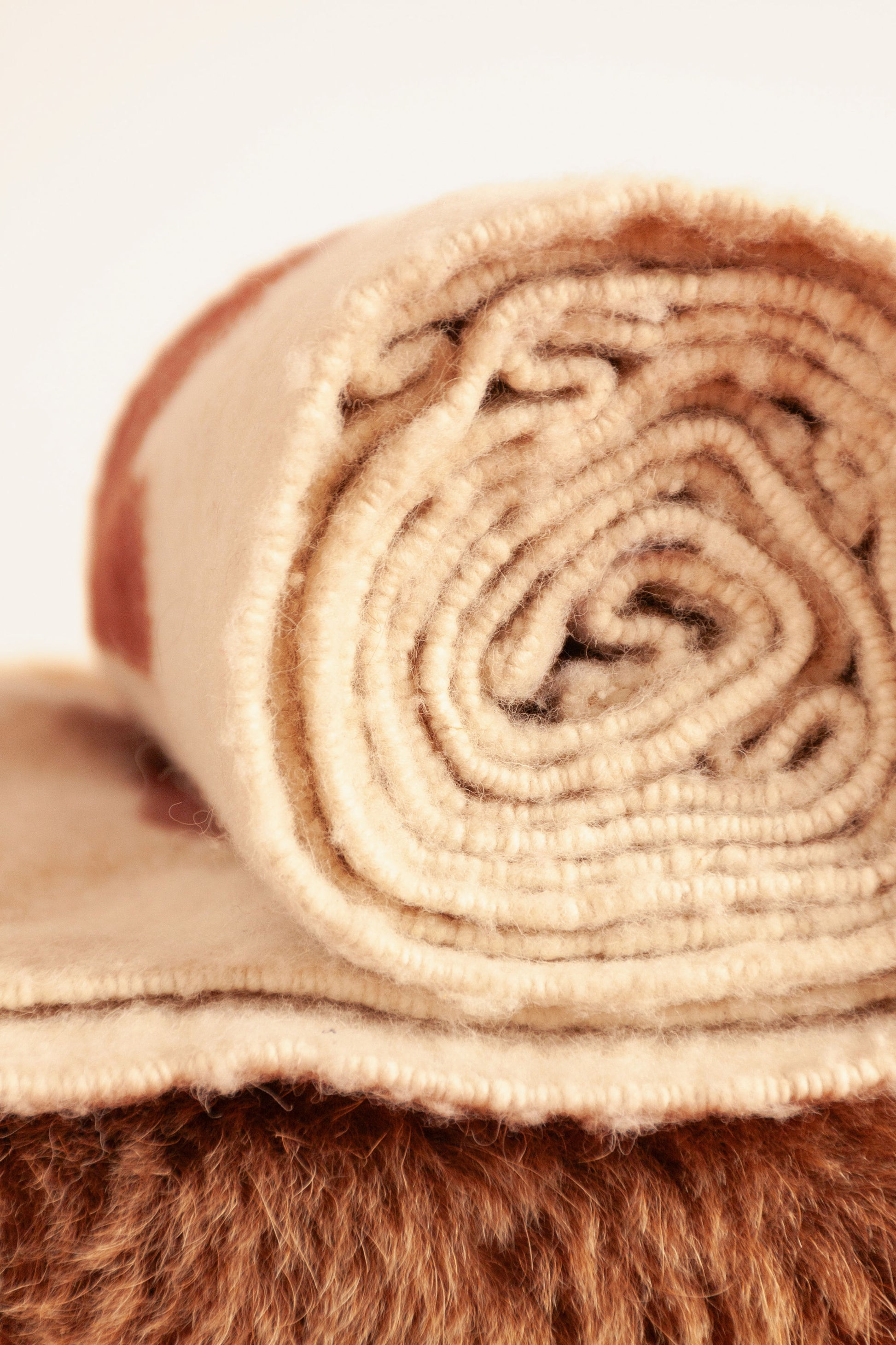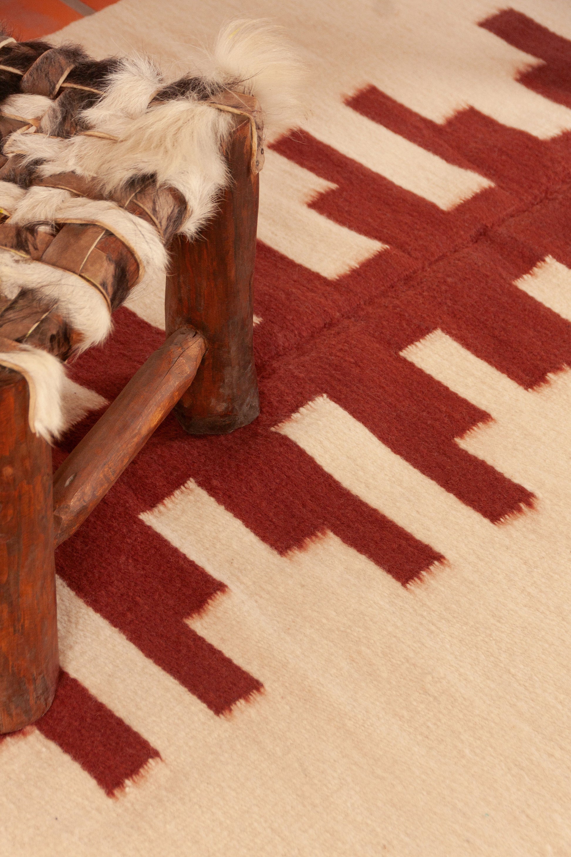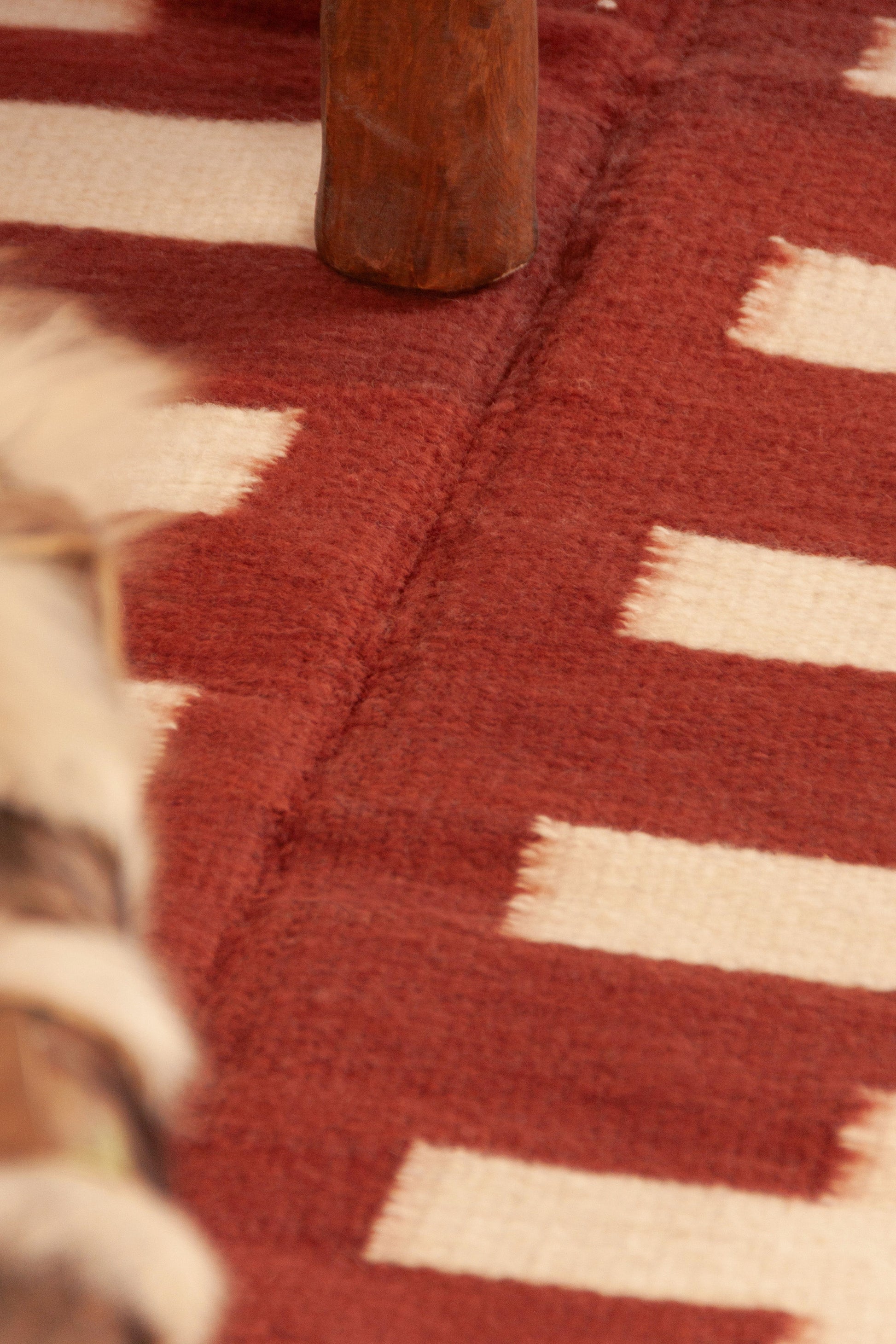 Alfombra "Mojón" es de lana de llama, hecha a mano en telar rústico.