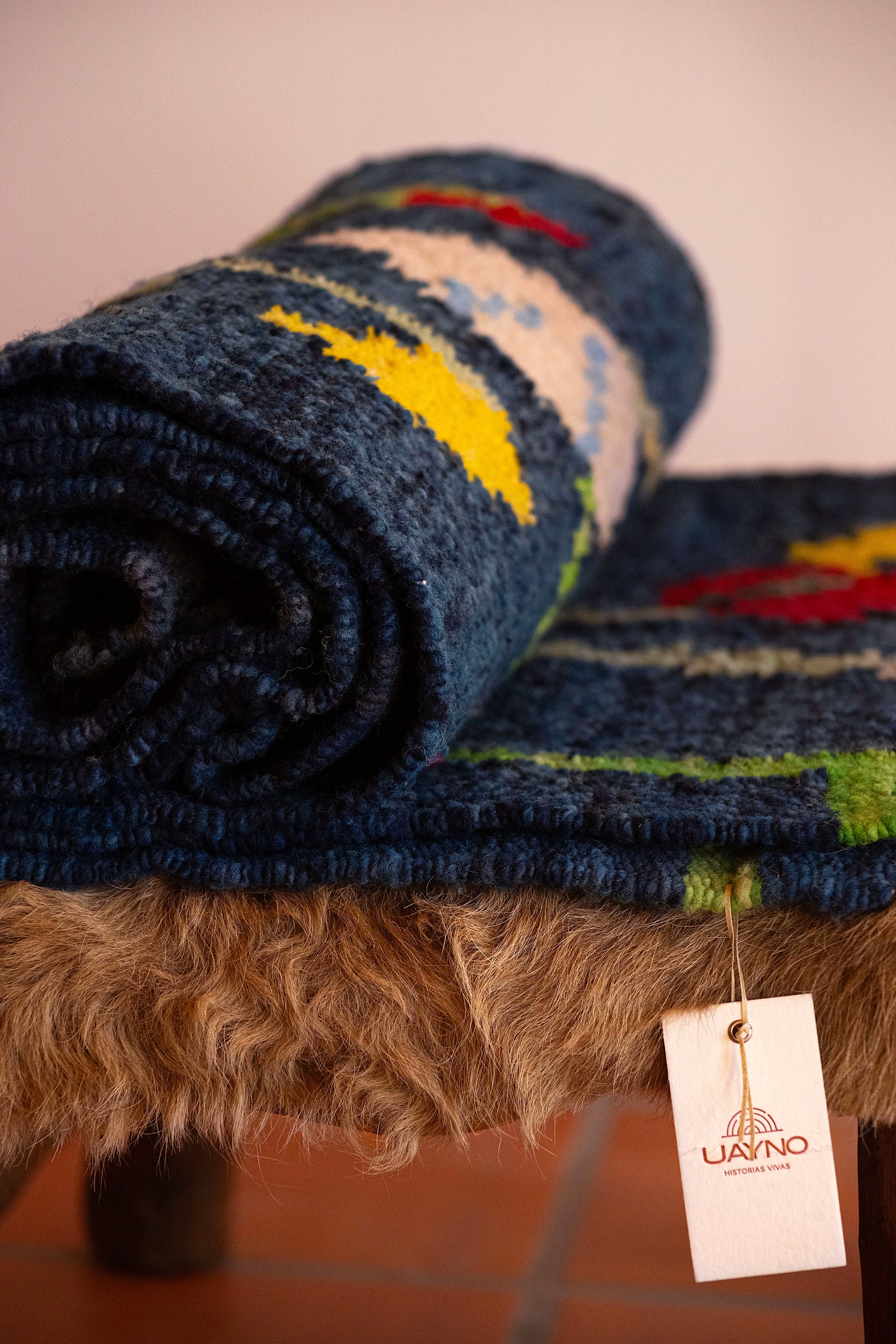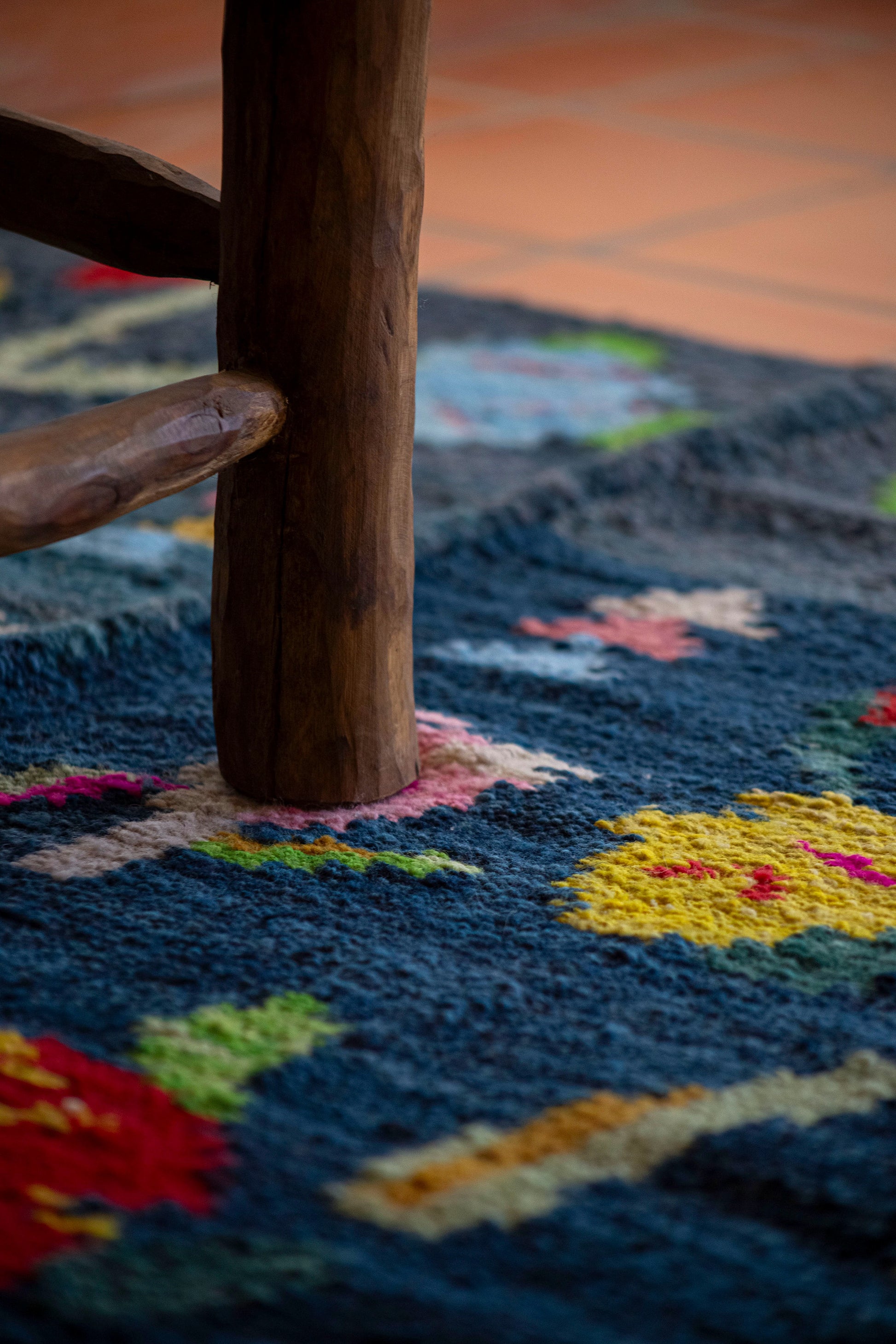 La alfombra "Molle" tiene 150 días de proceso artesanal completo y 60 días de telar con mucho amor y dedicación. Es 100% artesanal.