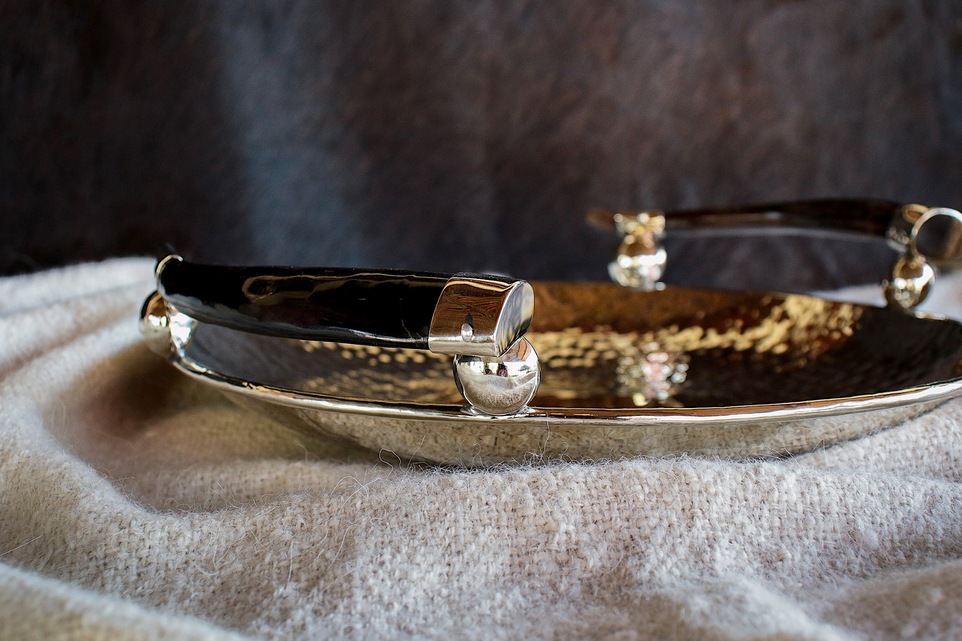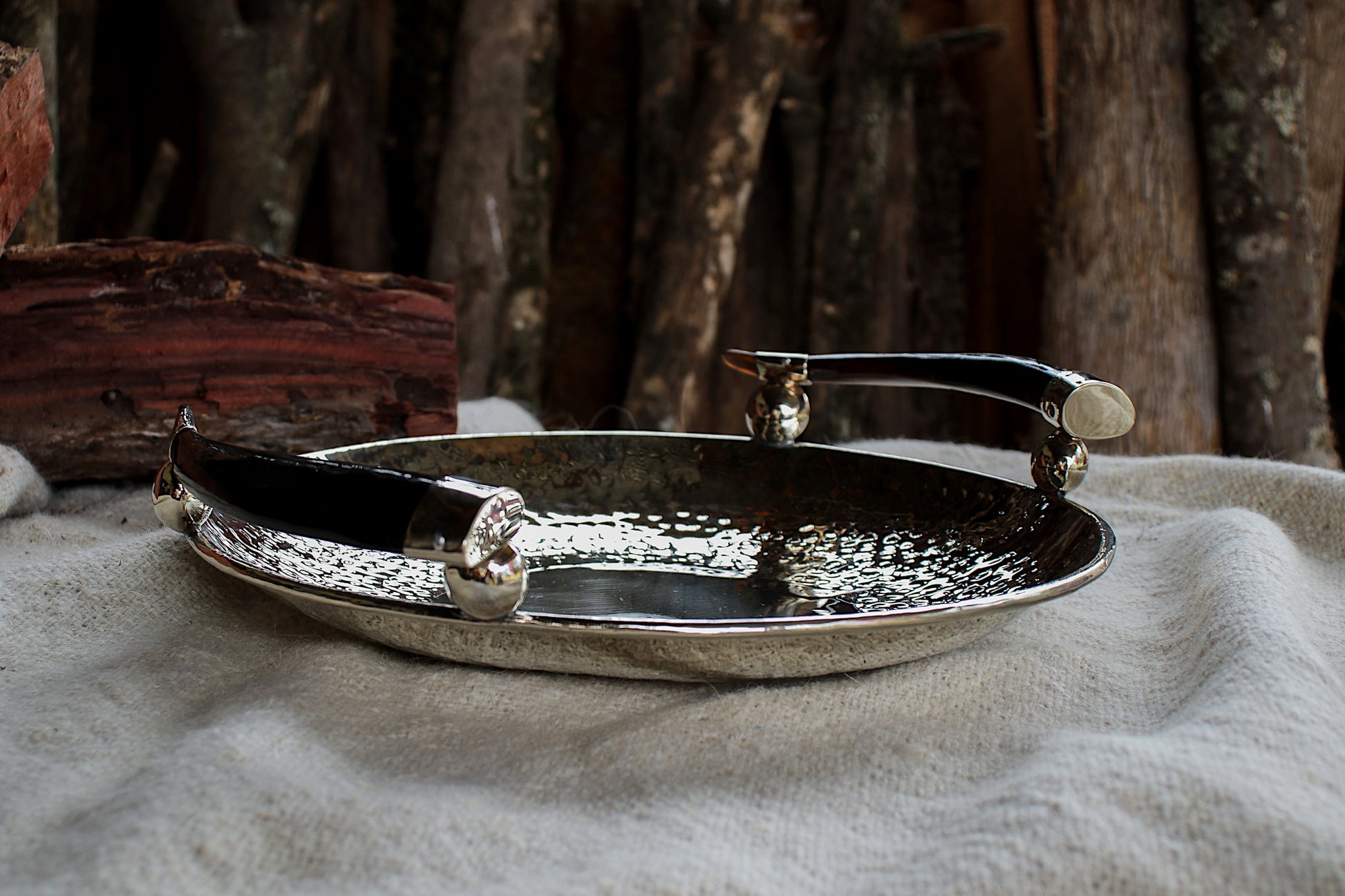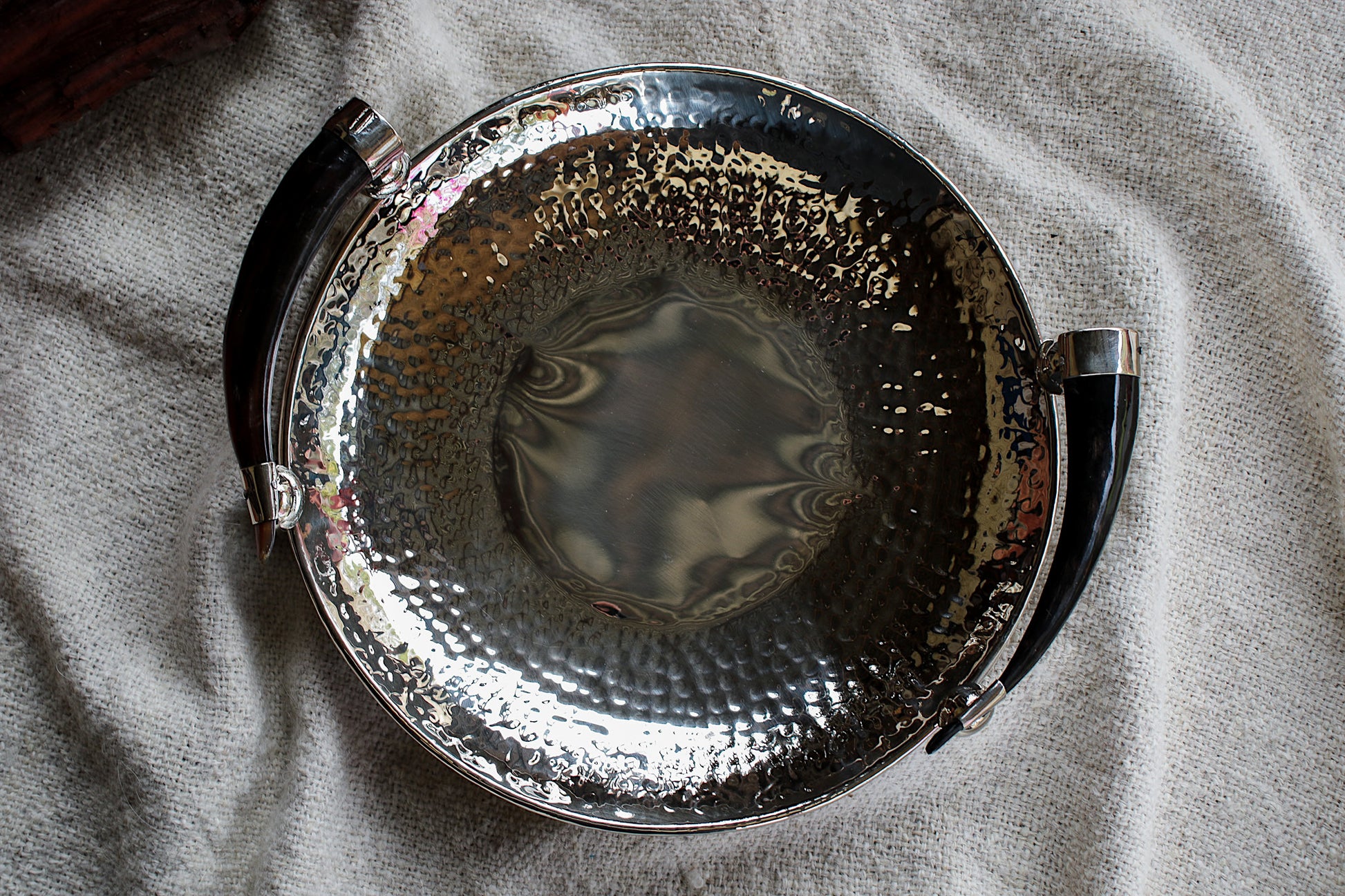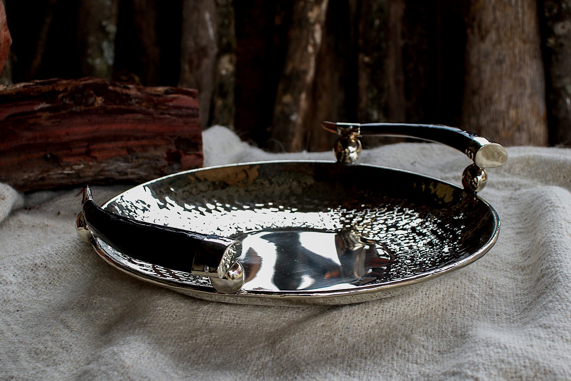 Bandeja de Alpaca cincelada a mano con soldaduras de plata.
