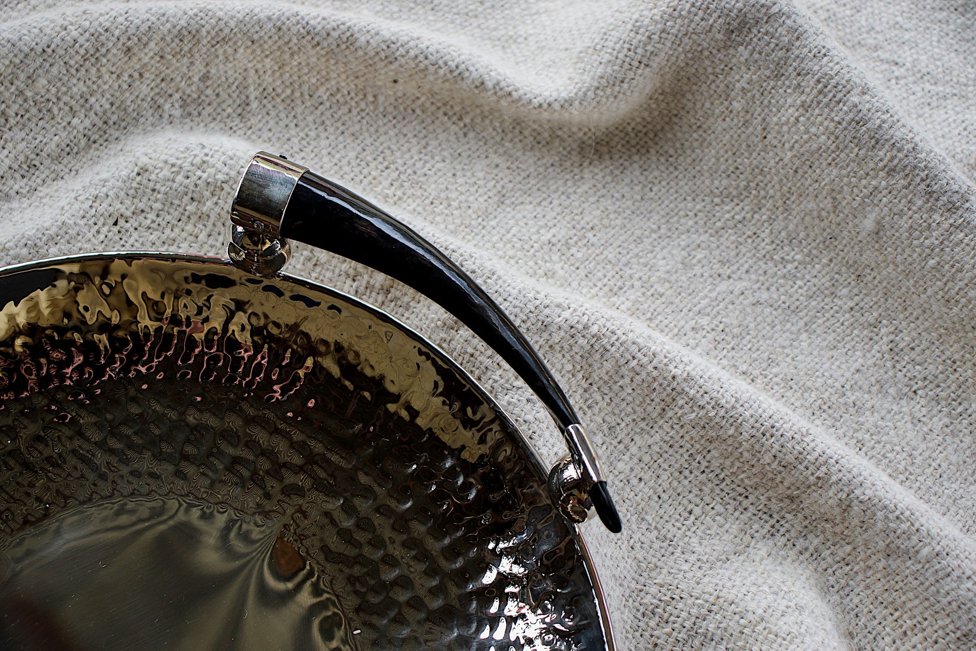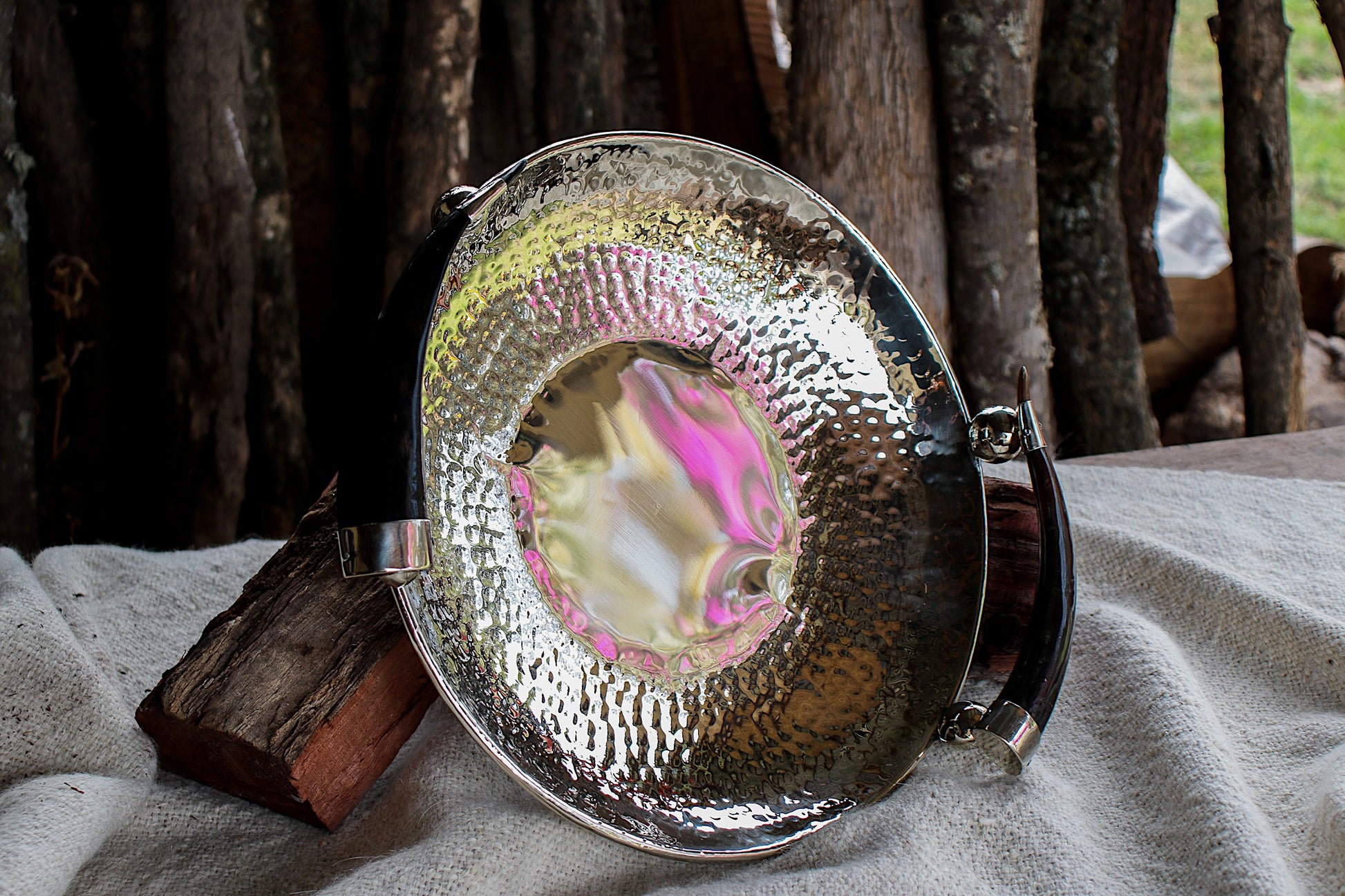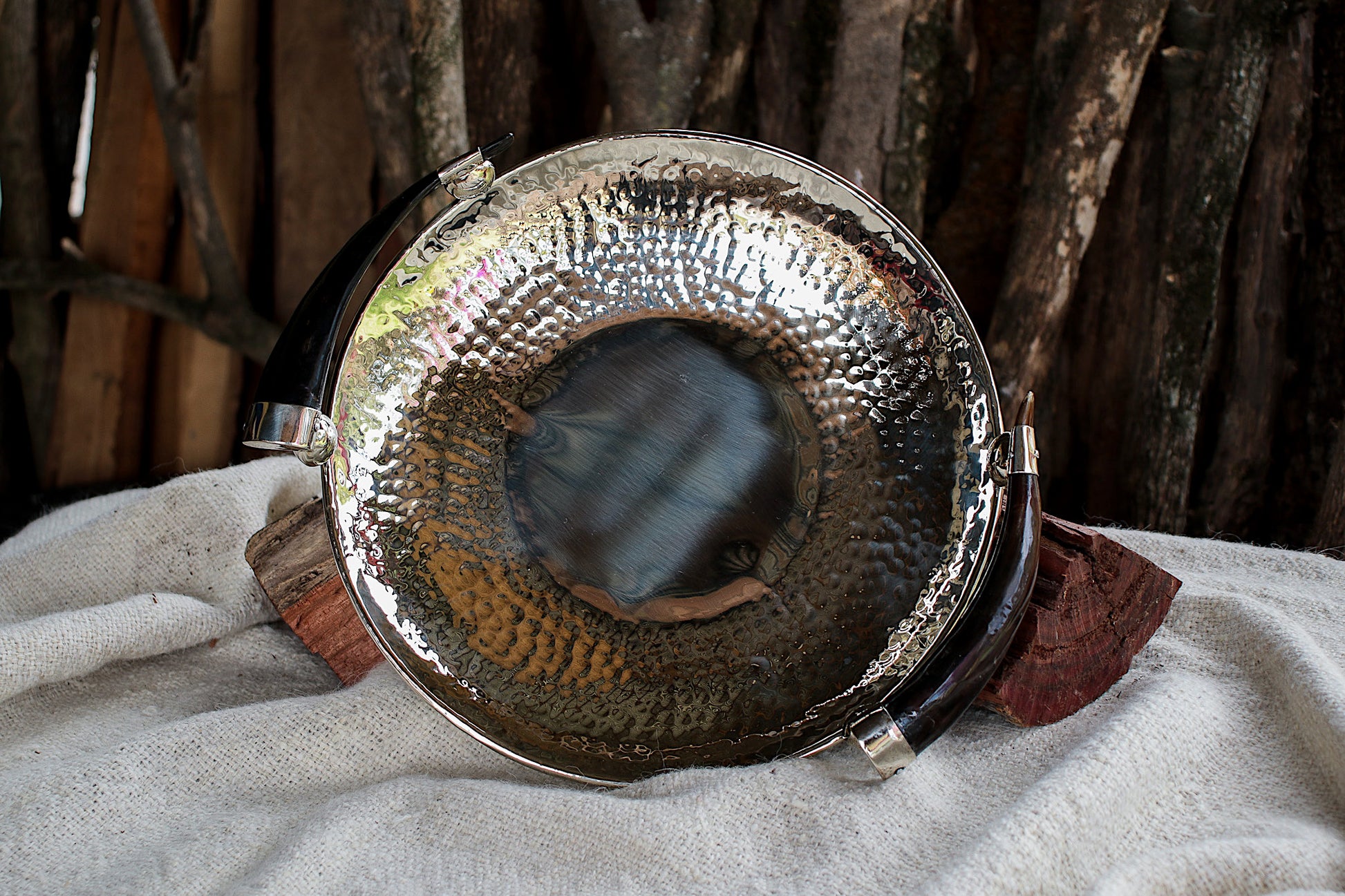 Bandeja de Alpaca cincelada a mano con soldaduras de plata.