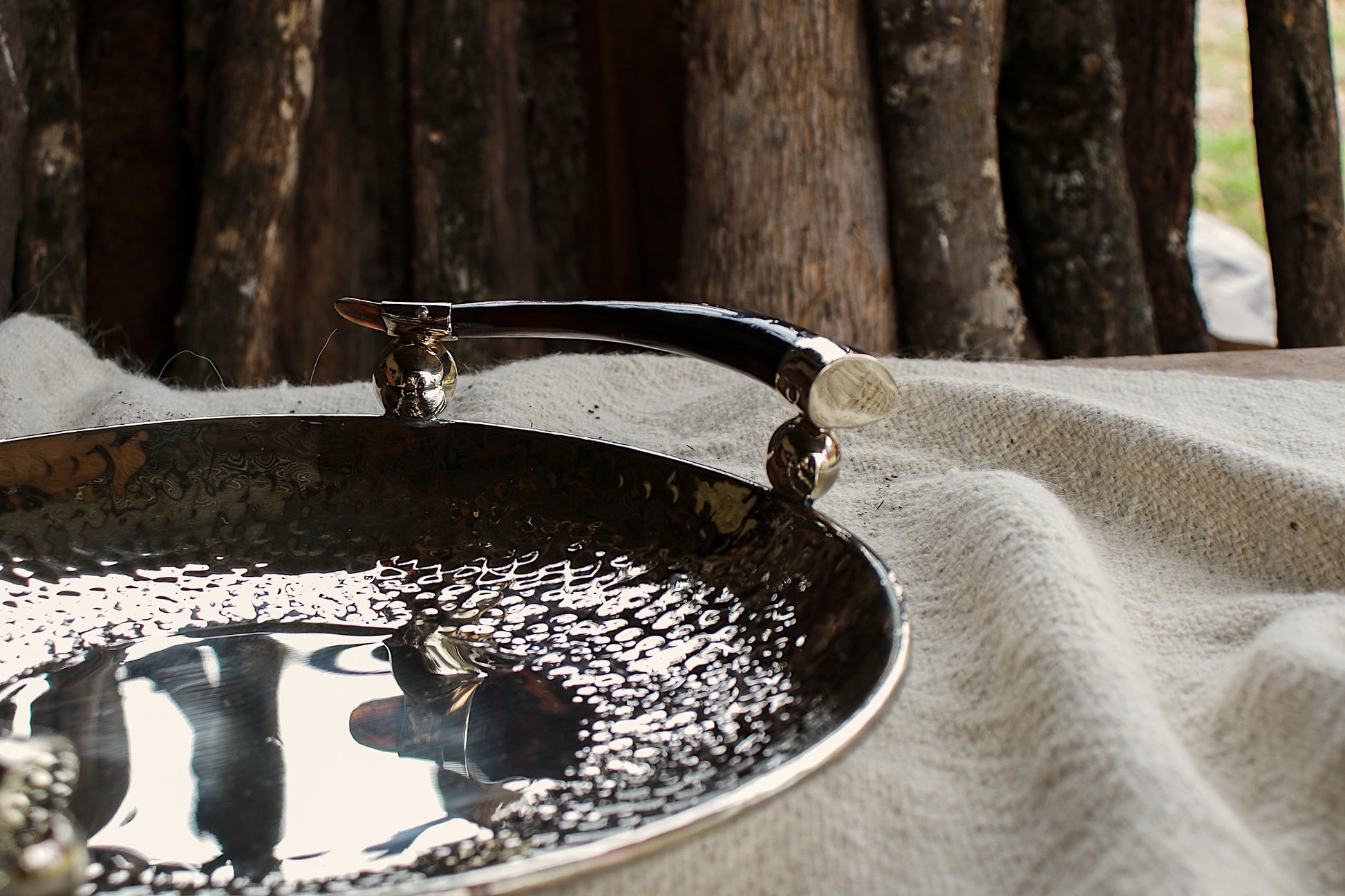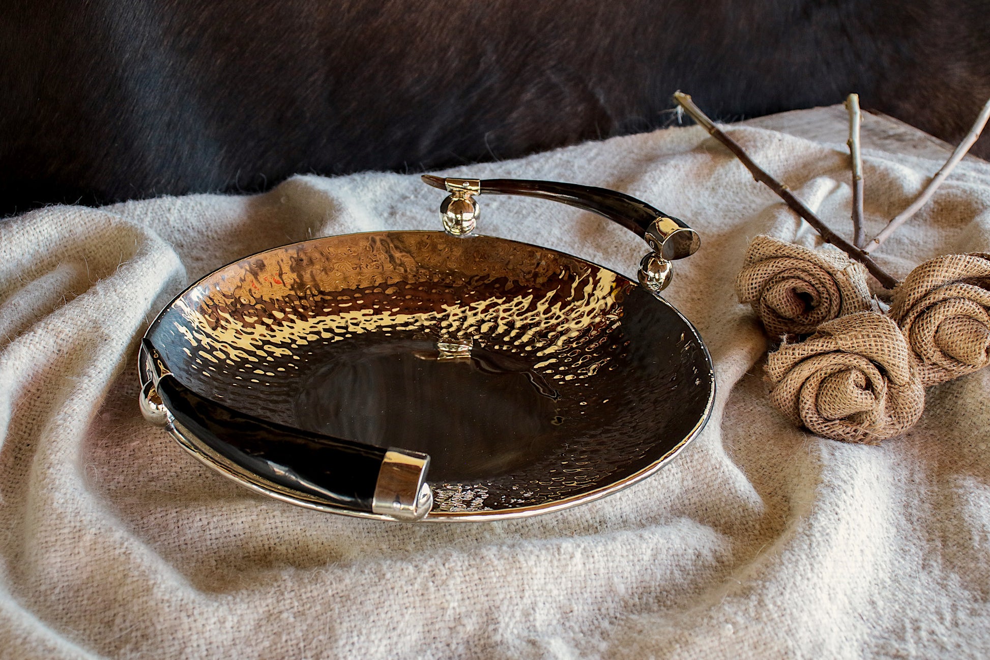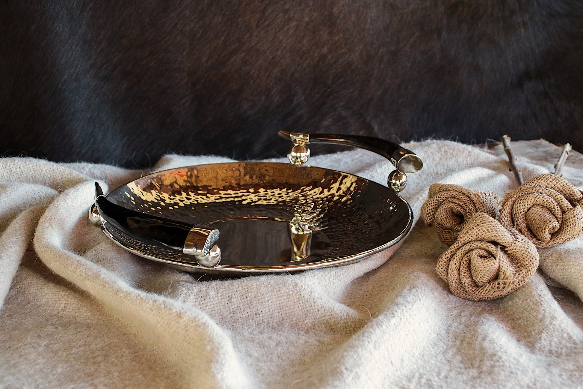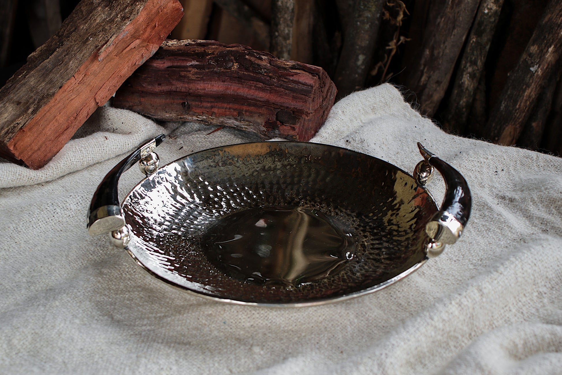 Bandeja de Alpaca cincelada a mano con soldaduras de plata.