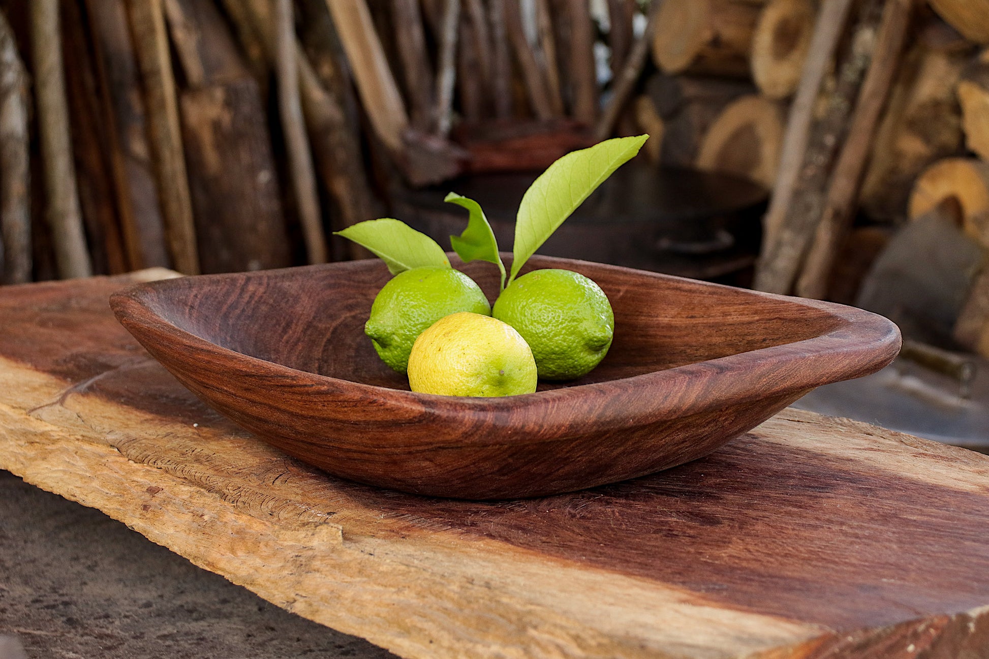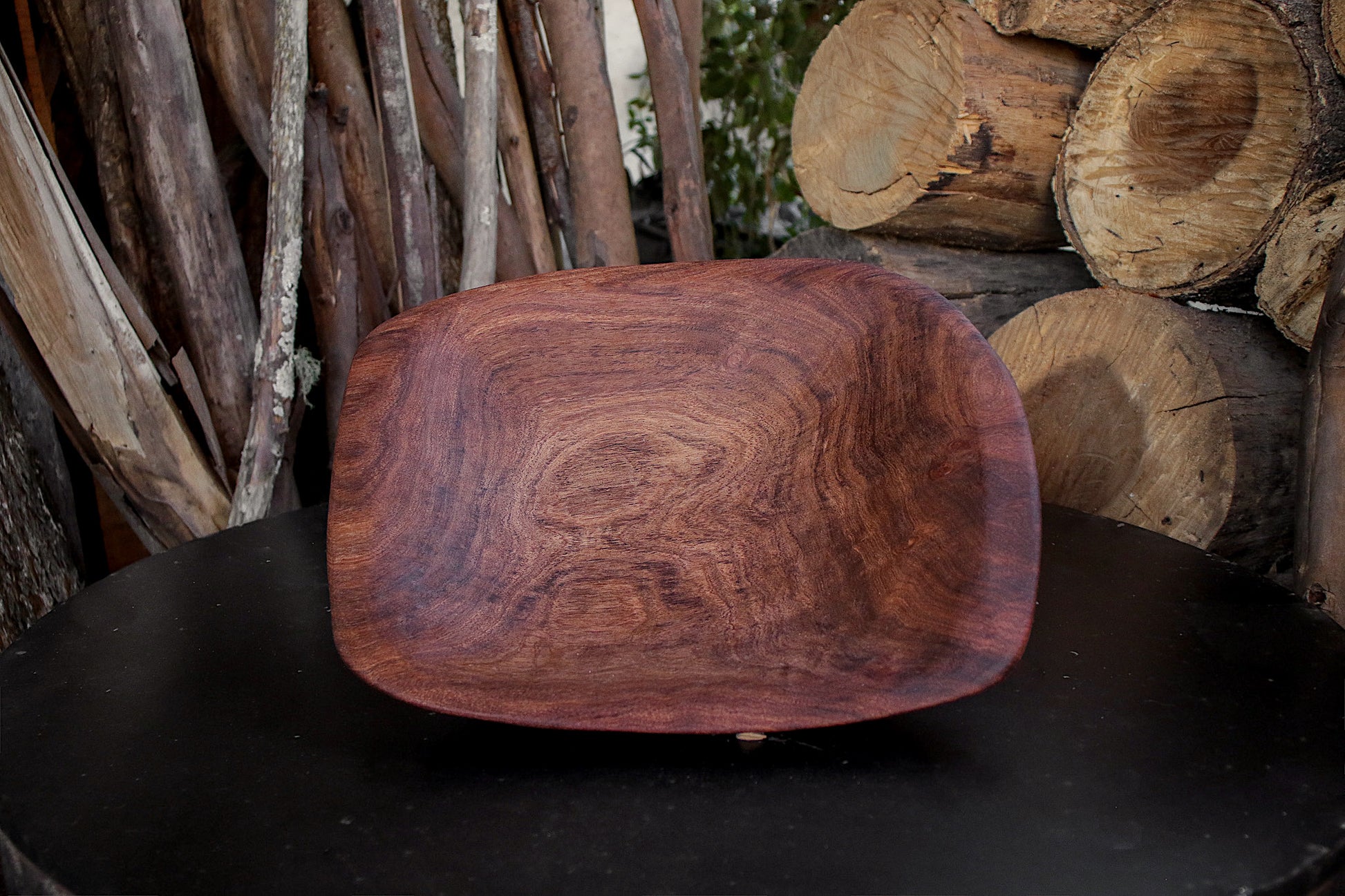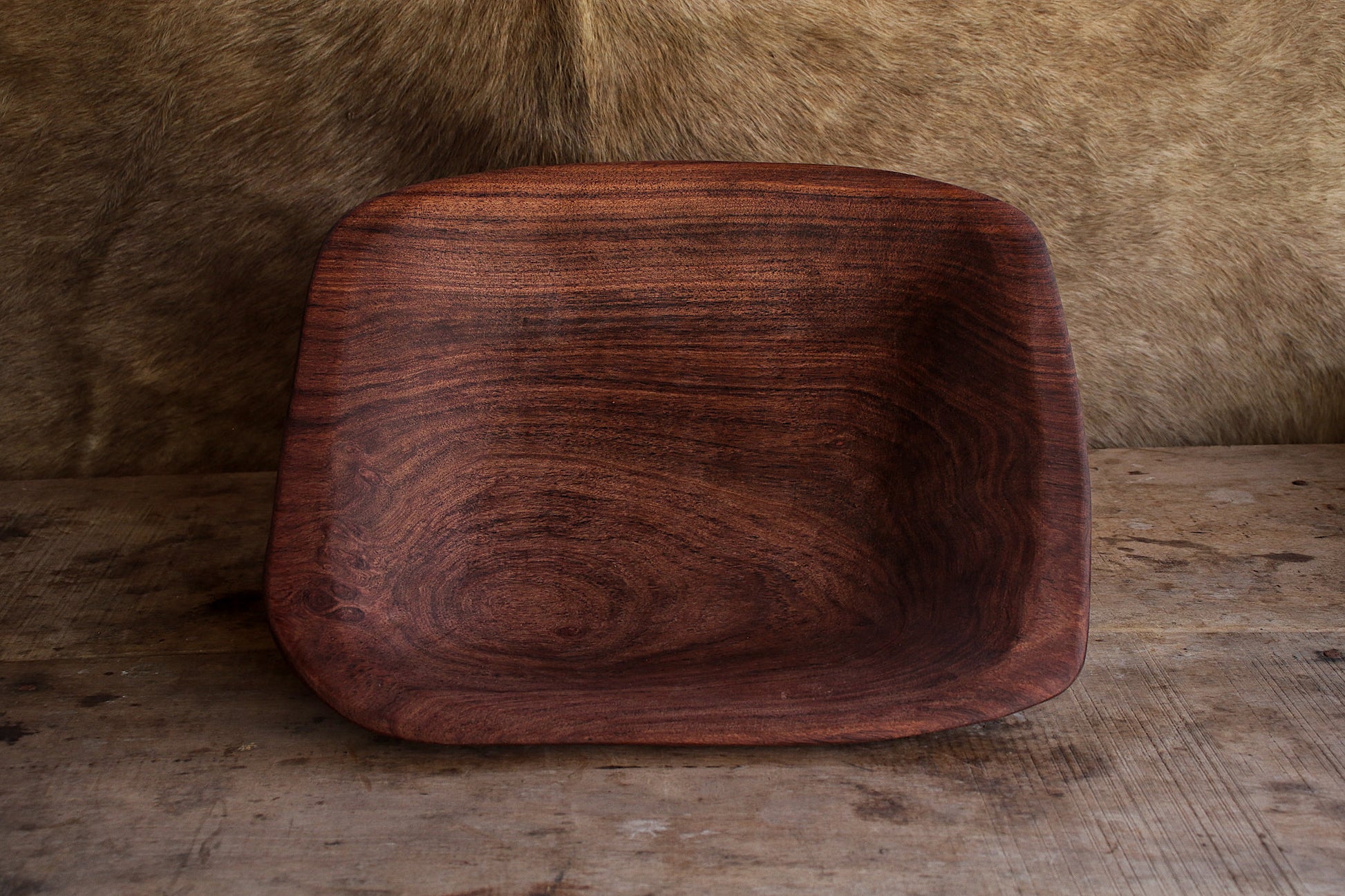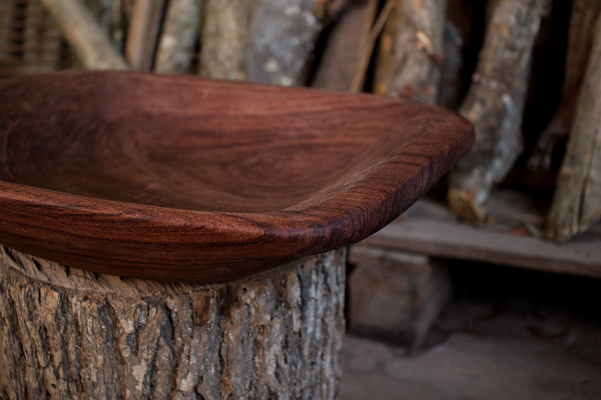 Batea rústica de Algarrobo calada a mano desde una sola pieza de madera.