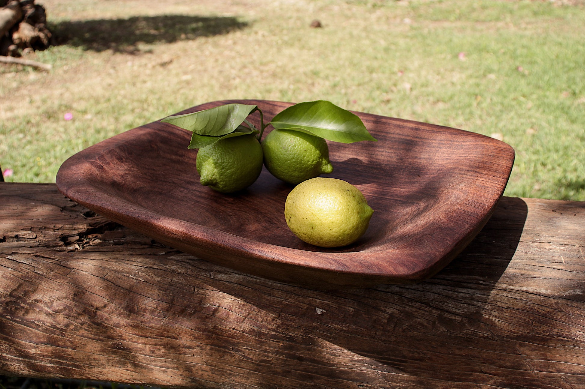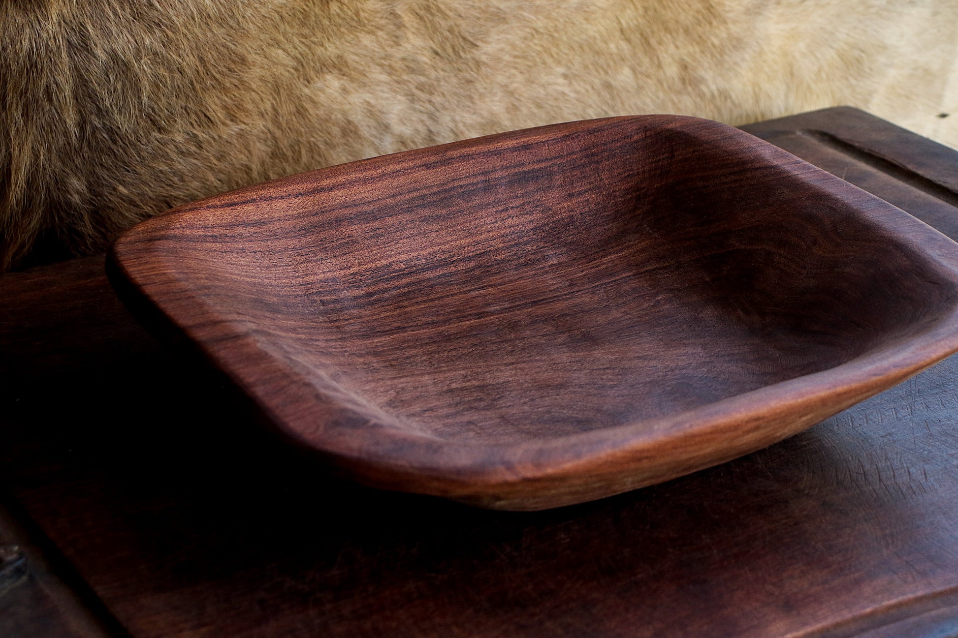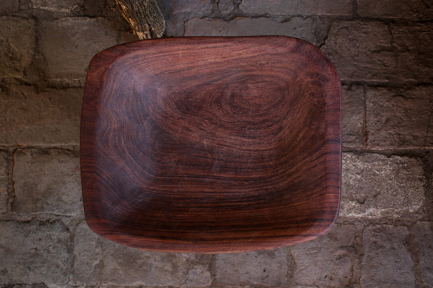 Batea rústica de Algarrobo calada a mano desde una sola pieza de madera.