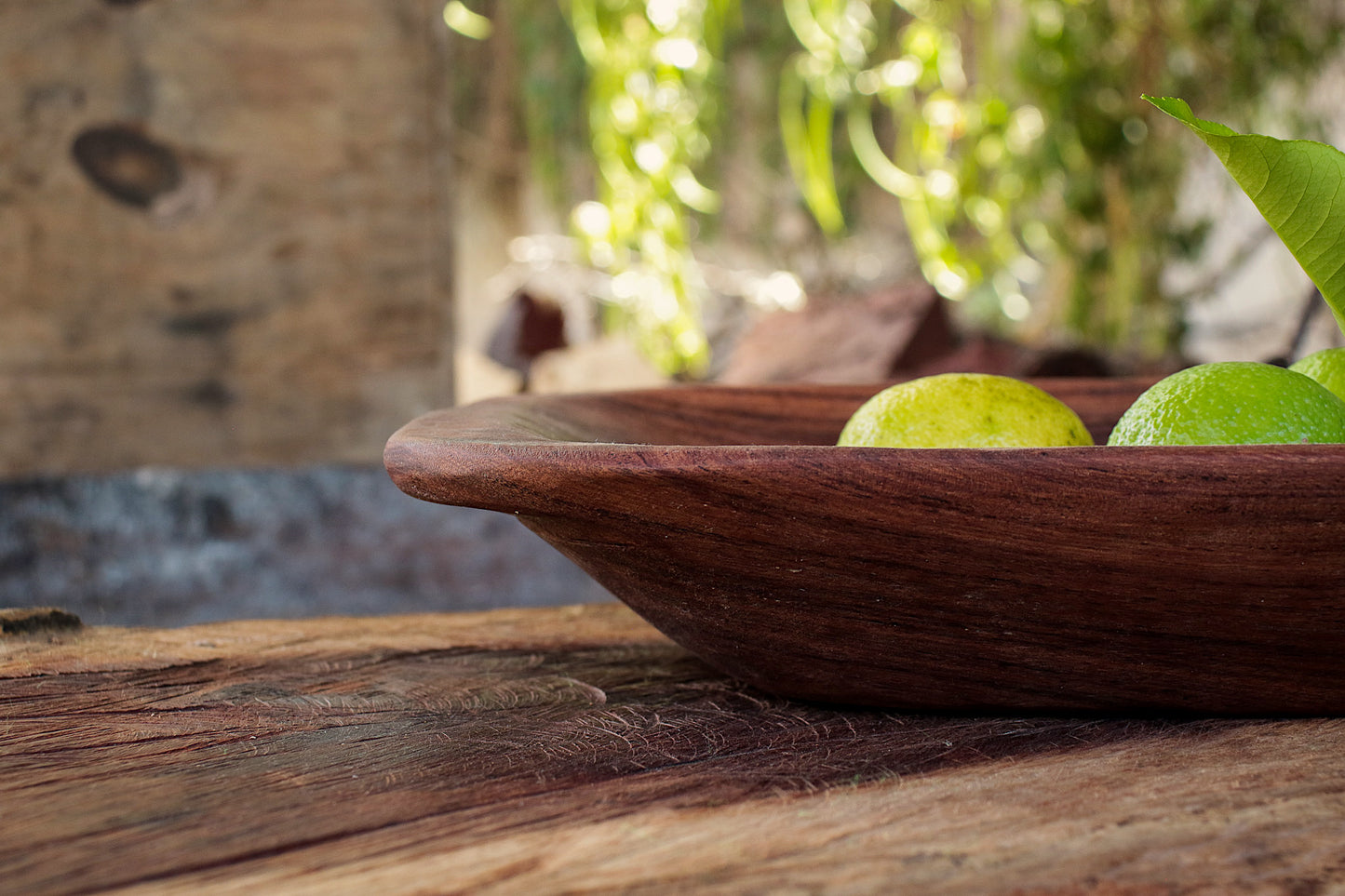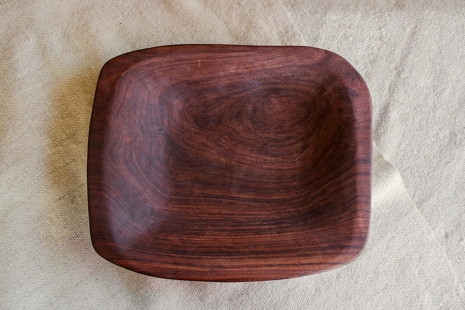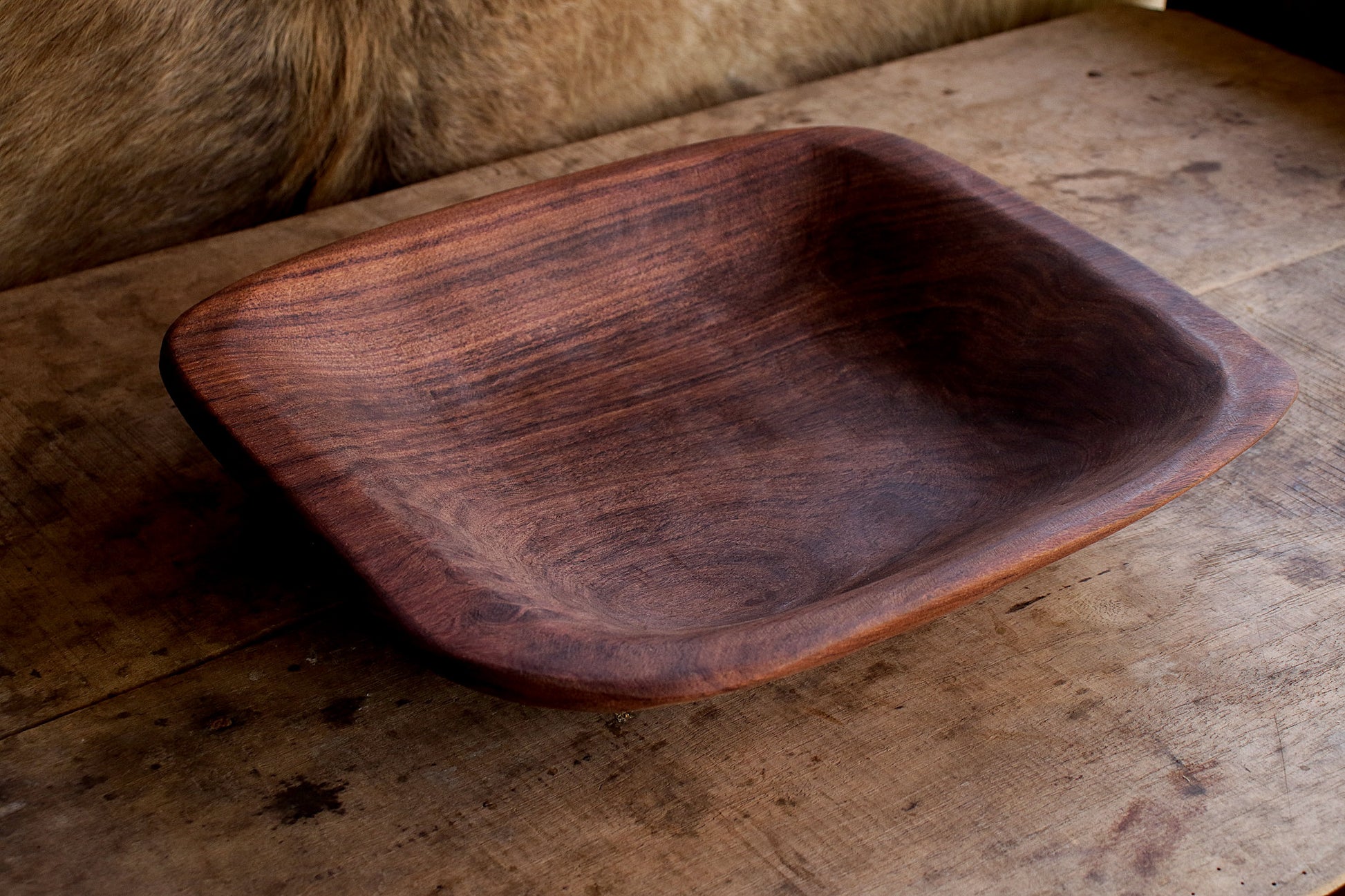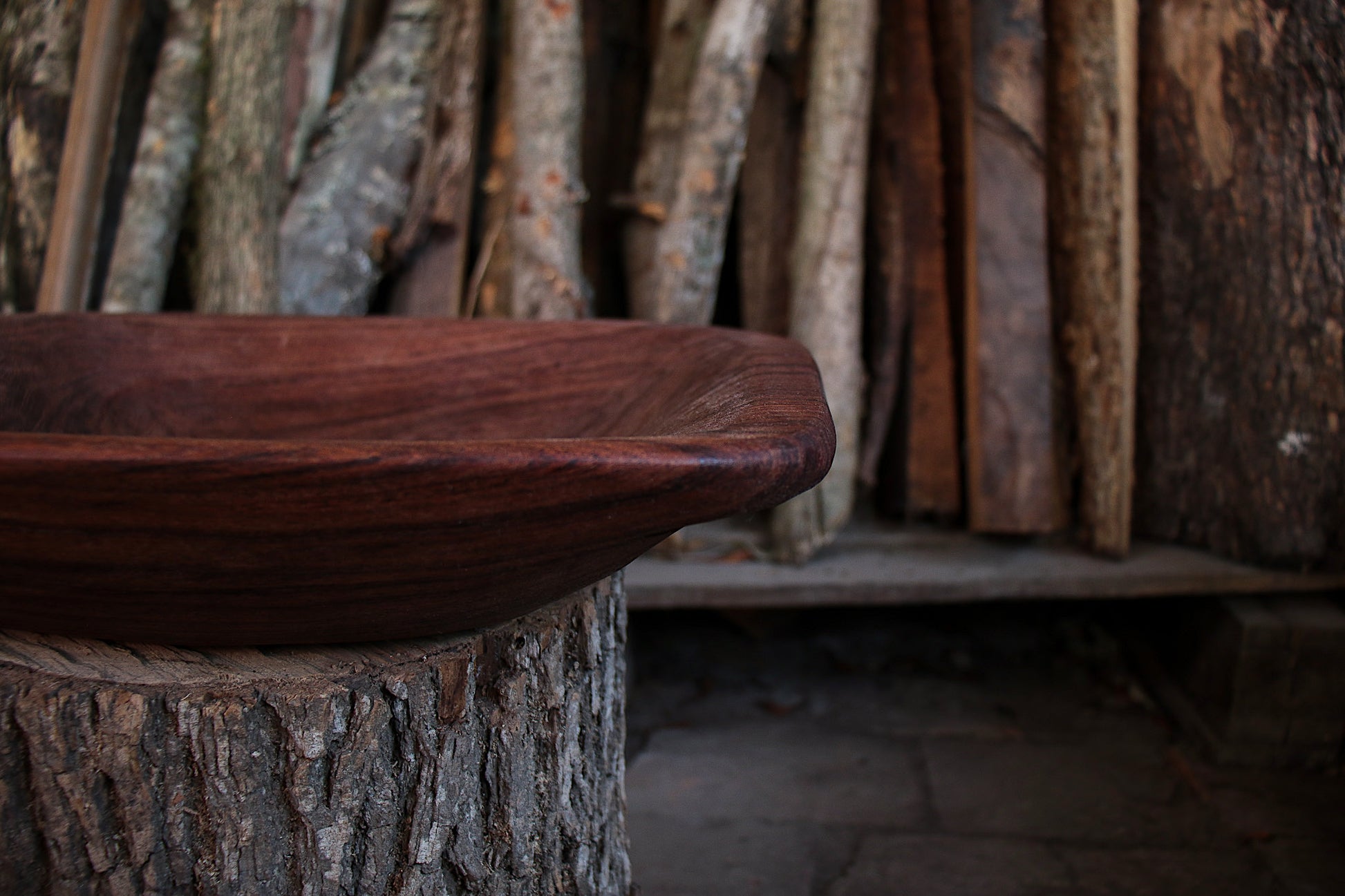Batea rústica de Algarrobo calada a mano desde una sola pieza de madera.