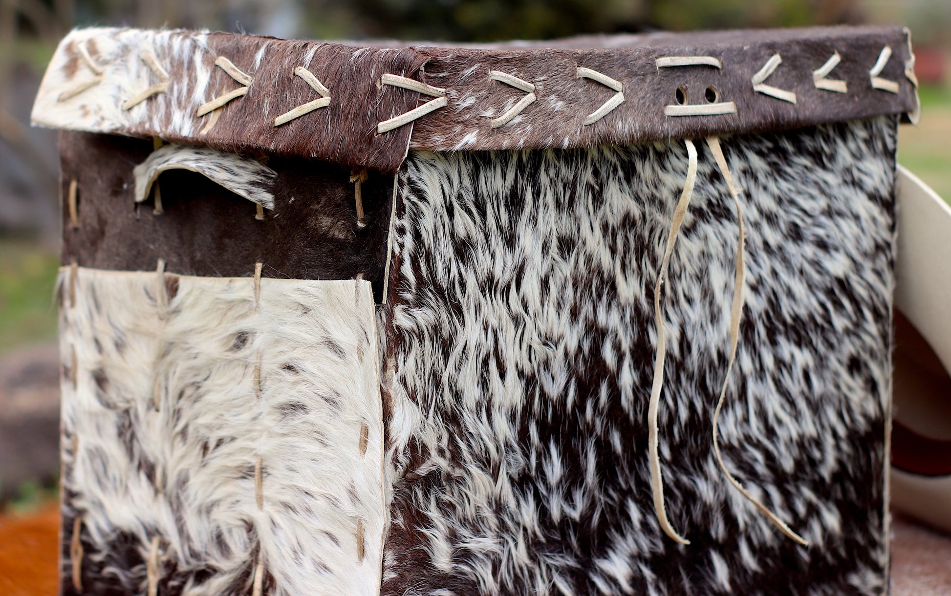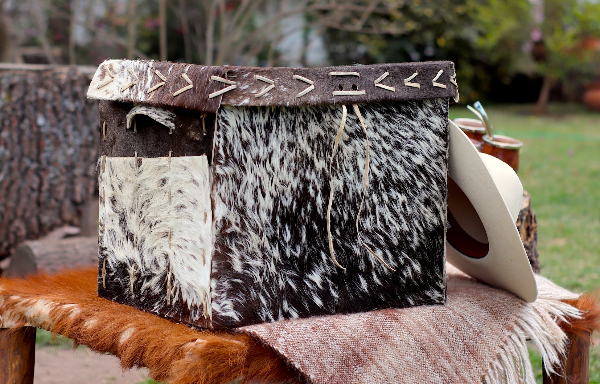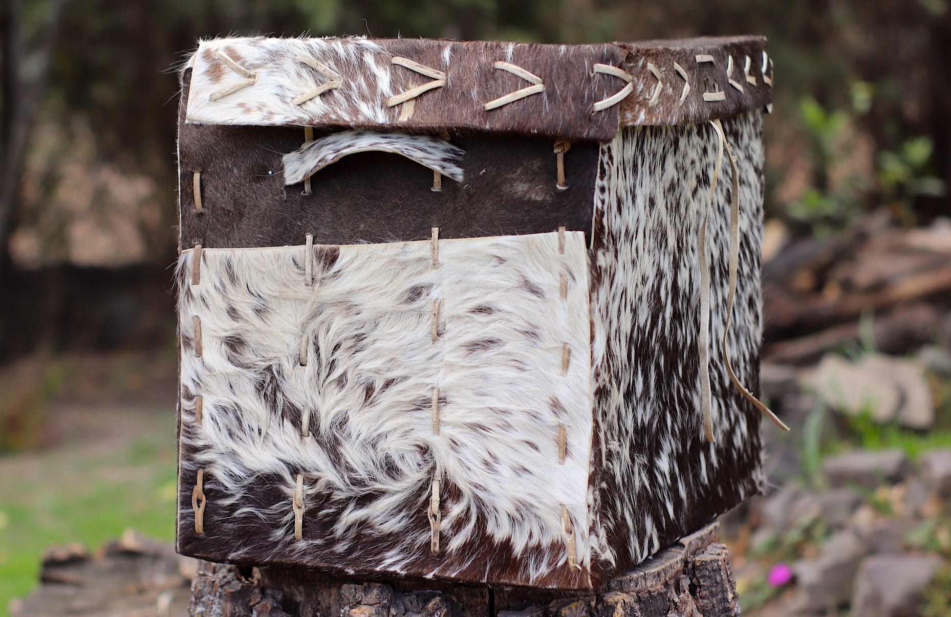 Baúl de cuero natural hecho a mano desde una sola pieza cocido con tientos.