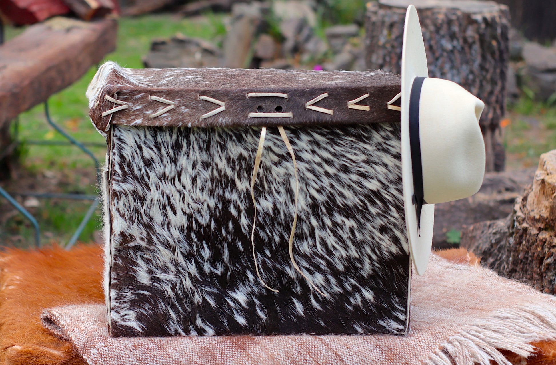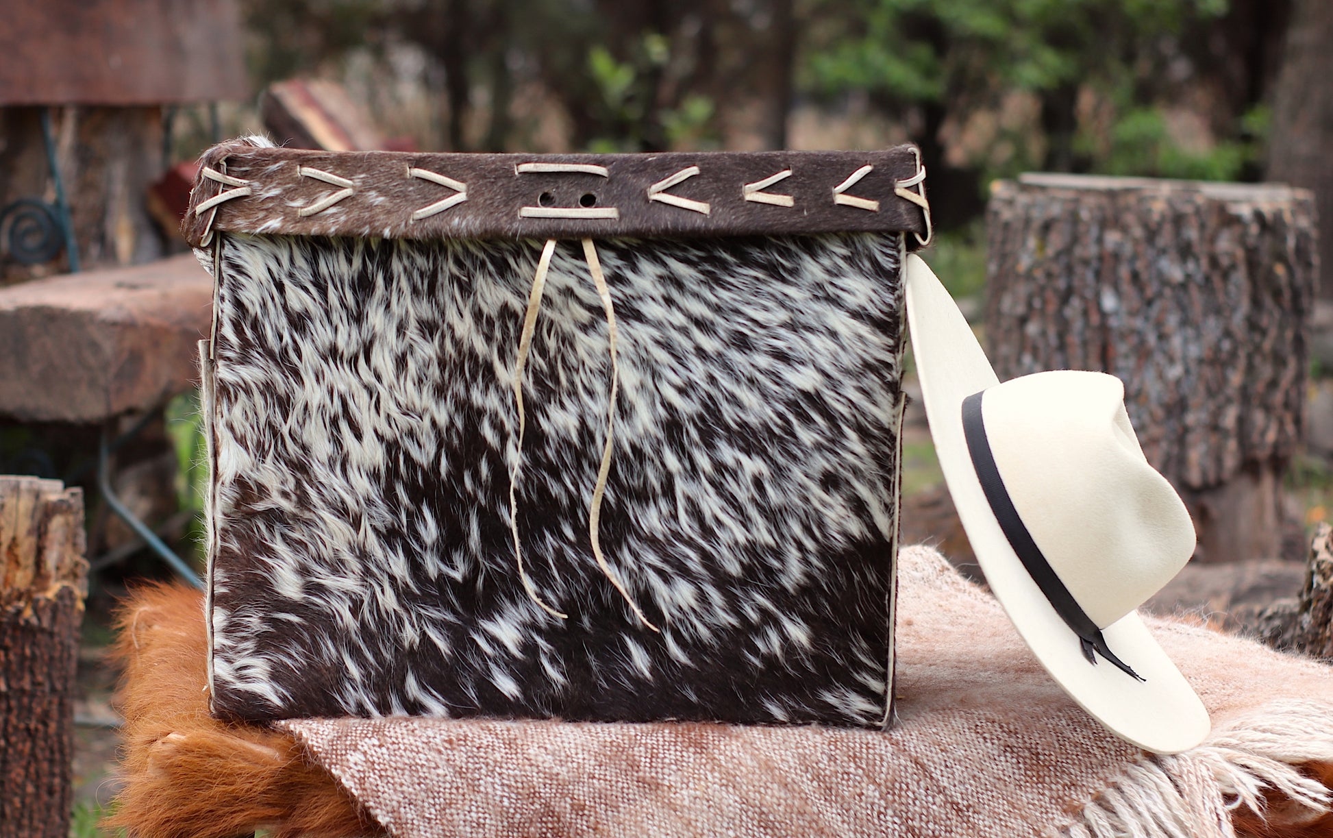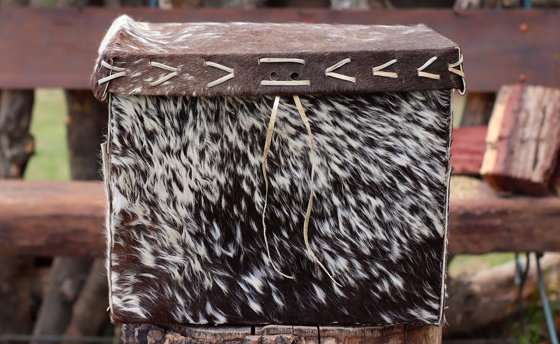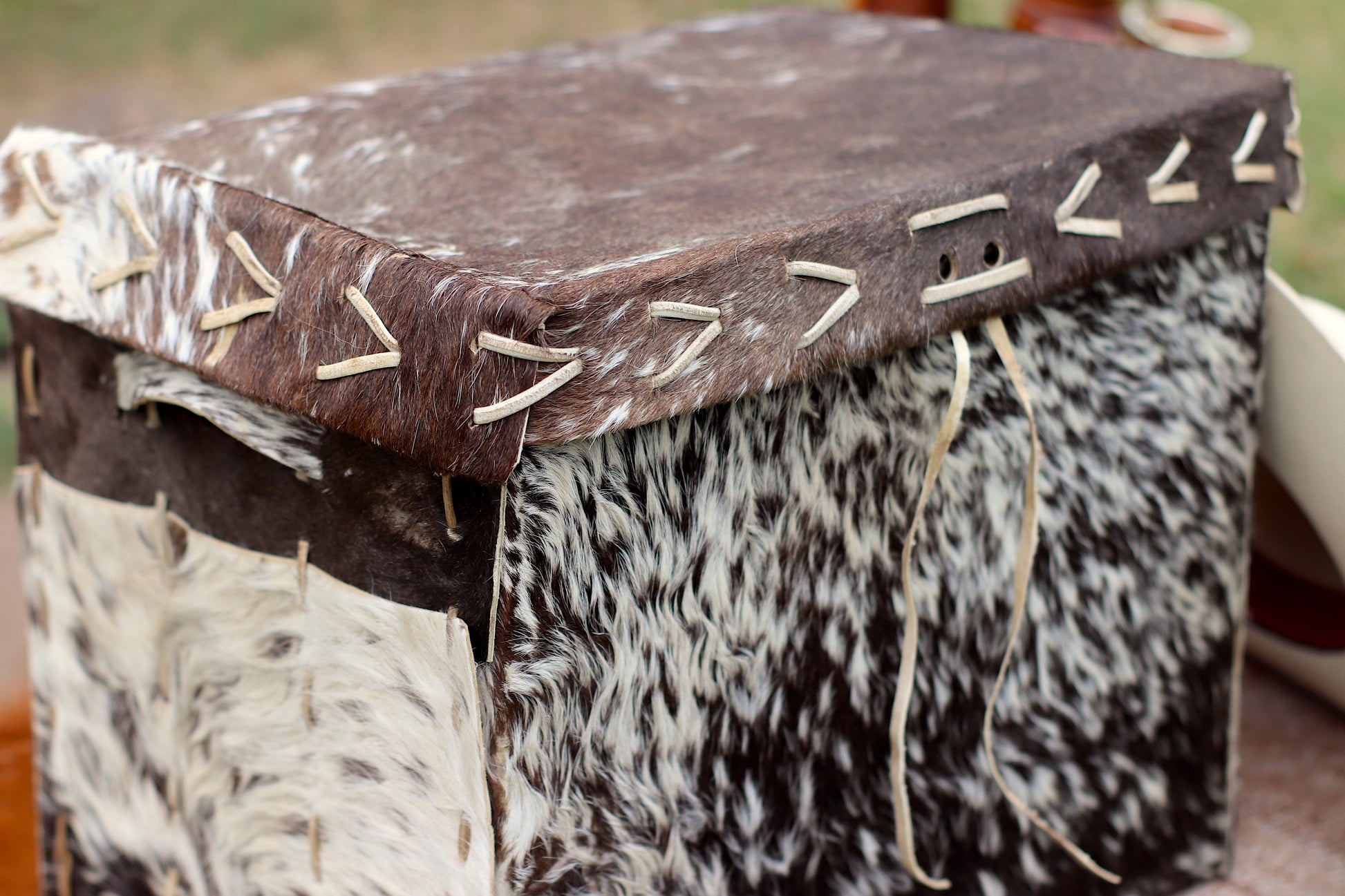Baúl de cuero natural hecho a mano desde una sola pieza cocido con tientos.
