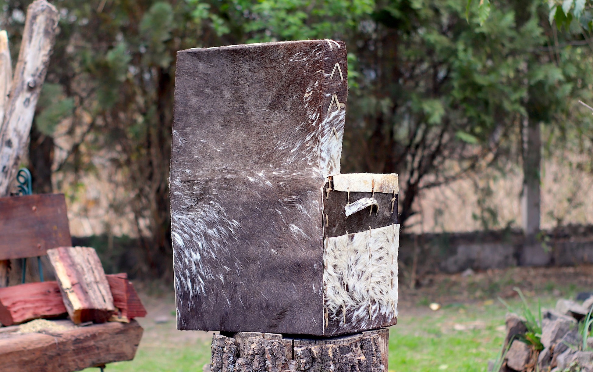 Luego, durante 3 meses se dedica a curar los cueros, cada pieza es sometida a un proceso de 90 días de proceso artesanal para obtener durabilidad, inocuidad y calidad de las obras