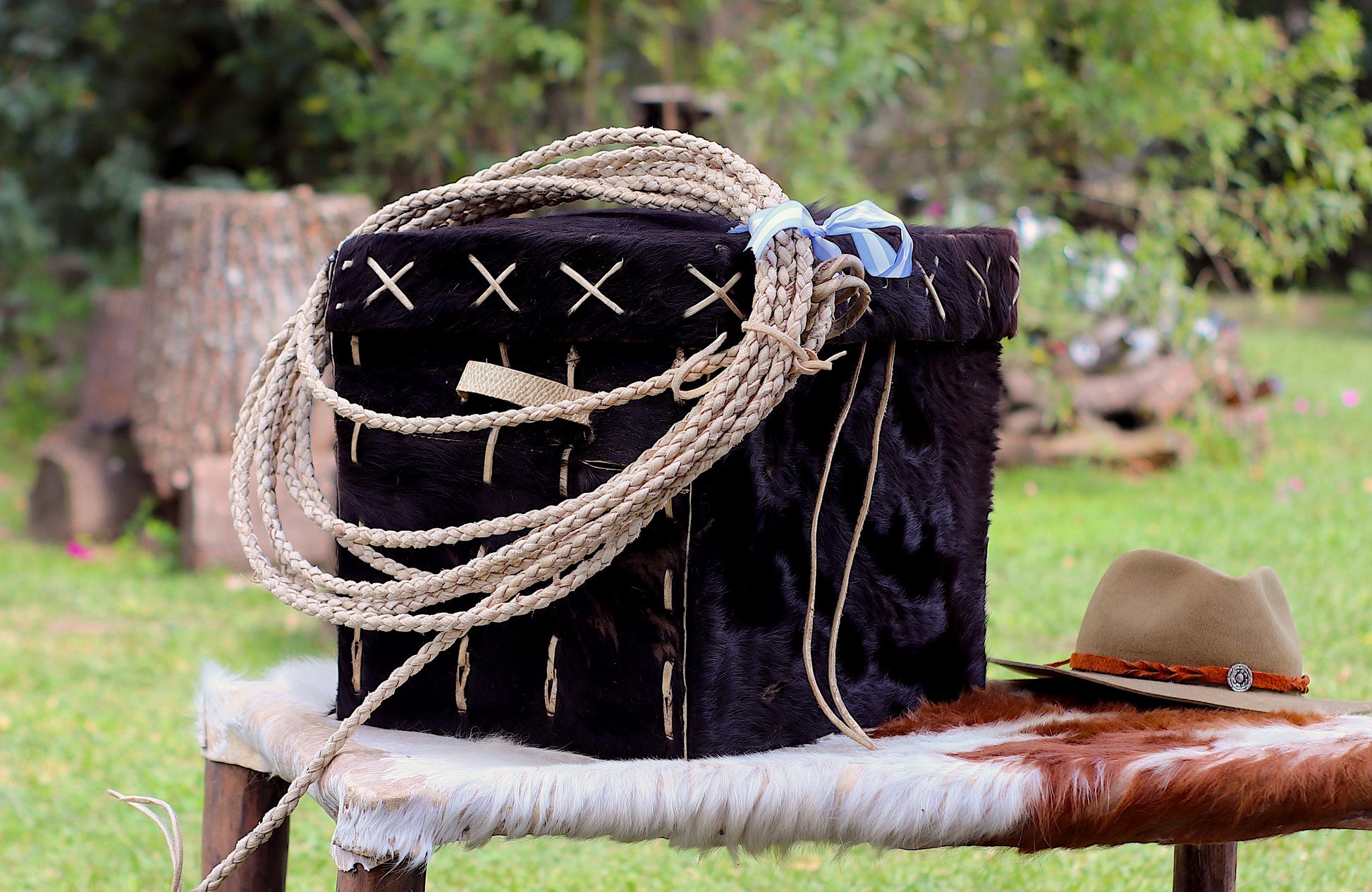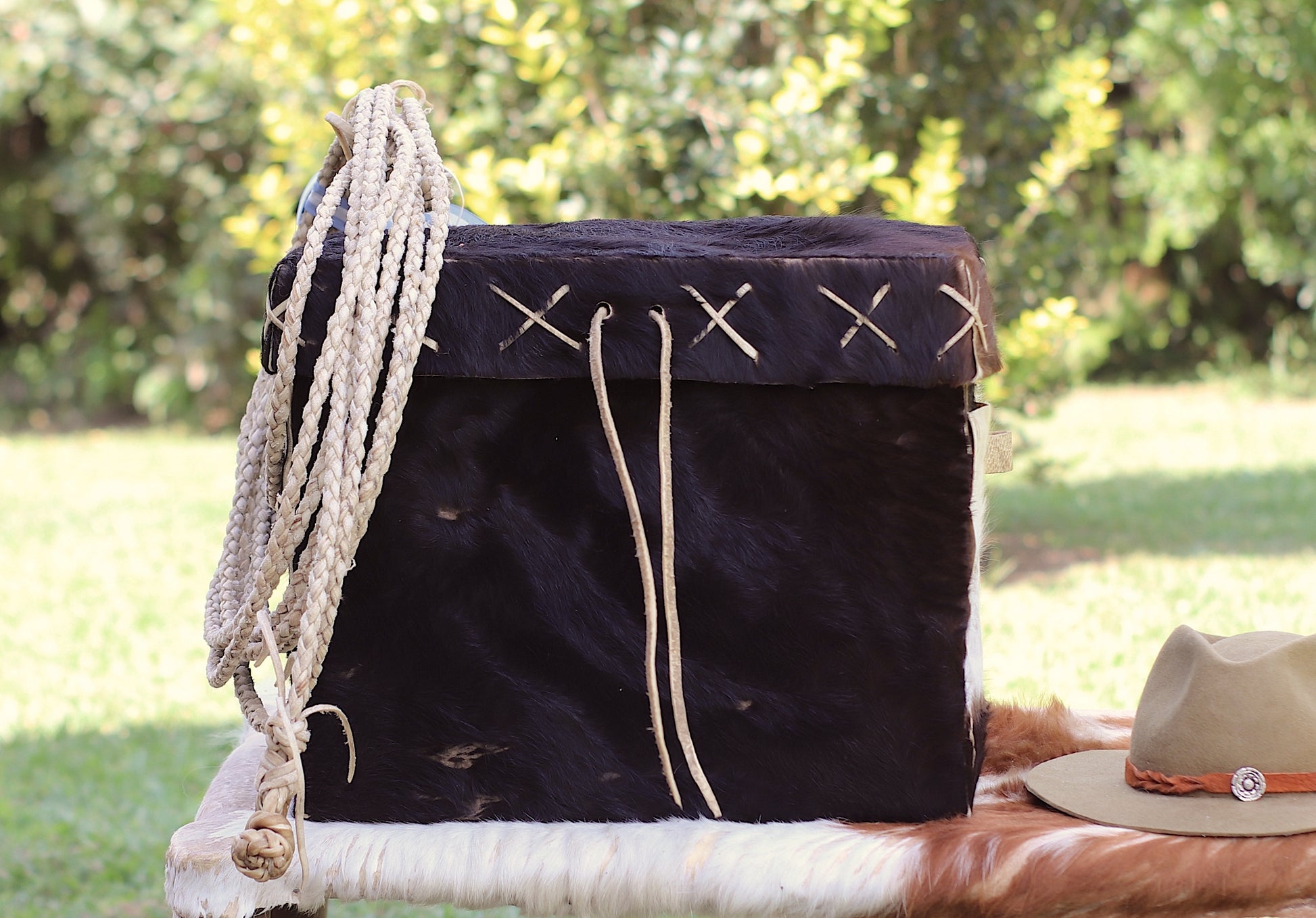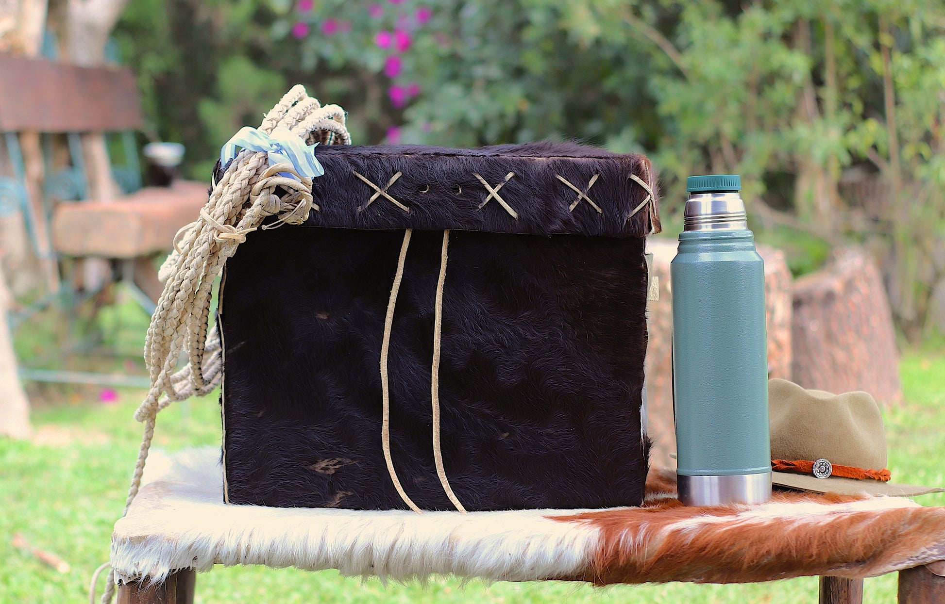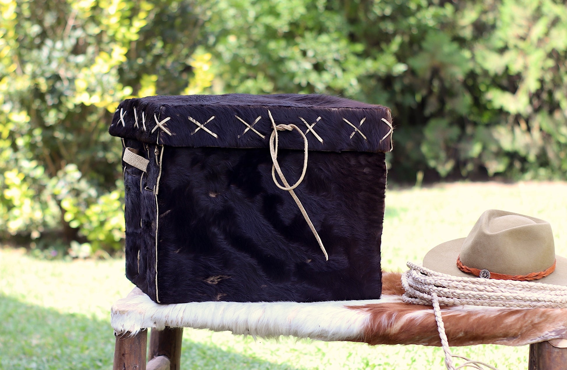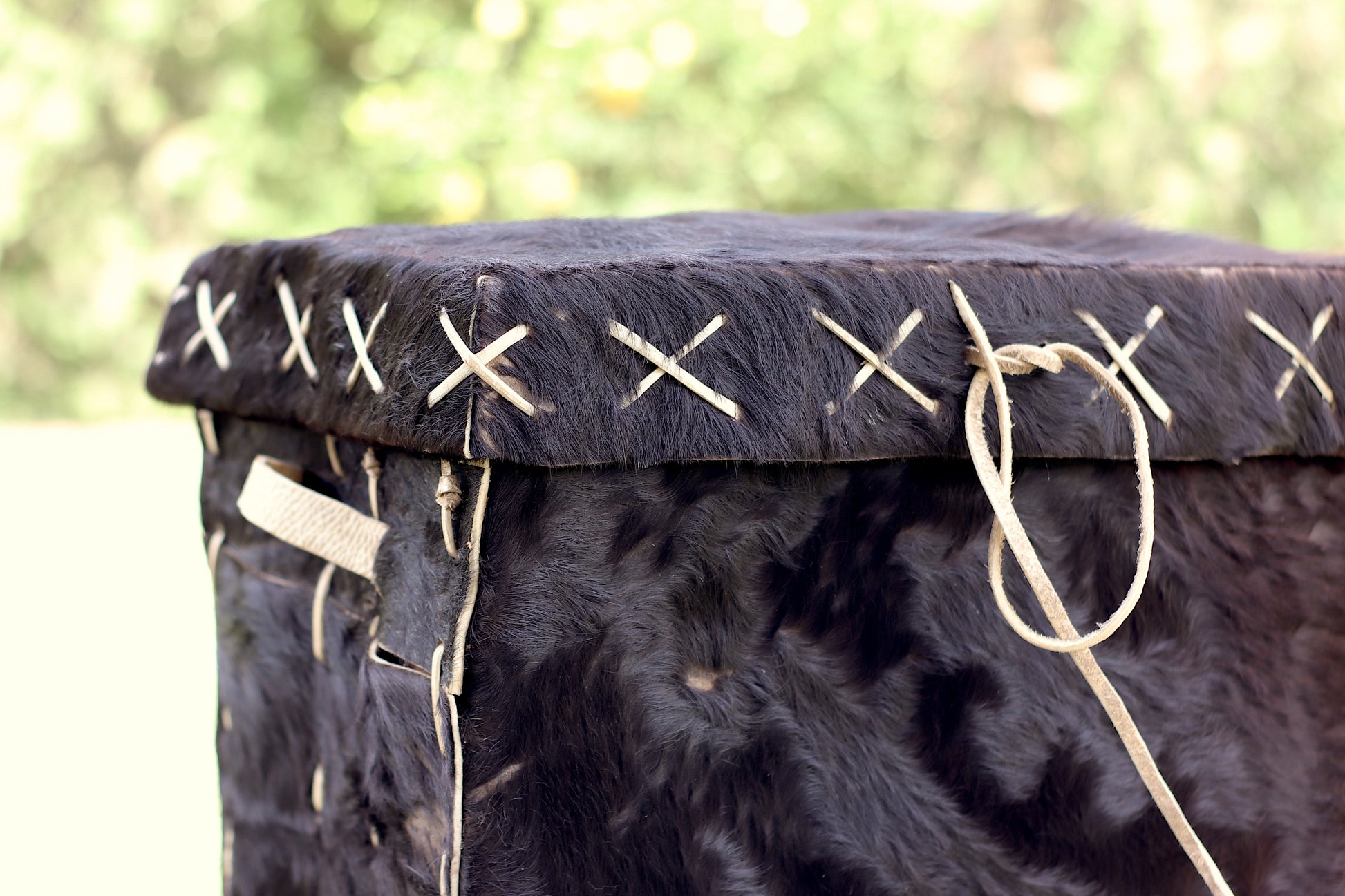 Baúl de cuero natural hecho a mano desde una sola pieza cocido con tientos.